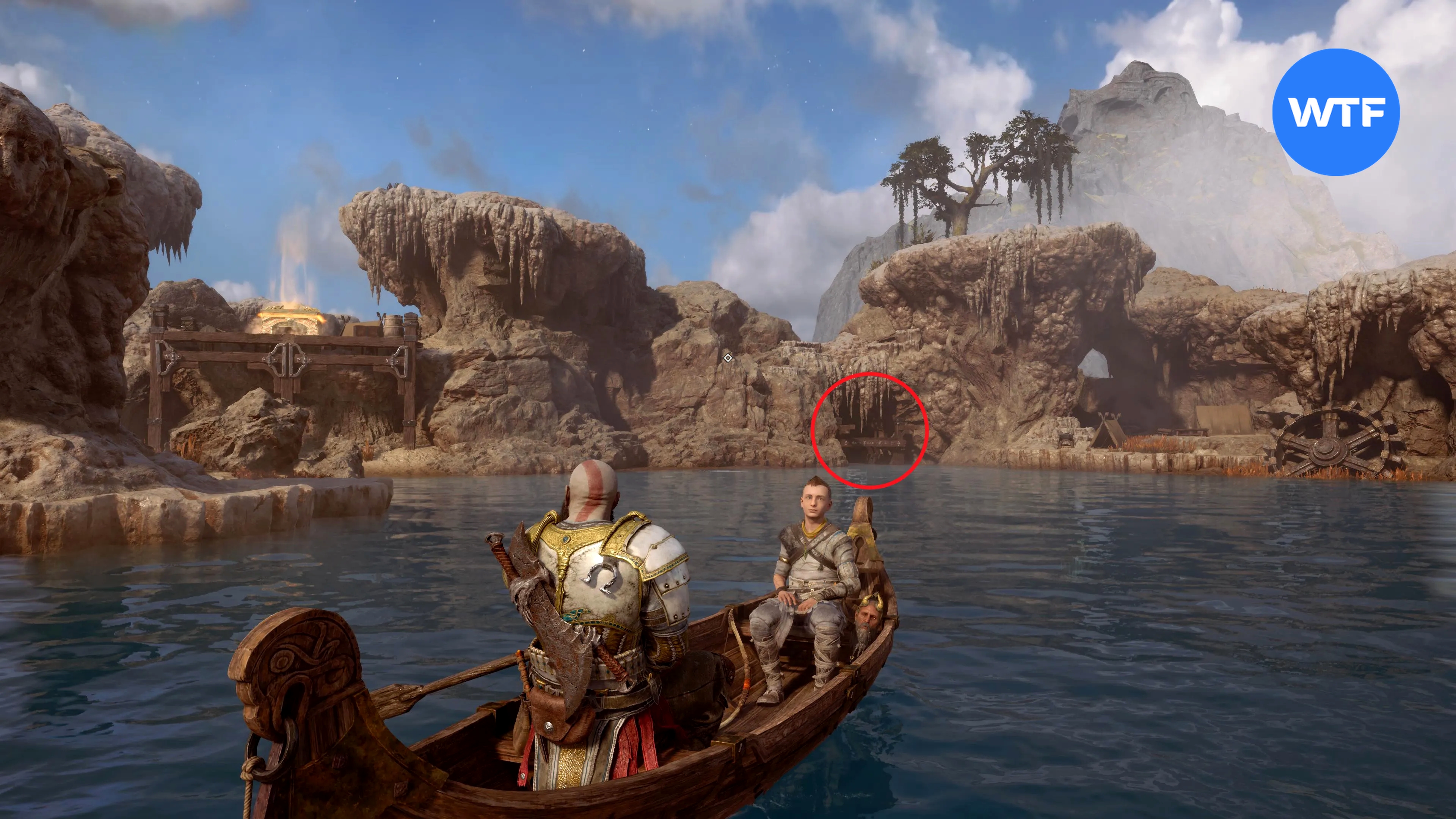 Вскоре после того как вы получите свою первую реликвию по сюжету и прежде чем съезжать вниз по веревке, вы будете проходить мимо большой двери, ведущей к яме драугров. Используйте точку зацепа возле водопада, чтобы туда добраться (см. скриншот 3).