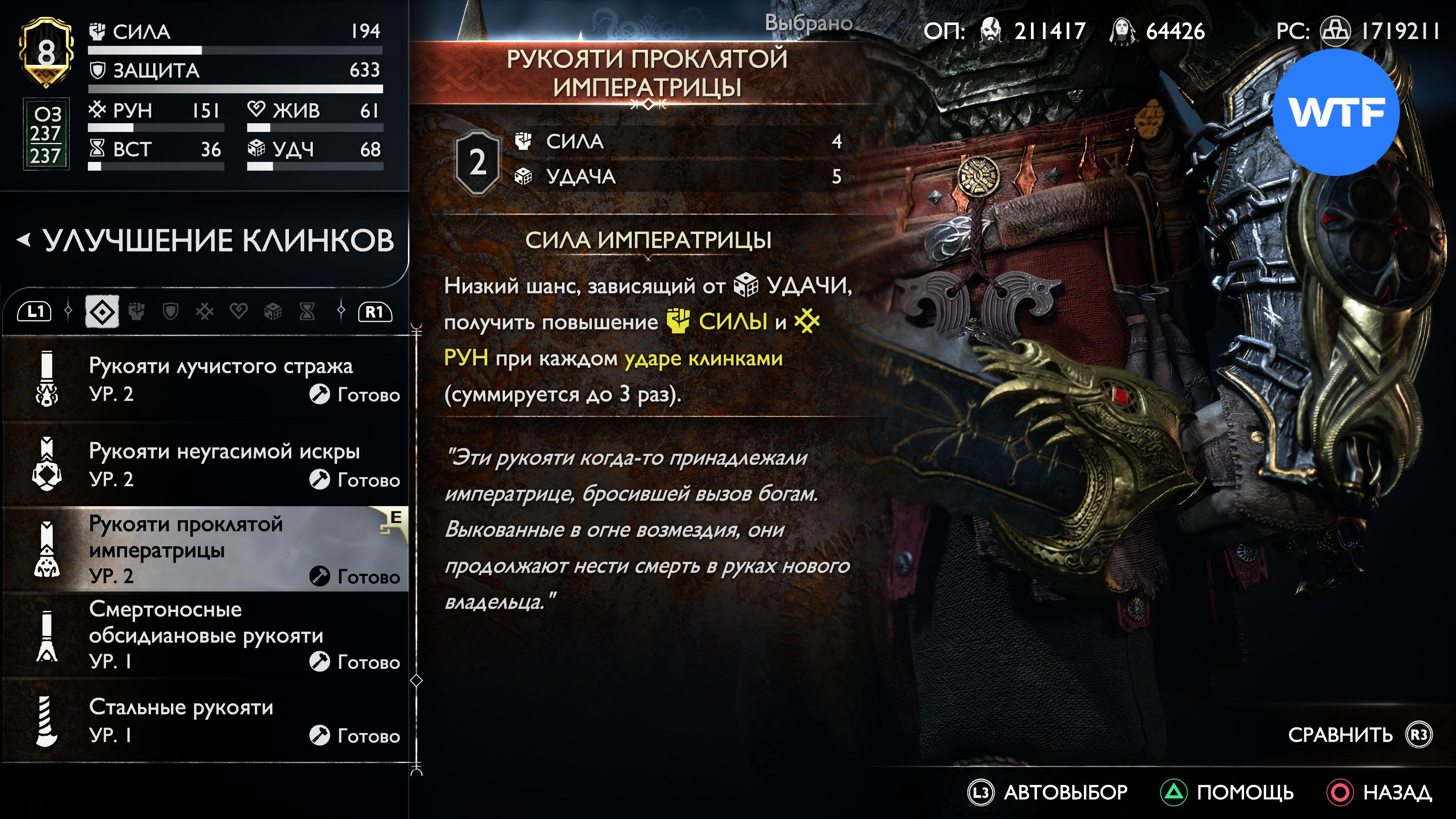 В этом гайде мы расскажем, как прокачать Клинки Хаоса до 9 уровня, а также покажем все 12 рукоятей для их улучшения.