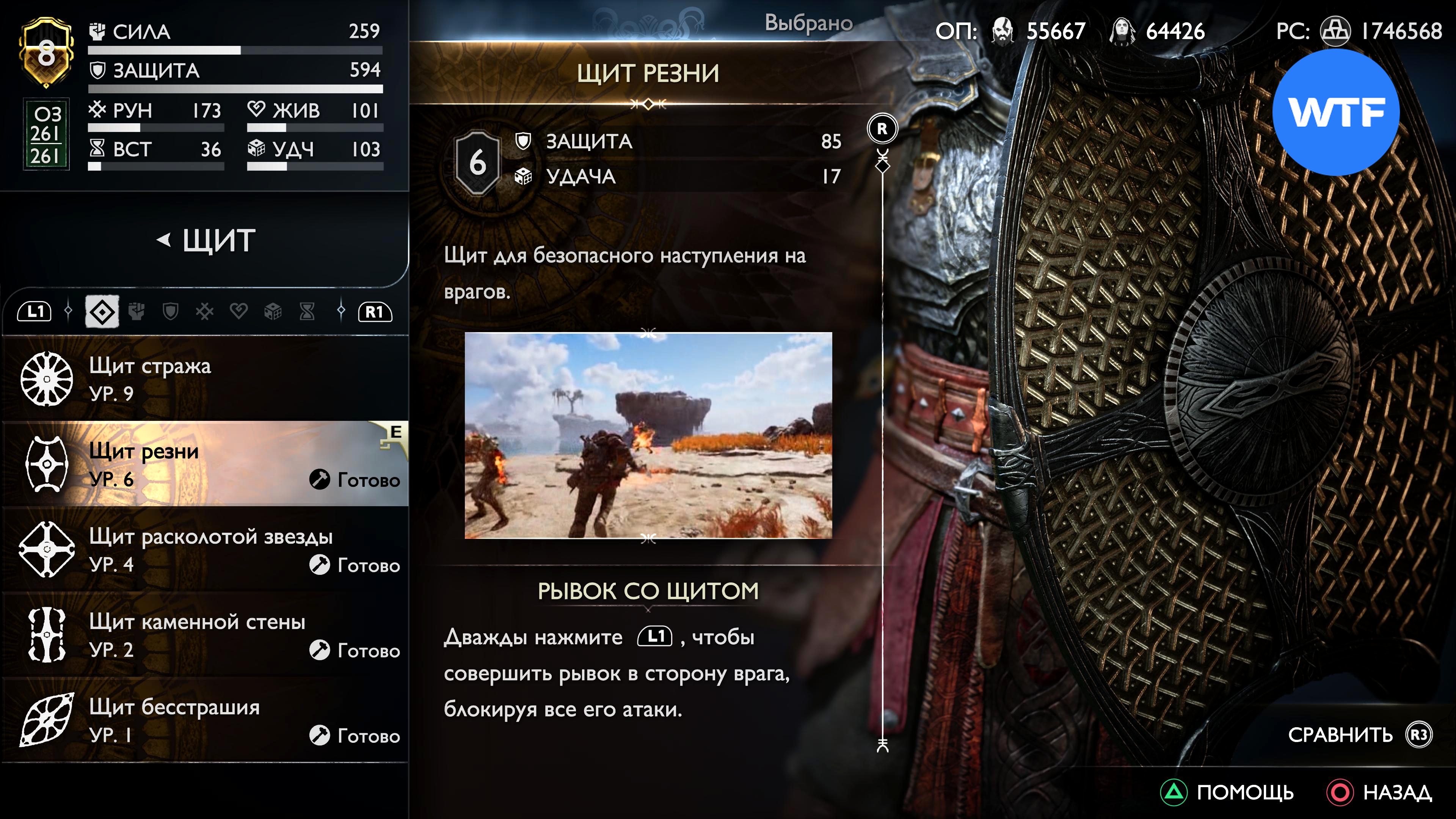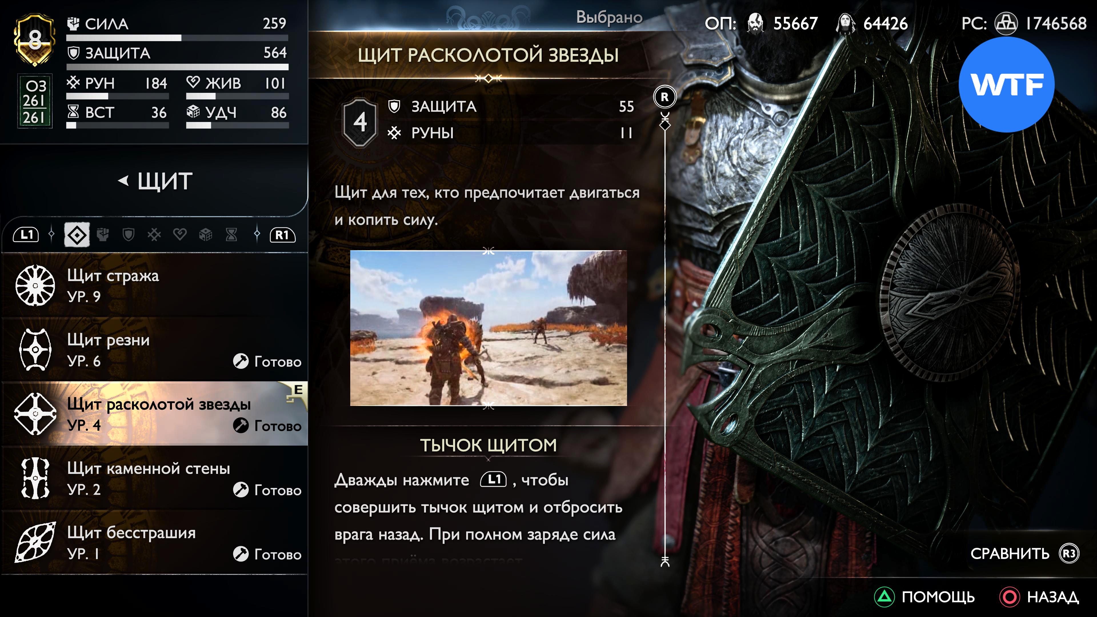 - Толчок щитом — дважды нажмите L1, чтобы толкнуть врага щитом и нанести значительный урон от оглушения. Парируйте вражеские атаки, чтобы нанести дополнительный урон от оглушения и усилить следующий толчок щитом. Точный выбор момента парирования существенно усиливает этот эффект.