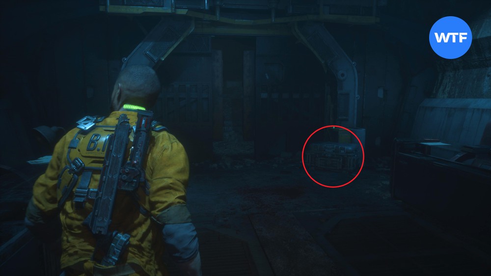 Продолжайте идти вперед, пока не спуститесь вниз на лифте и не встретите плюющегося врага. Есть два пути из этого коридора: налево и прямо. Сначала вам нужно пойти налево. Этот путь в итоге приведет вас к ящику с добычей. Вы также можете обыскать эту область, чтобы найти дополнительные кредиты.