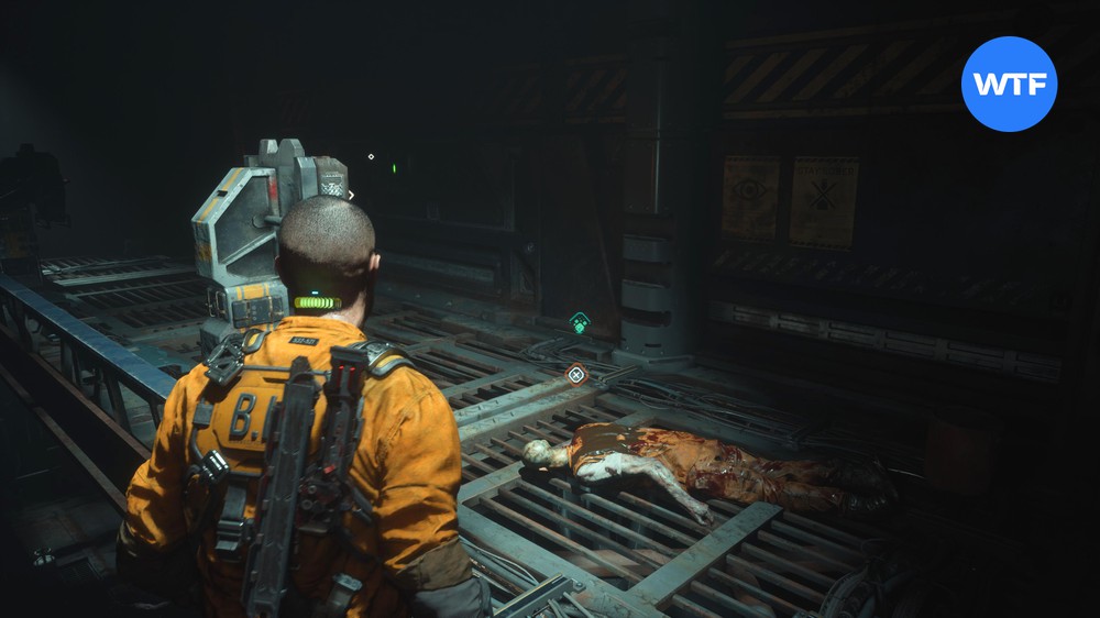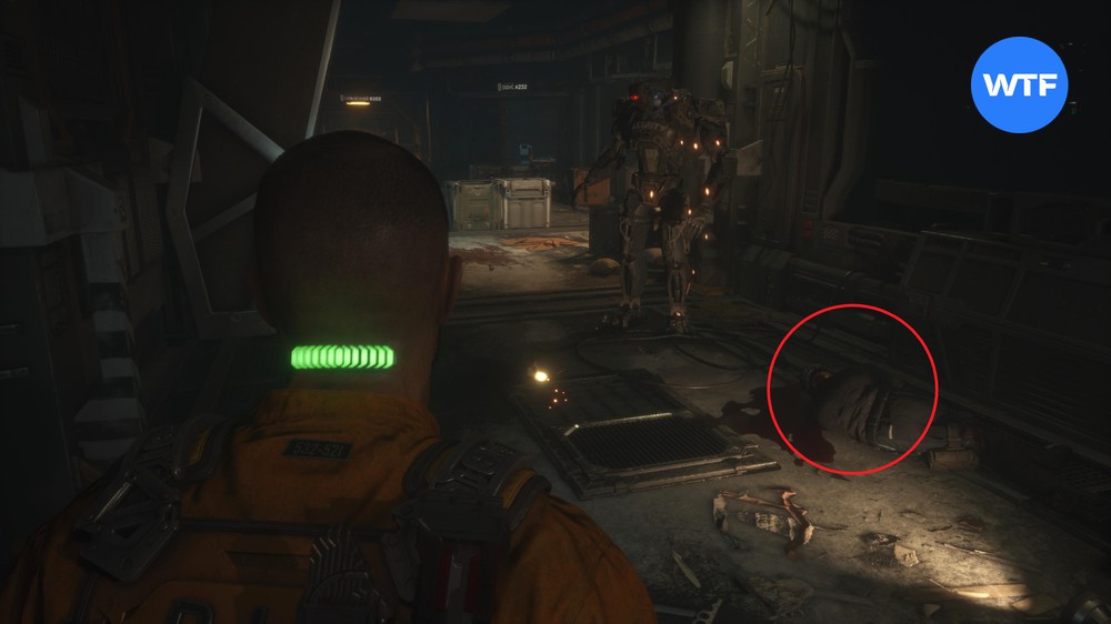 В одном из следующих залов нужно использовать два предохранителя, чтобы отпереть ворота. На платформе, где они вставляются, лежит тело с этими личными данными. Здесь также можно подобрать три инъектора, которые могут вам пригодиться.