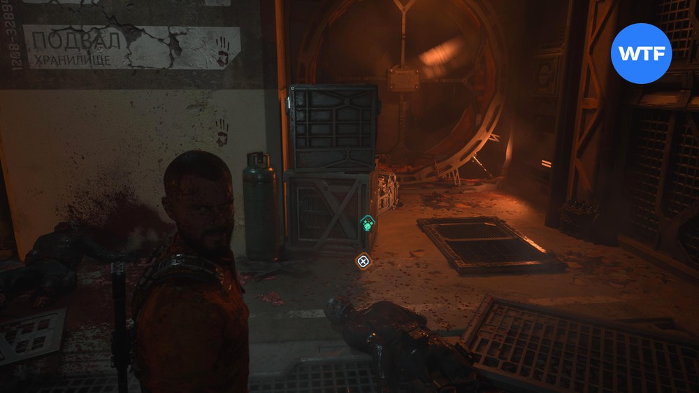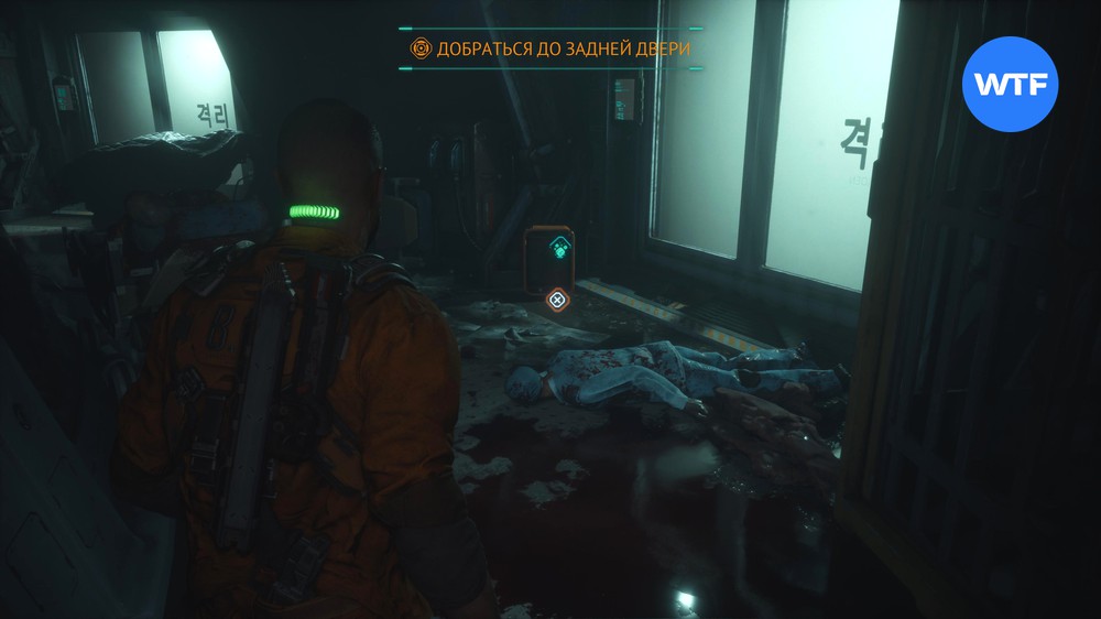 Теперь вернитесь обратно к развилке и на этот раз идите прямо. По пути вы можете разбить окно справа и обыскать это помещение для дополнительной добычи. Двигайтесь вперед и в итоге соберёте личные данные с трупа возле сломанного робота, чтобы открыть дверь в Прачечную В202 в рамках сюжетной задачи.