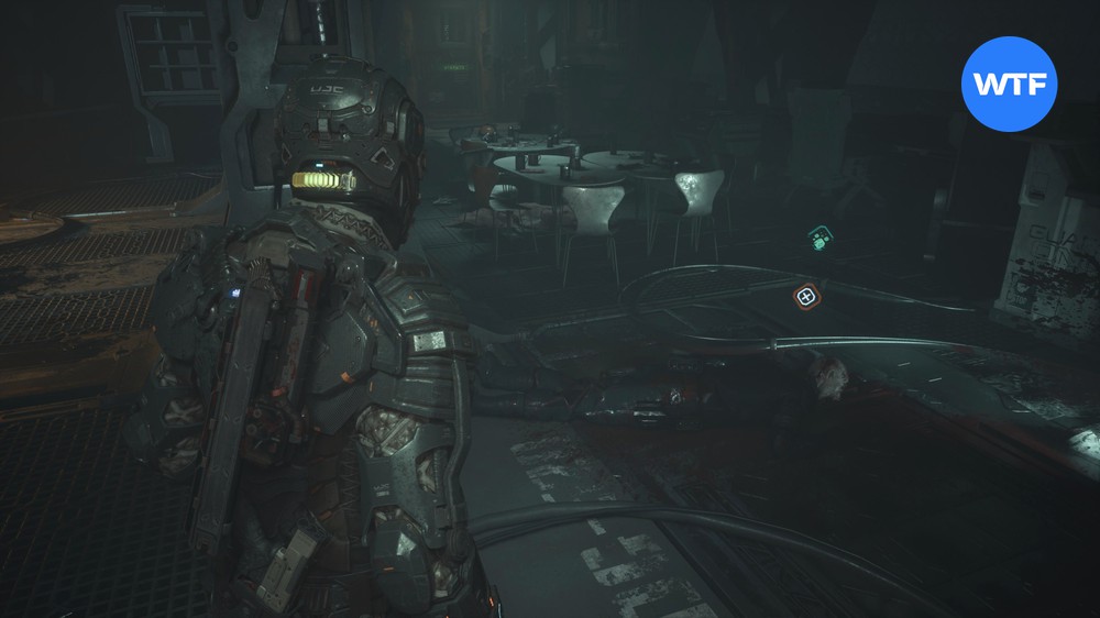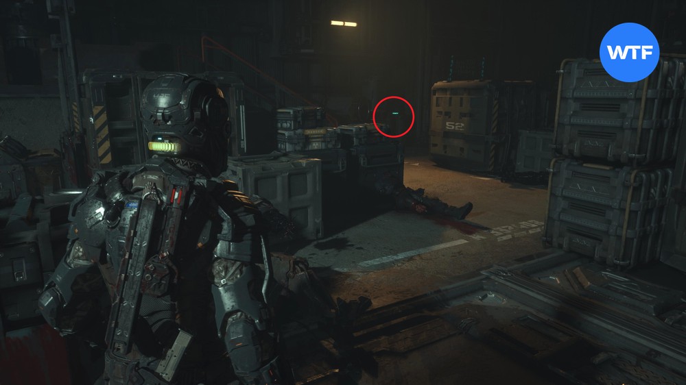Продвигайтесь вперед до области, где офицер Уэйн попросит вас помочь и найти что-то, чтобы отпереть дверь. Разобравшись со всеми врагами, зайдите в помещение по правой стороне и заберите эти личные данные с тела. Также здесь на стене есть инъектор.