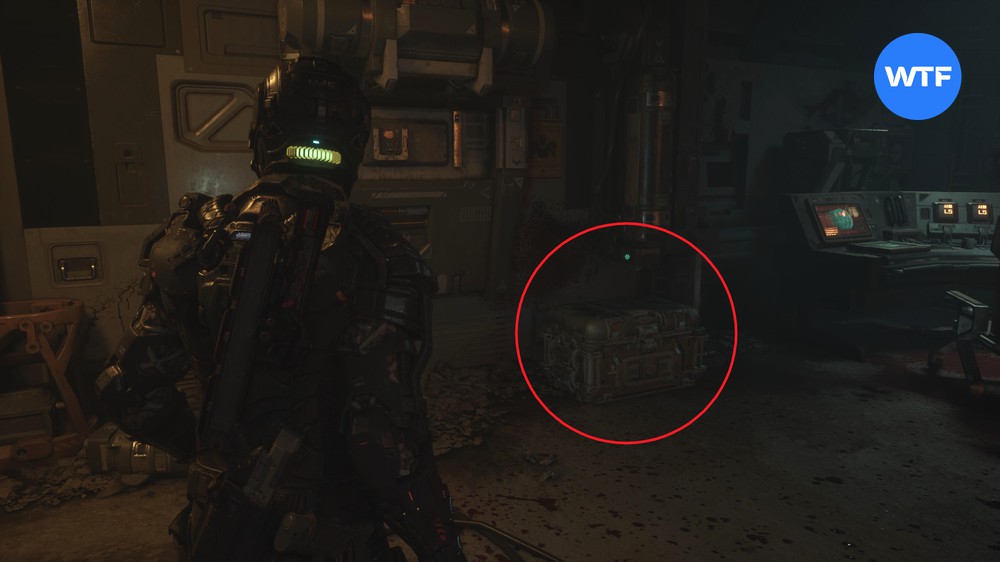 Воспользуйтесь компьютером в диспетчерской, а затем пройдите через открывшуюся дверь, чтобы найти этот 3D-принтер прямо на вашем пути.