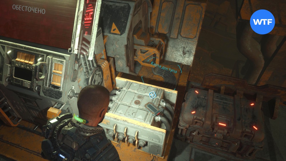 Рядом с терминалом, где вы забираете карту доступа, есть 4 ящика с добычей. Вы не сможете их открыть при первом заходе, но вернетесь сюда позже по сюжету, когда восстановите электроснабжение.