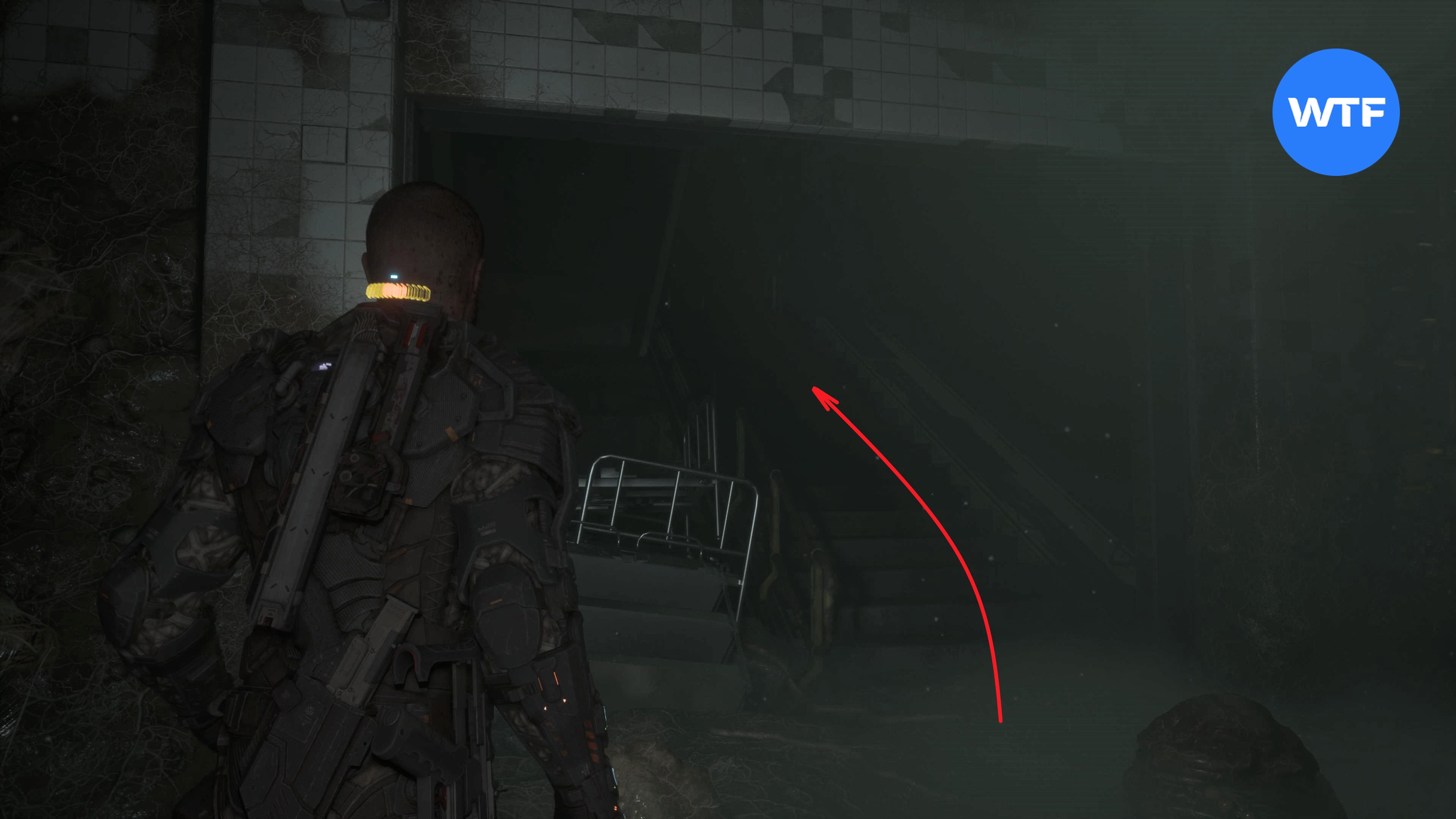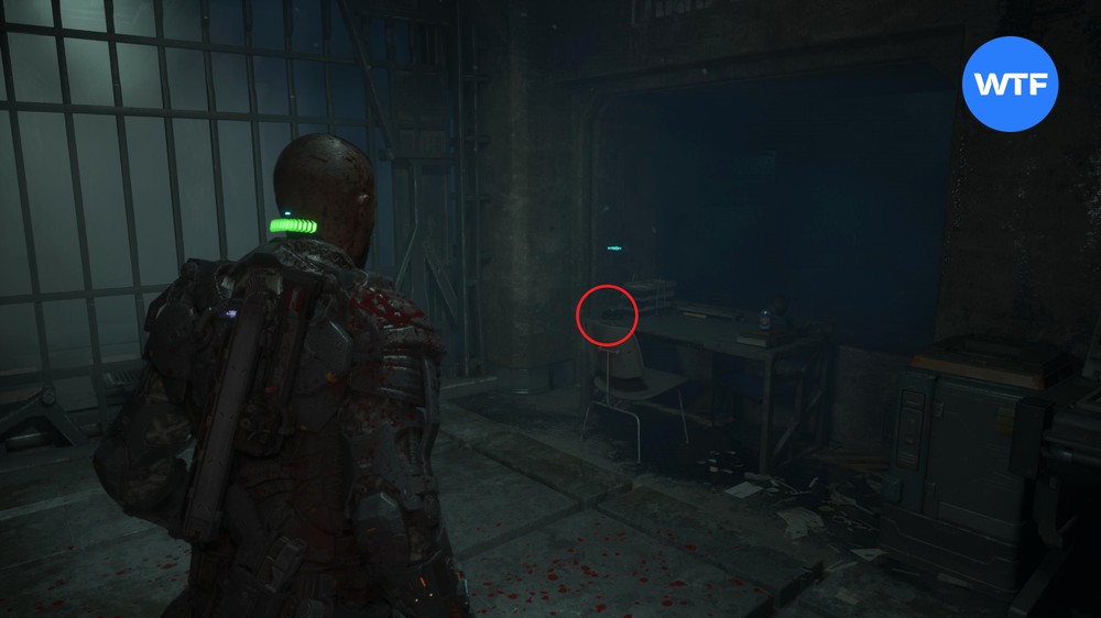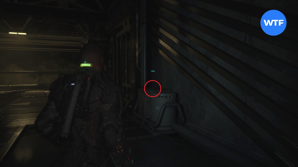 После захода в Психиатрическую камеру А301 осмотрите шкафчики справа, затем продвигайтесь вперед и спуститесь на один этаж ниже. В конце коридора заберите со стены инъектор, а также преобразователь с бака в углу.