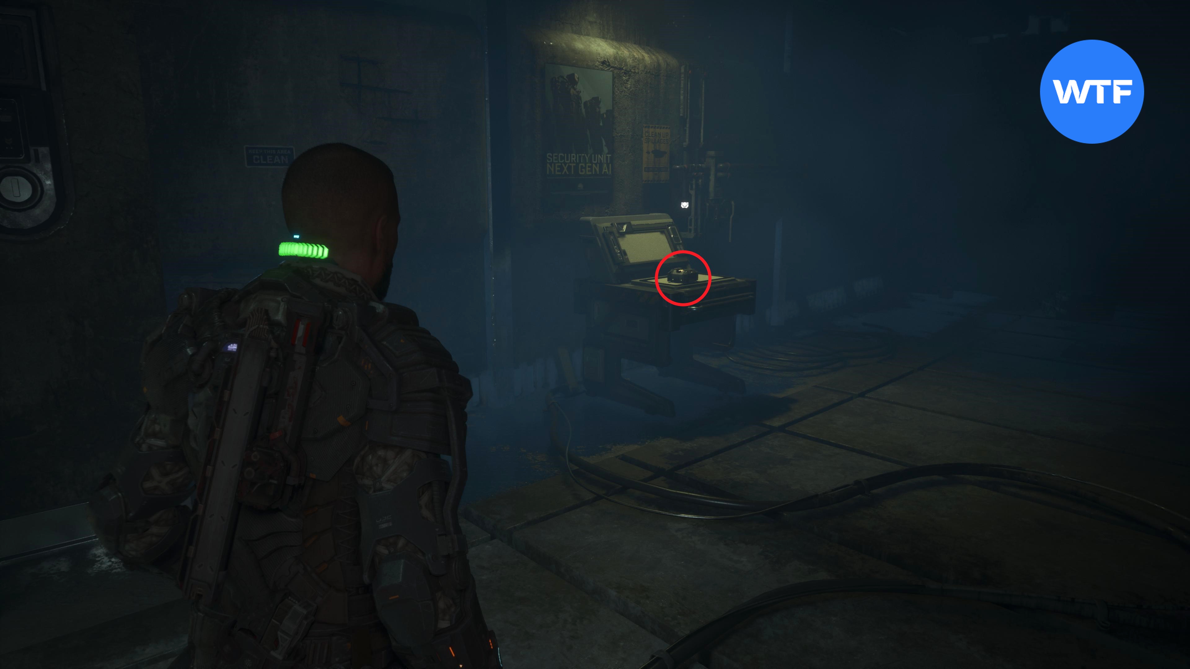 Воспользуйтесь предохранителем и отоприте дверь в комнате с 3D-принтером. После этого сразу поверните направо, чтобы найти эту деталь для продажи.