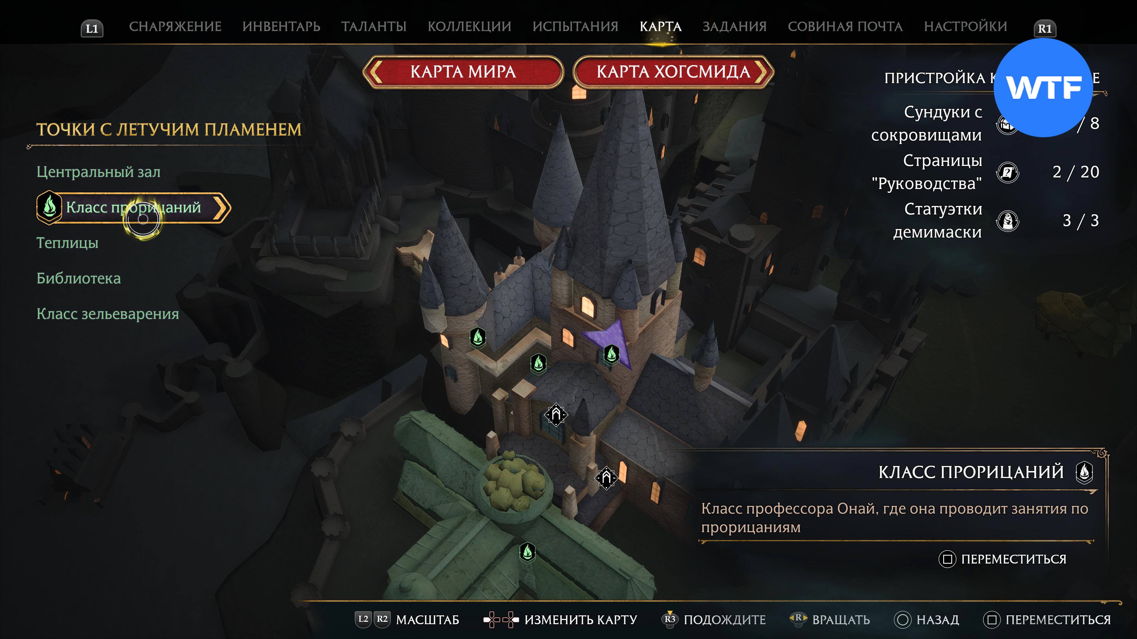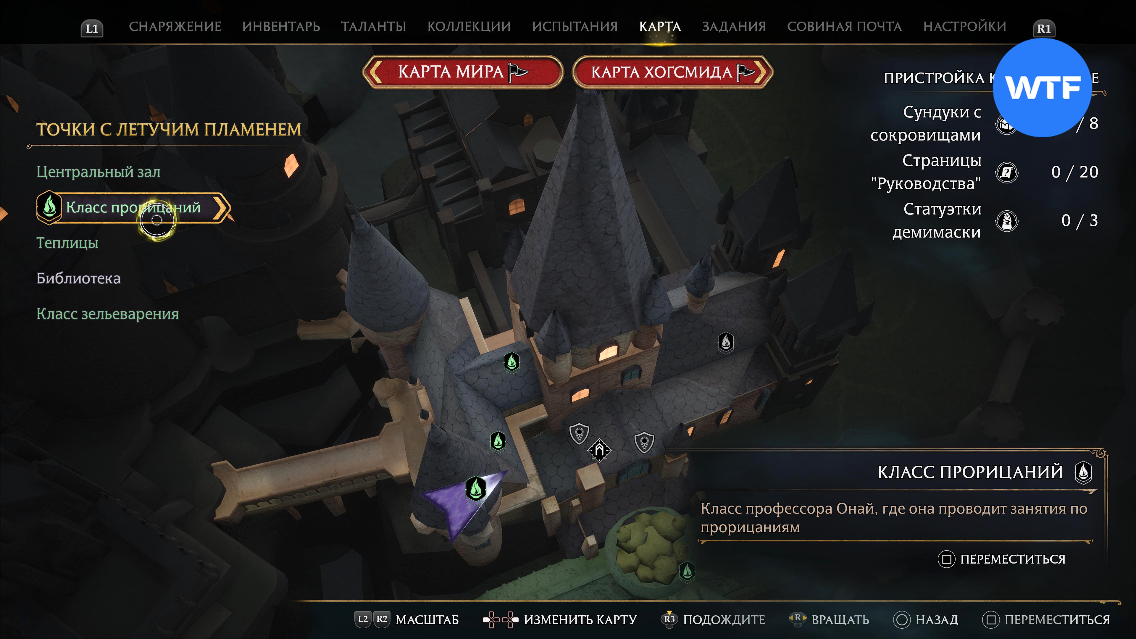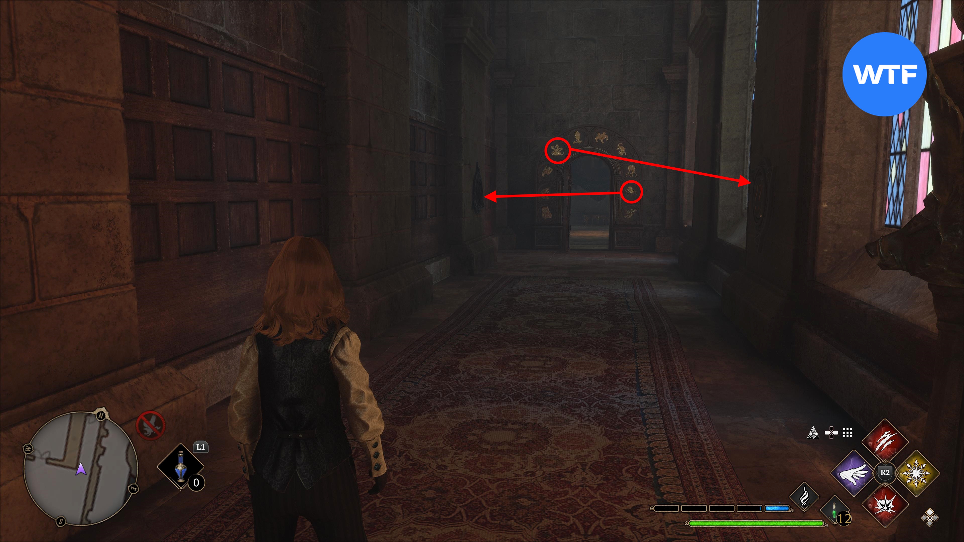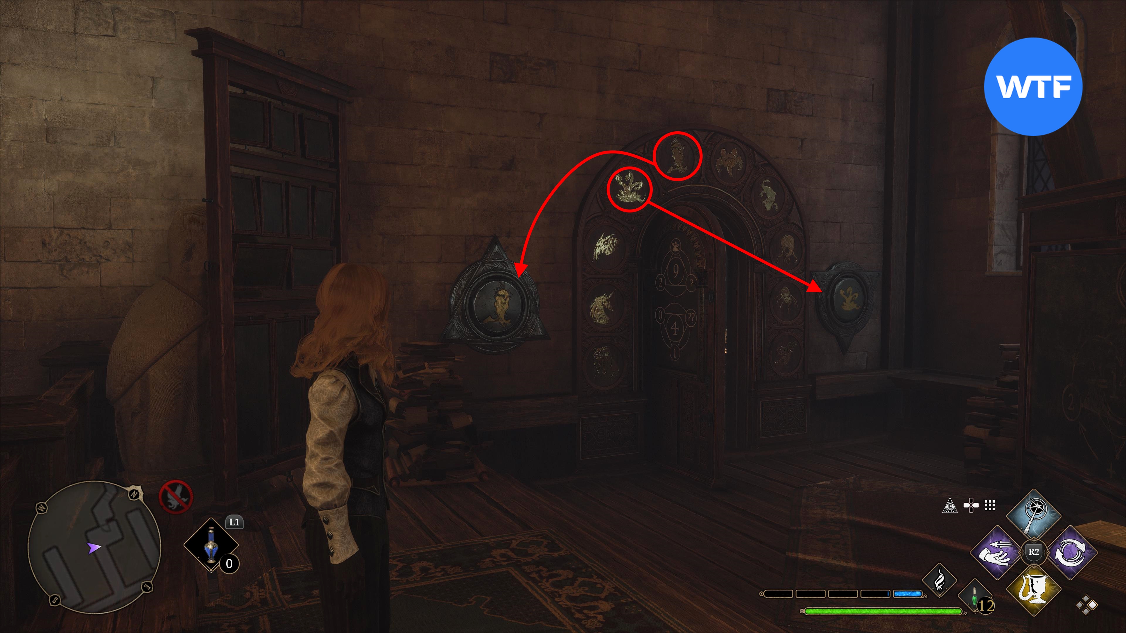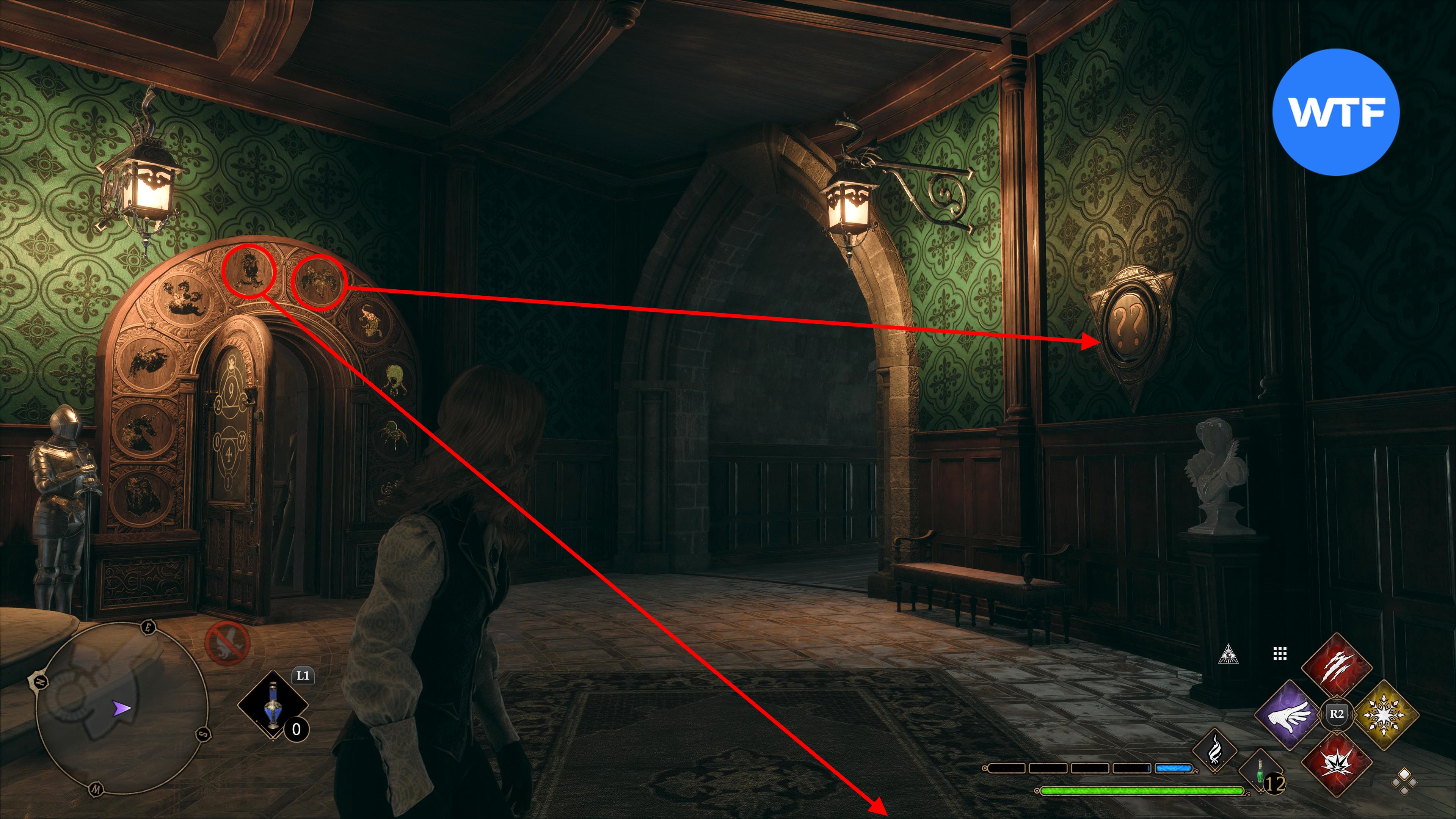 Чтобы найти ключ к разгадке таких дверей, отправляйтесь к точке с летучим пламенем «Класс прорицаний» в Пристройке к библиотеке. Пройдите через арку прямо за вами (см. скриншот 2).