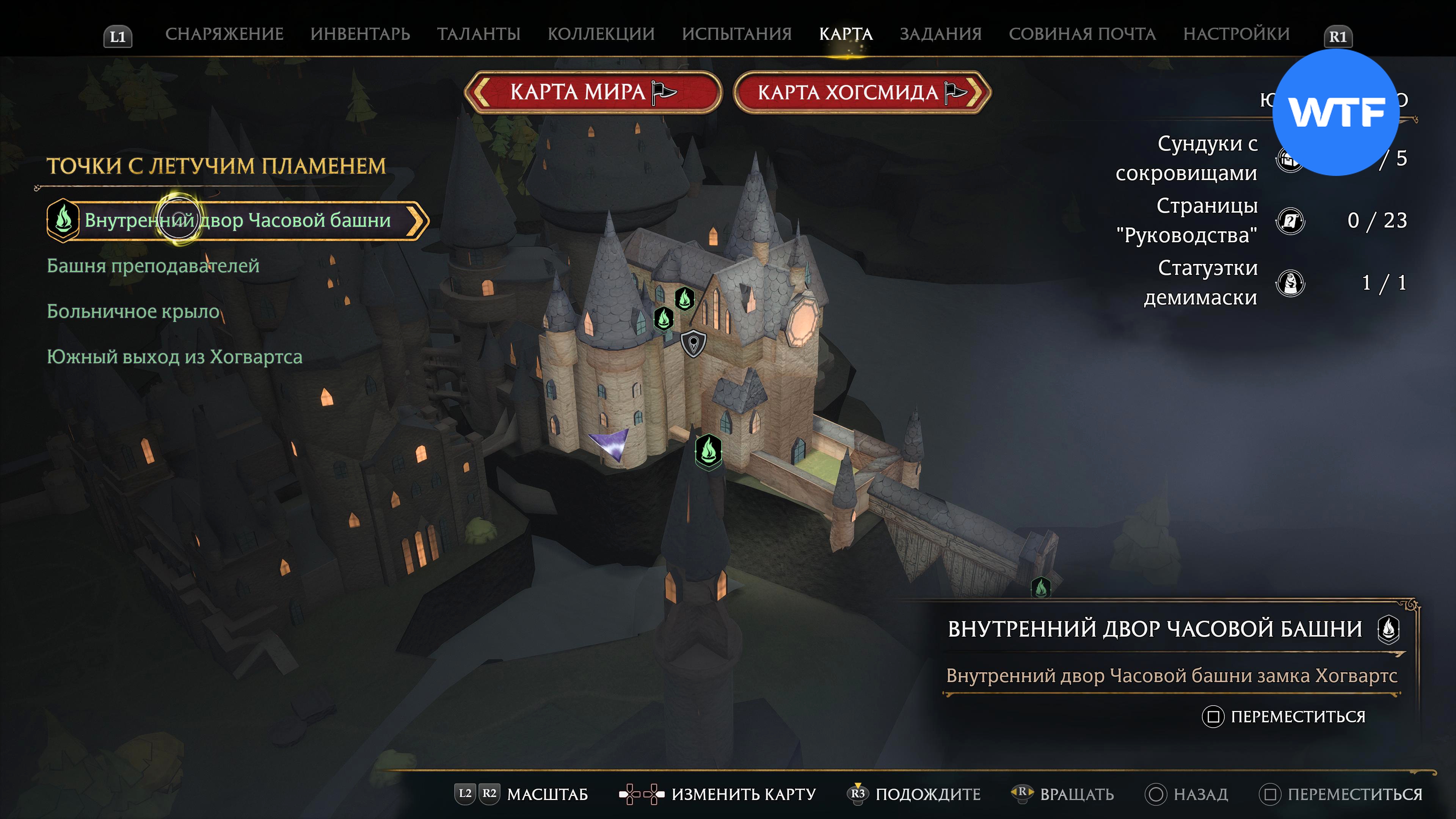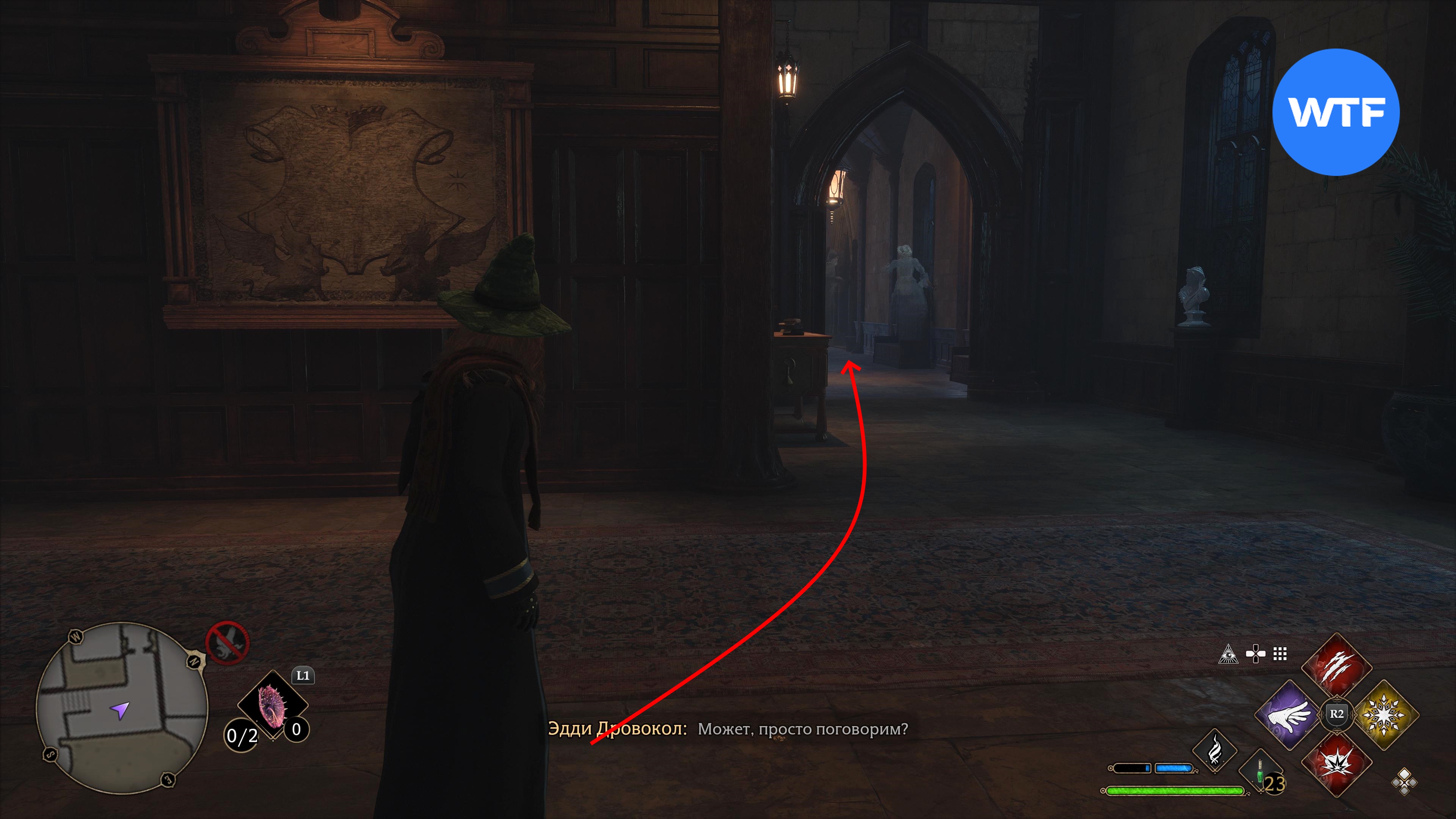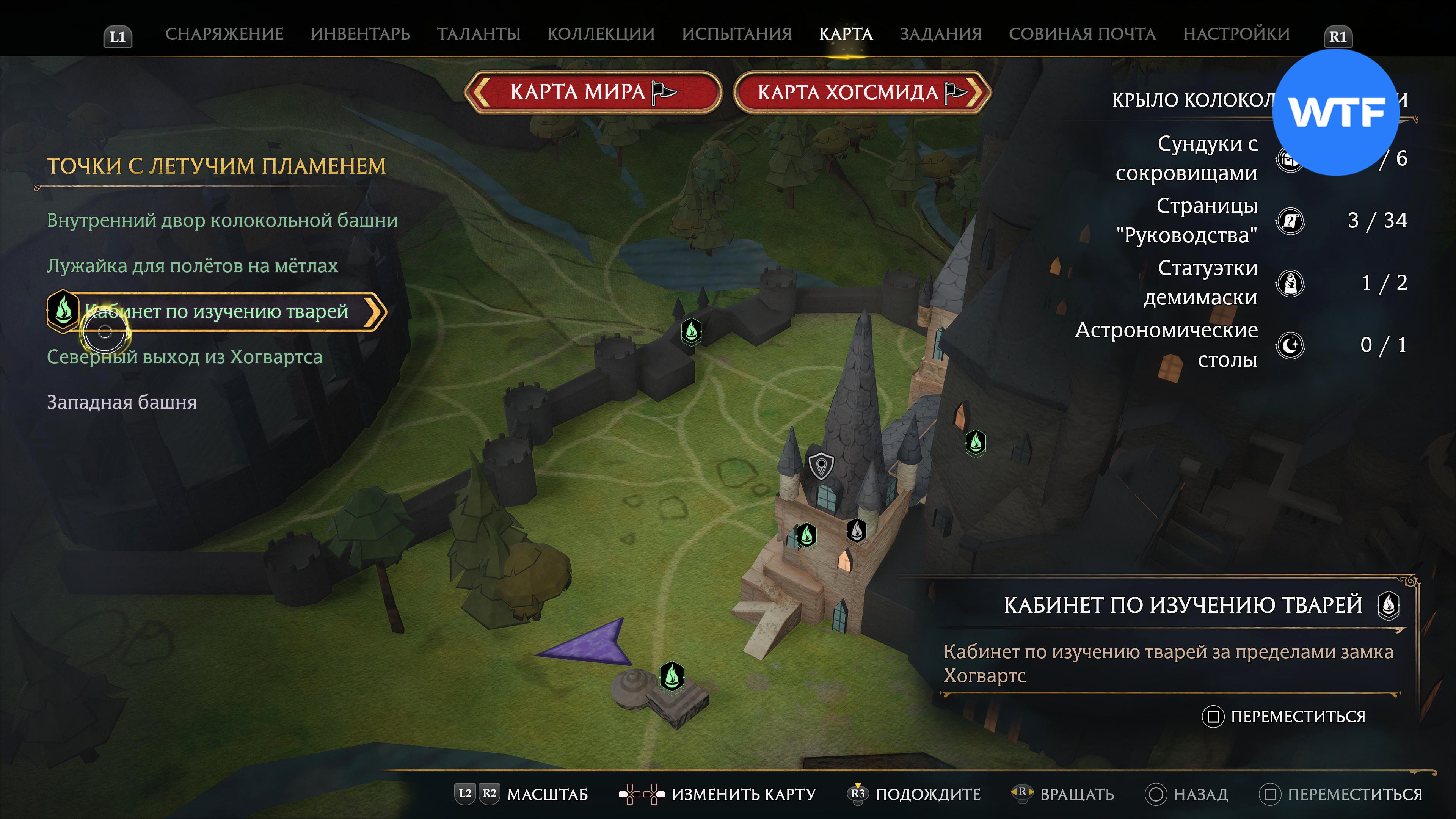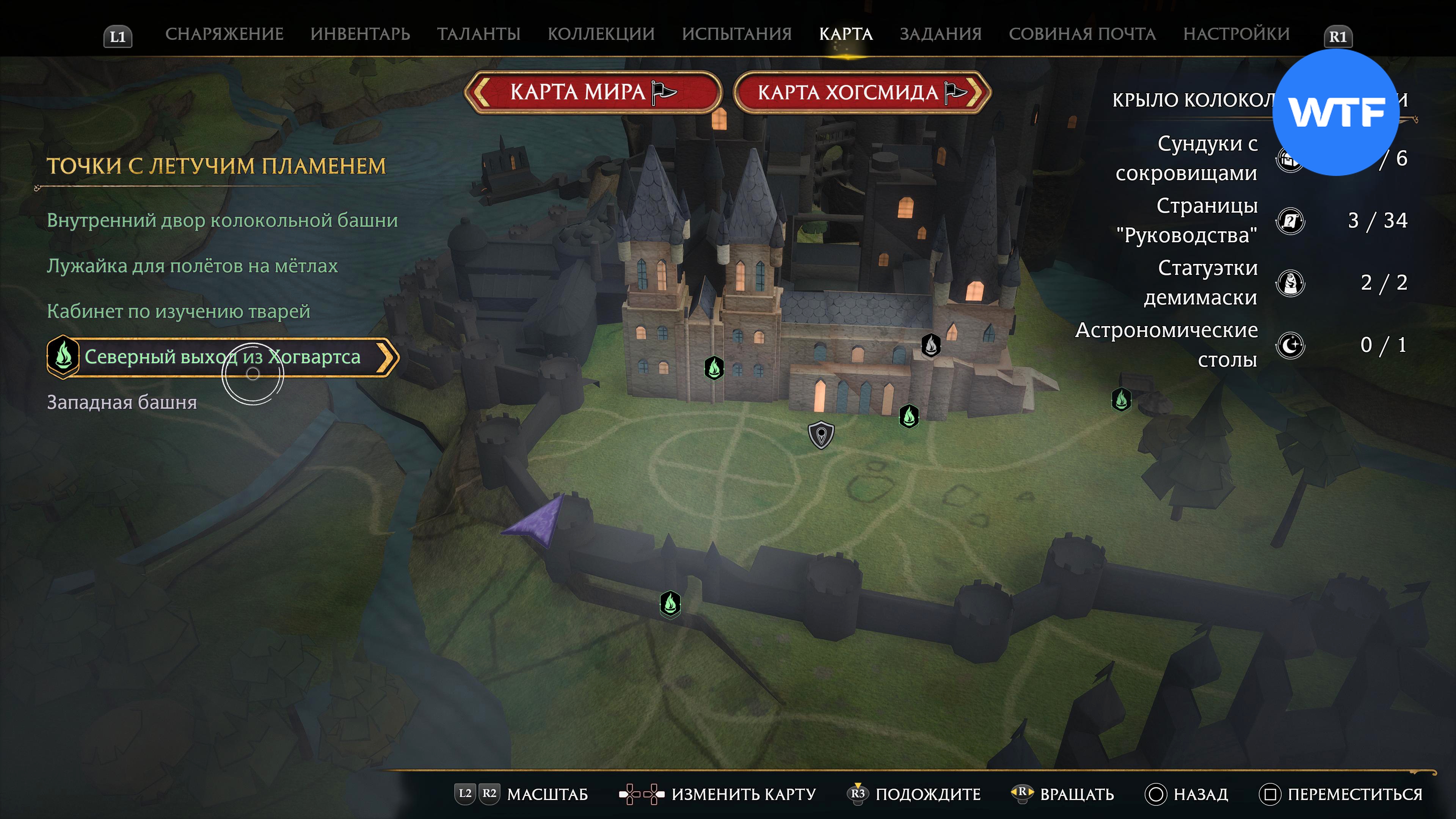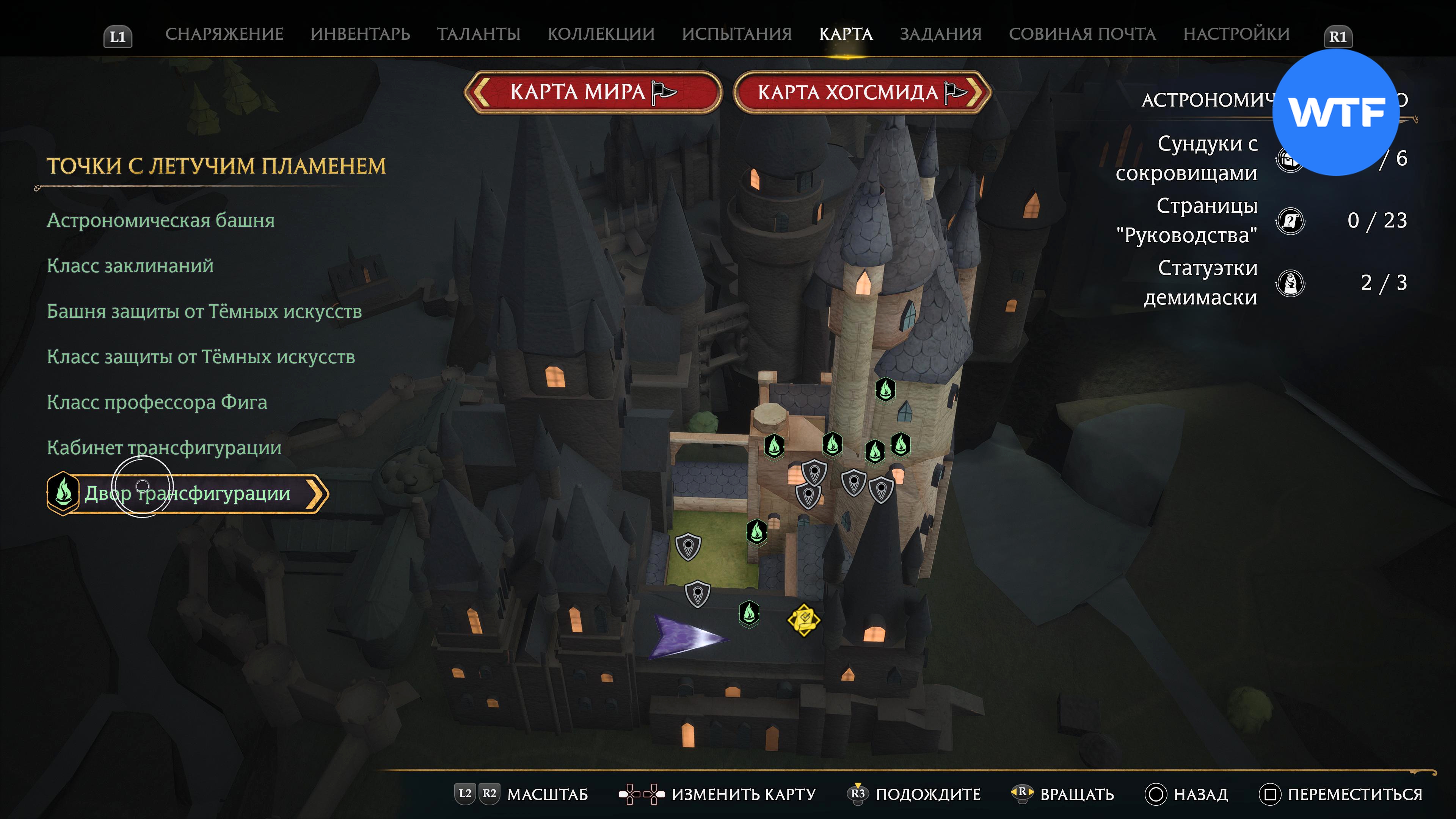 Станьте лицом к точке быстрого перемещения Двор трансфигурации в Астрономическом крыле и пройдите в дверь слева от неё. Сразу после этого посмотрите направо, чтобы увидеть еще одну дверь с замком 2 уровня. Статуэтка с луной стоит прямо за ней.