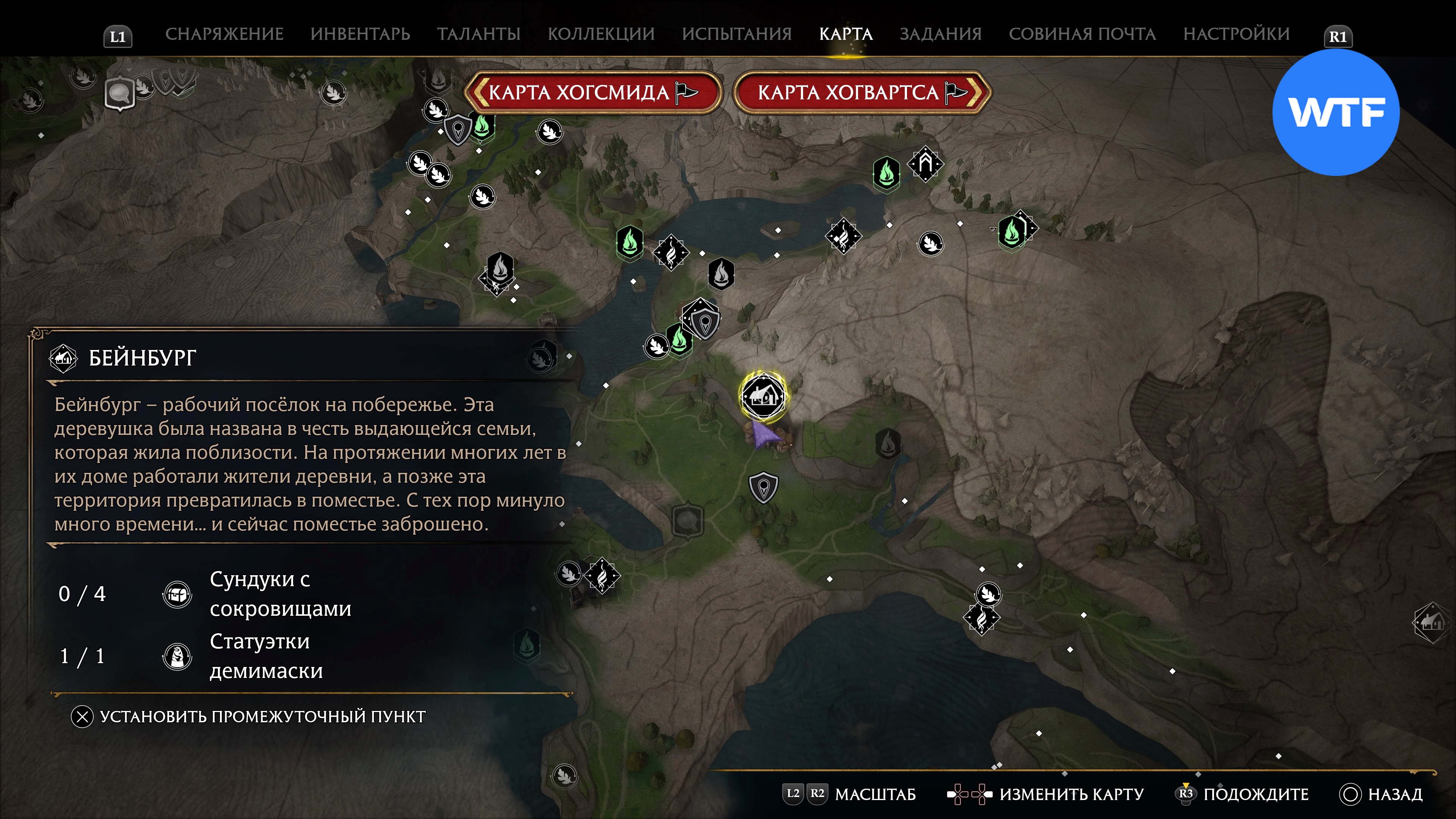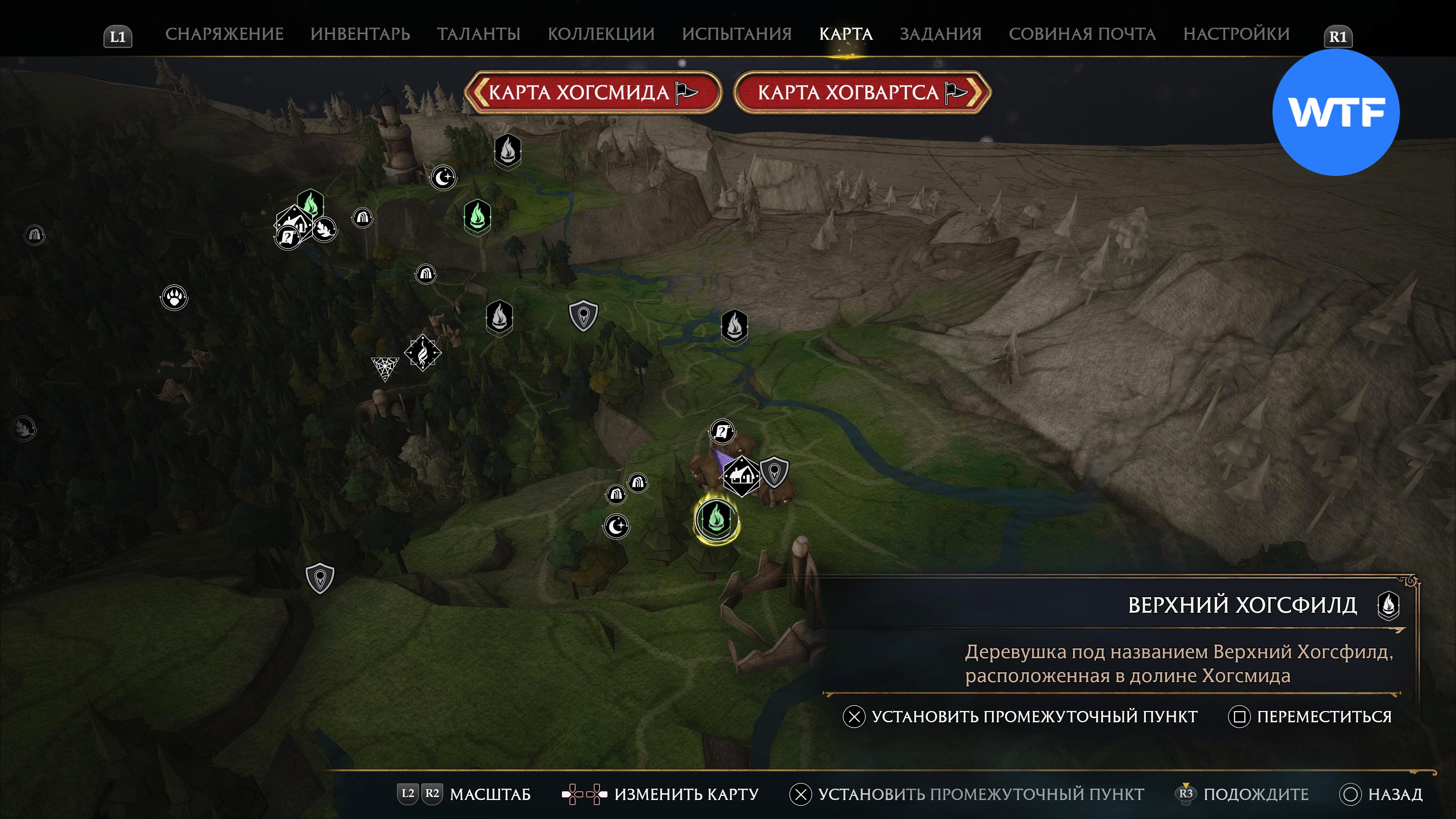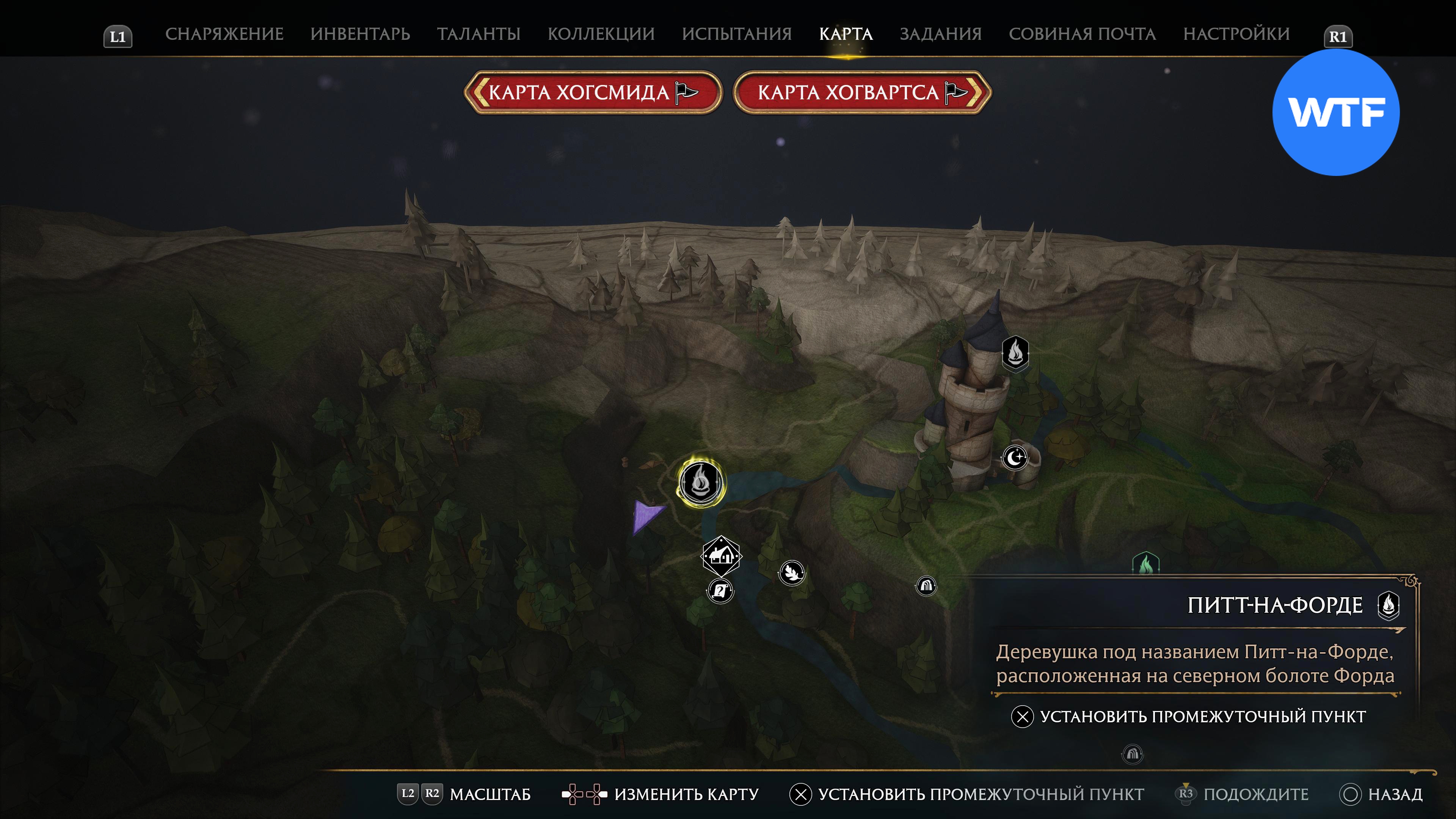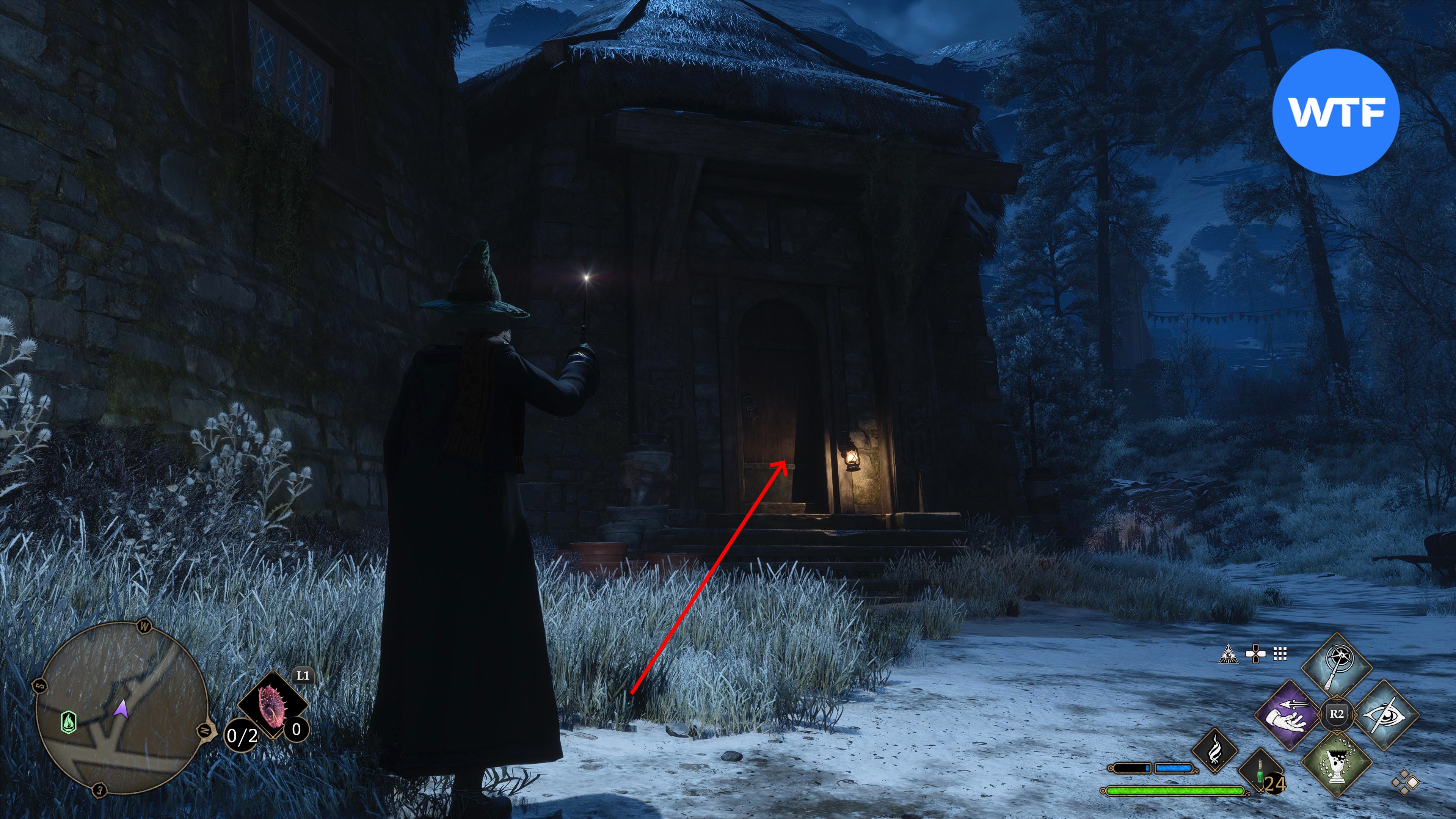 Это деревня к северу от Хогсмида, забрать луну демимаски для Глэдвина Муна можно из одноэтажного дома с пологой крышей (см. скриншот 2).
