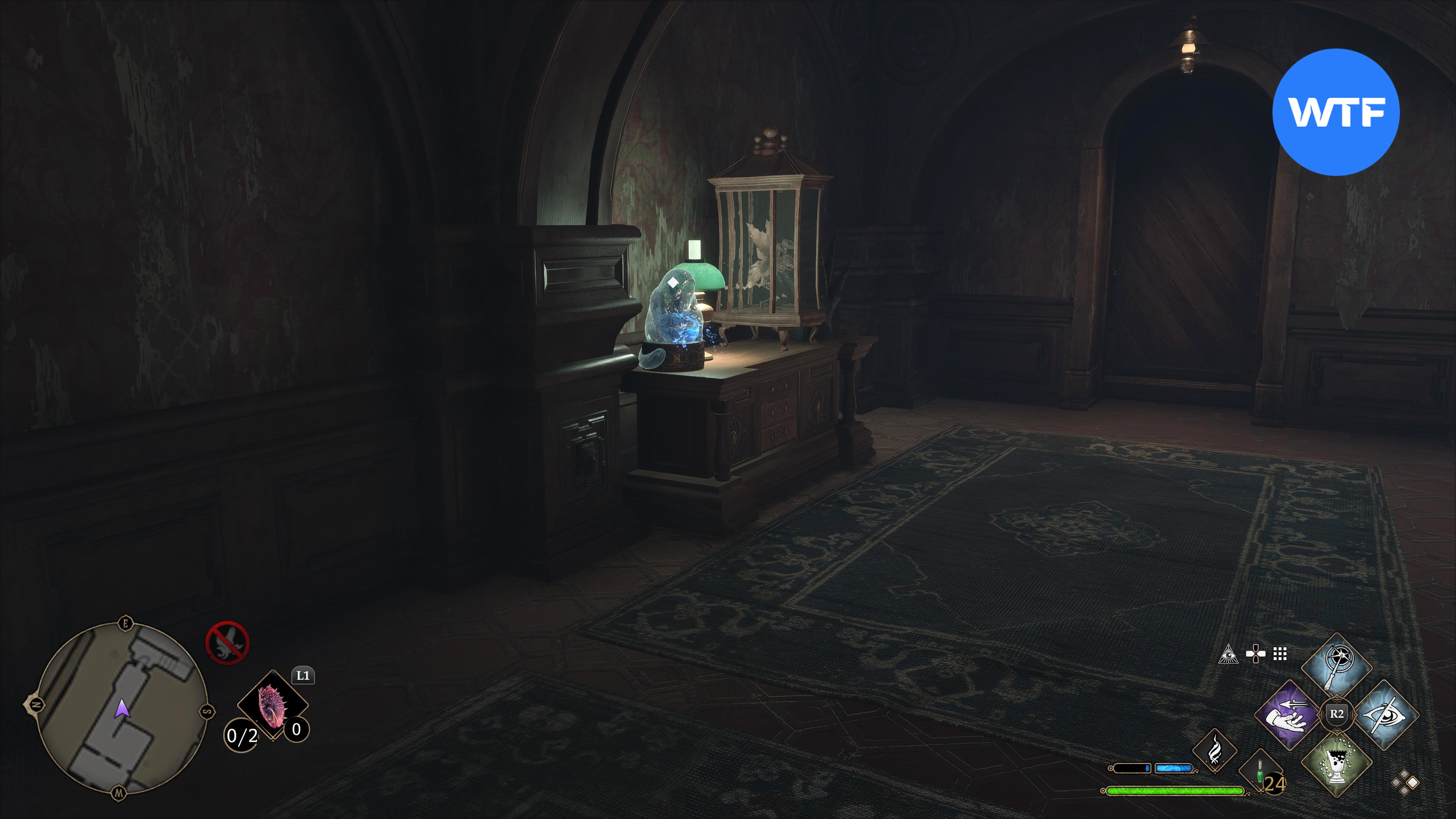 Переместитесь во Двор трансфигурации в Астрономическом крыле. От места появления посмотрите влево, чтобы увидеть статую дракона. Пройдите через большие двери за ней, затем вперед, направо и вниз по лестницам. Вам нужно спускаться до самого конца, пока не увидите большую статую спящего дракона. В коридоре справа от неё есть дверь, запертая на замок 1 уровня. Статуэтка демимаски стоит справа от входа.