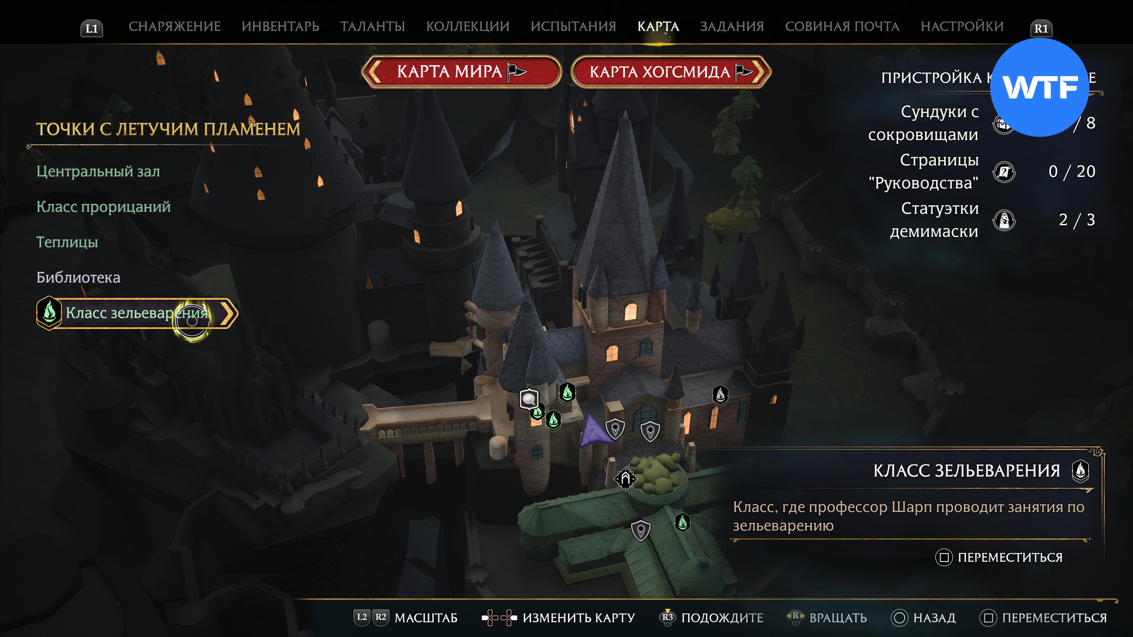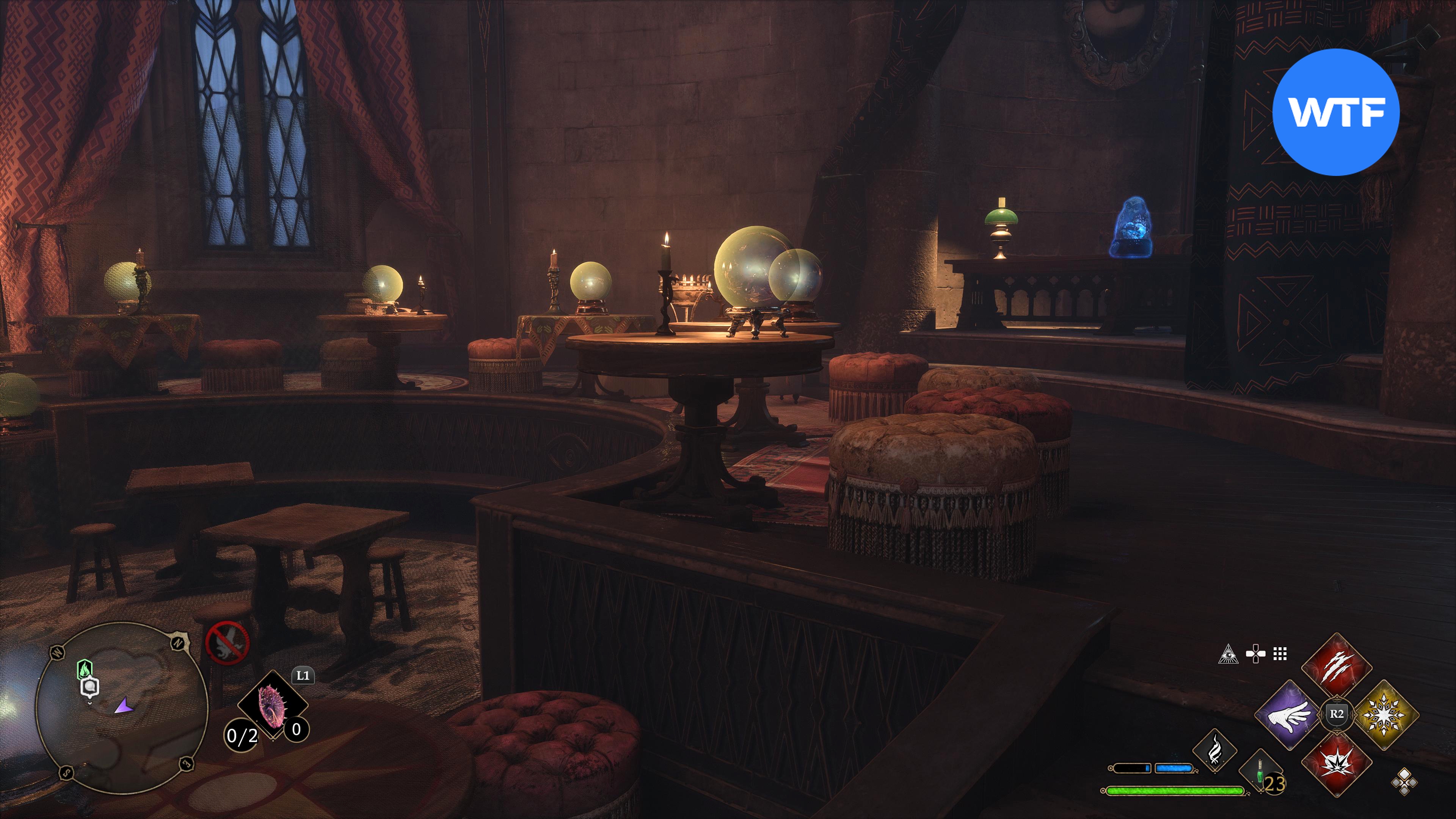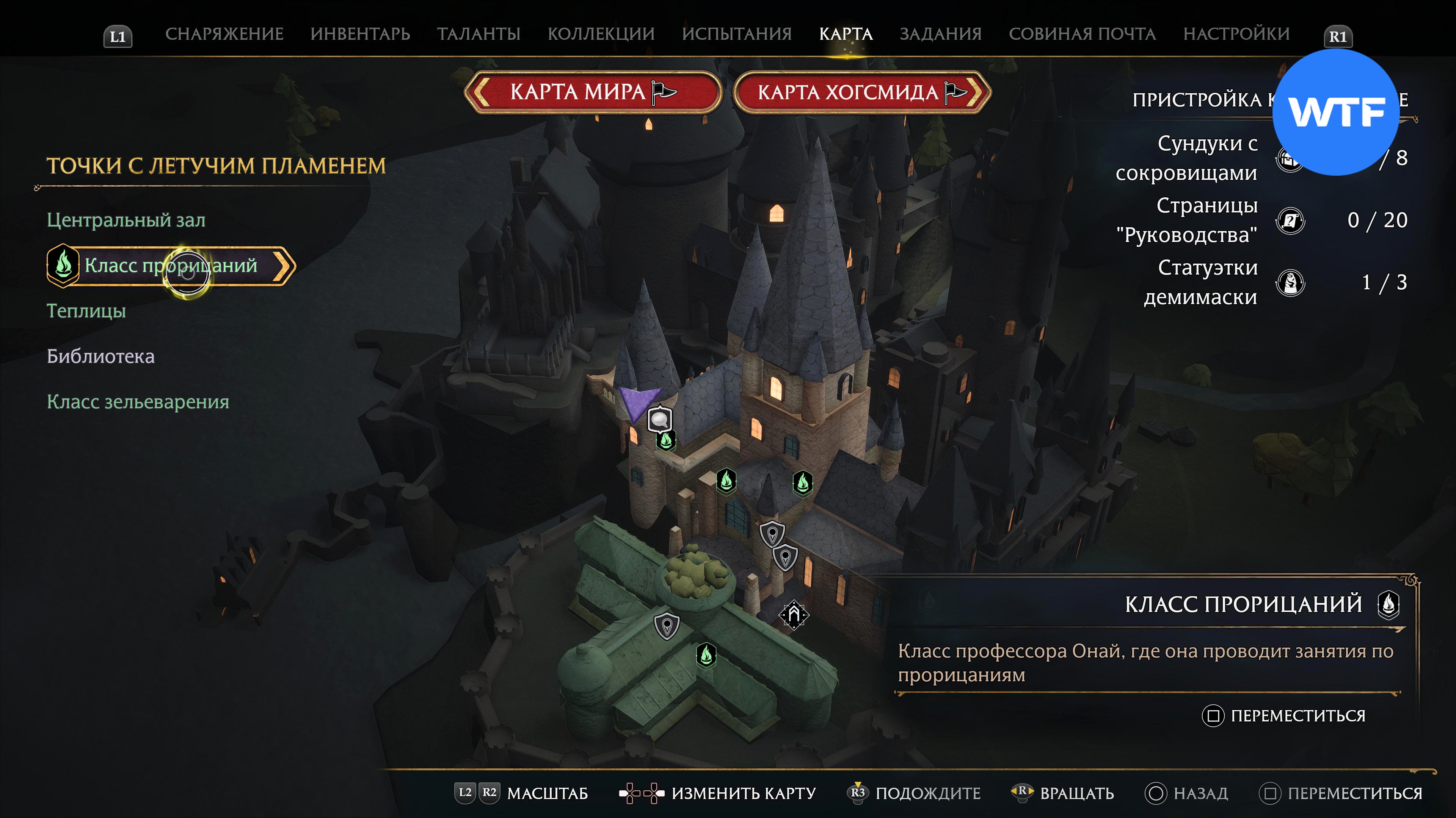 Переместитесь в Класс прорицаний, расположенный в Пристройке к библиотеке. От места появления идите по лестнице вверх до конца. Перед вами появится еще одна лестница, по которой можно подняться в класс прорицаний. Статуэтка демимаски ждет вас на столе учителя.