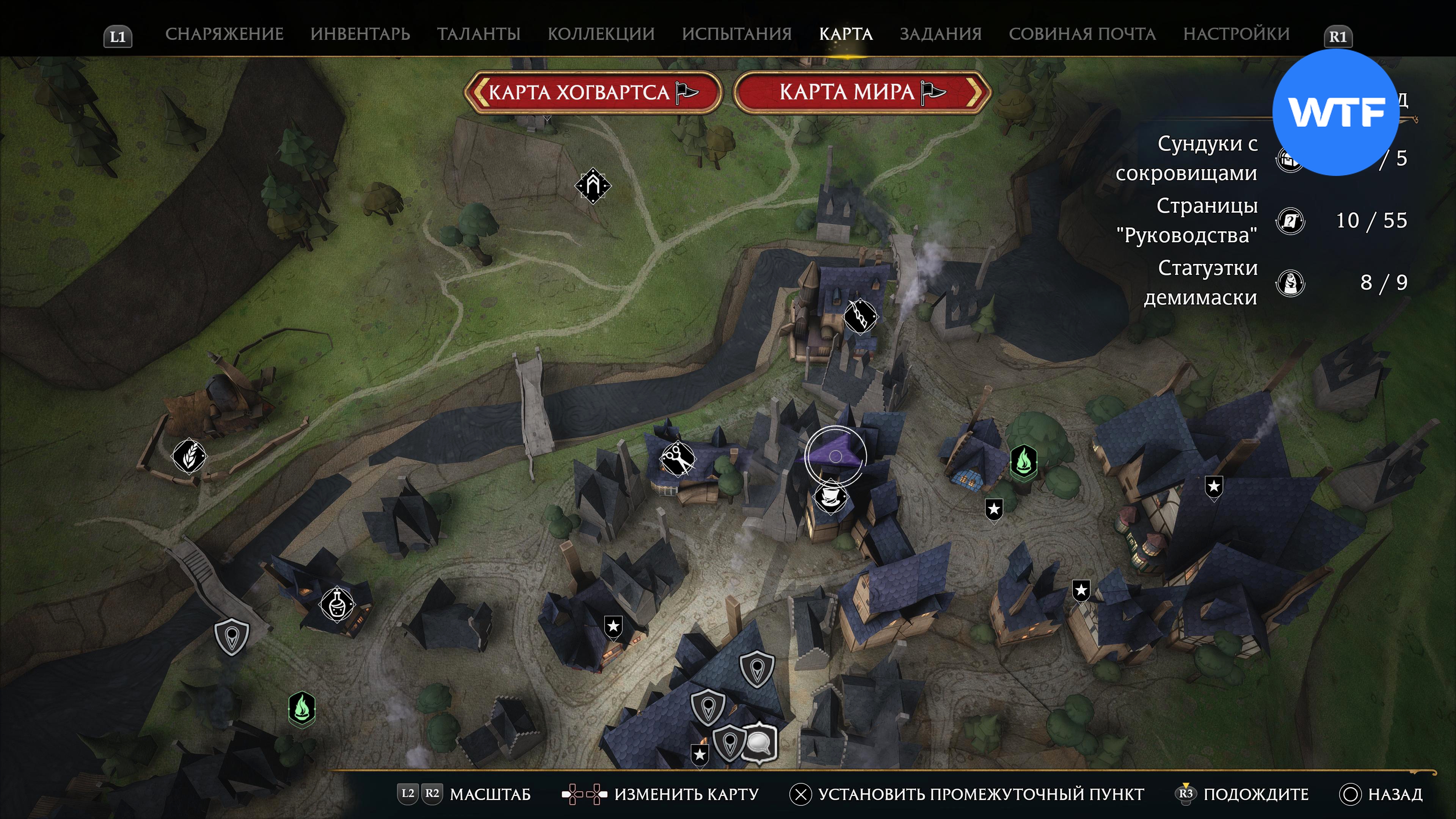 Это небольшая деревня к востоку от Хогвартса. Статуэтка демимаски стоит внутри большого дома с остроконечной крышей (см. скриншот 2).