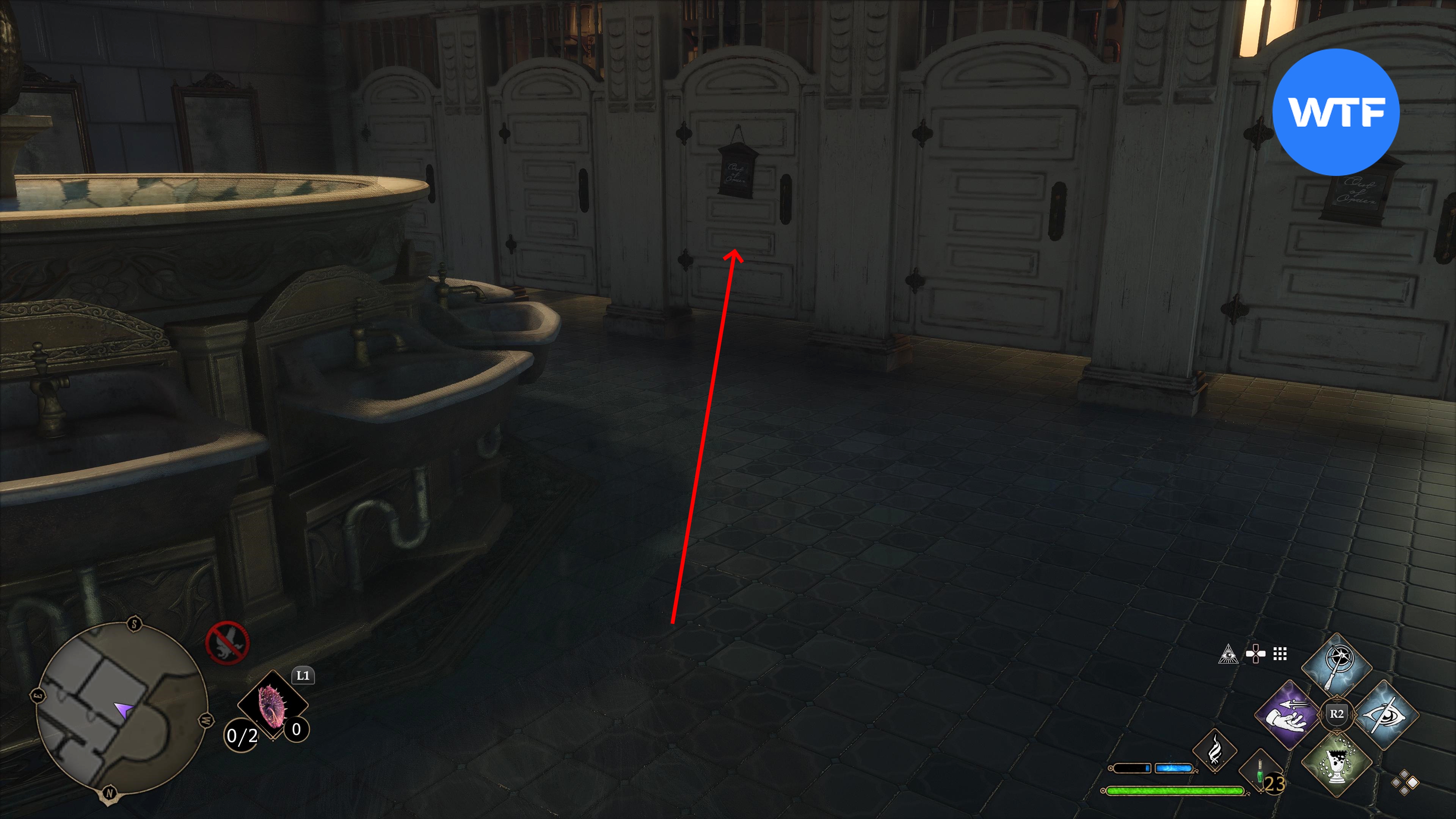 Переместитесь в Класс зельеварения, расположенный в Пристройке к библиотеке. От места появления пройдите через дверь прямо перед вами. Затем поверните налево и спуститесь вниз по лестнице до конца. Там вы увидите дверь с замком 1 уровня, которая приведет вас в следующий коридор. Теперь вам нужна первая дверь слева с замком 2 уровня, статуэтка с луной стоит за ней.