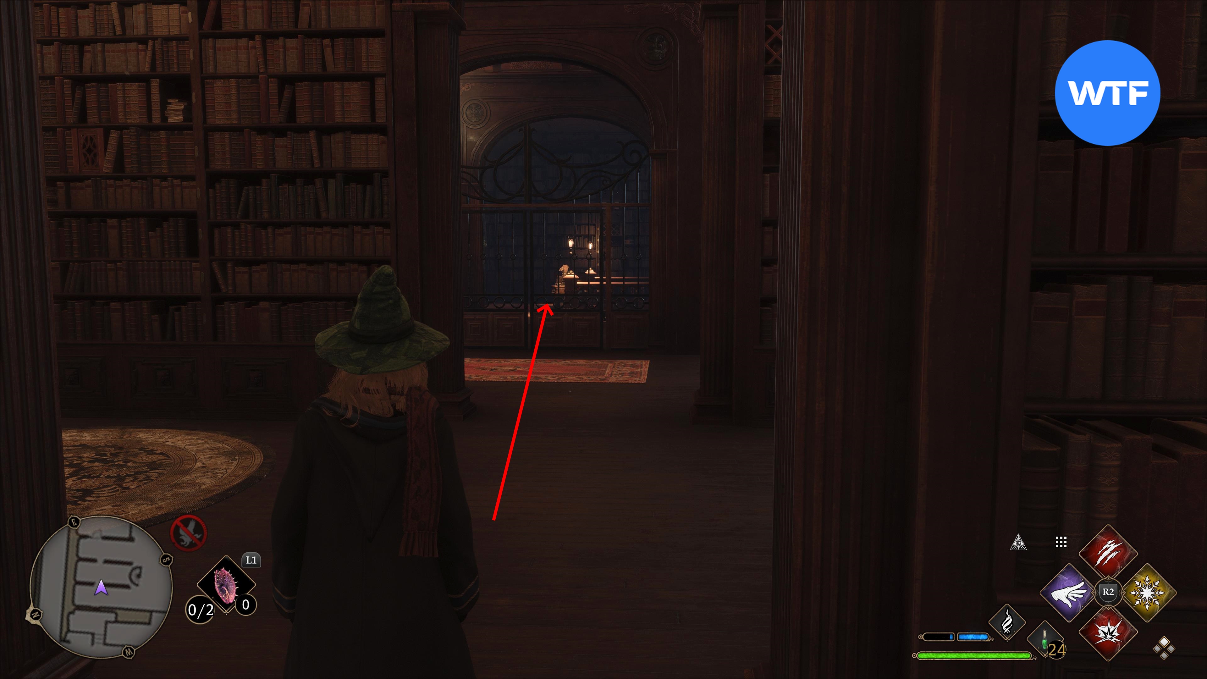Переместитесь в Библиотеку, расположенную в Пристройке к библиотеке. От места появления развернитесь и идите вперед. пока не упретесь в книжные полки. Затем поверните направо и пройдите через дверь, ведущую в Запретную секцию. Вам нужно спуститься вниз и повторить свой сюжетный путь вперед, чтобы найти статуэтку демимаски в конце.
