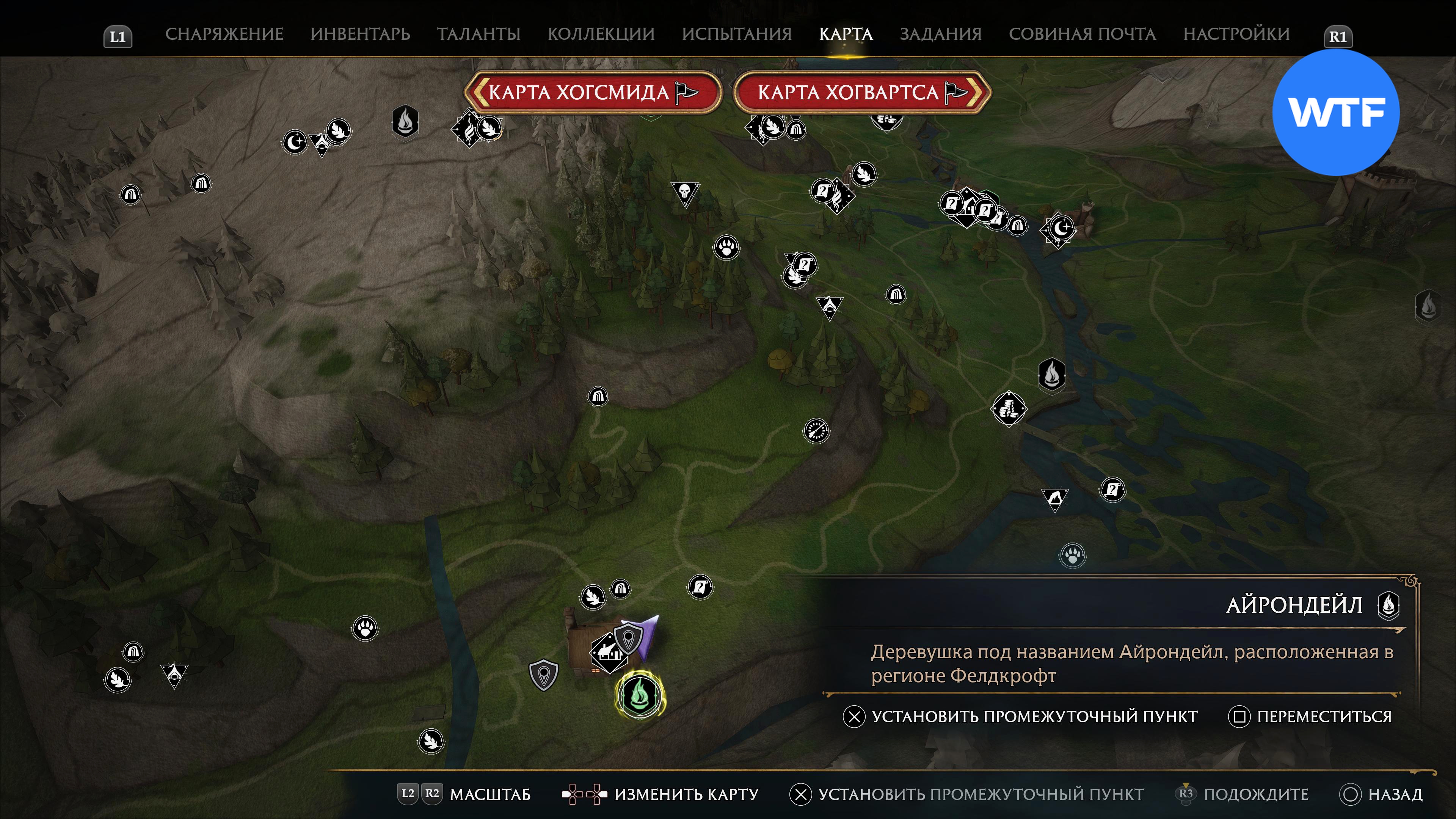 Айрондейл находится к югу от Хогвартса и примерно по центру карты. Дом со статуэткой демимаски показан на скриншоте 2.