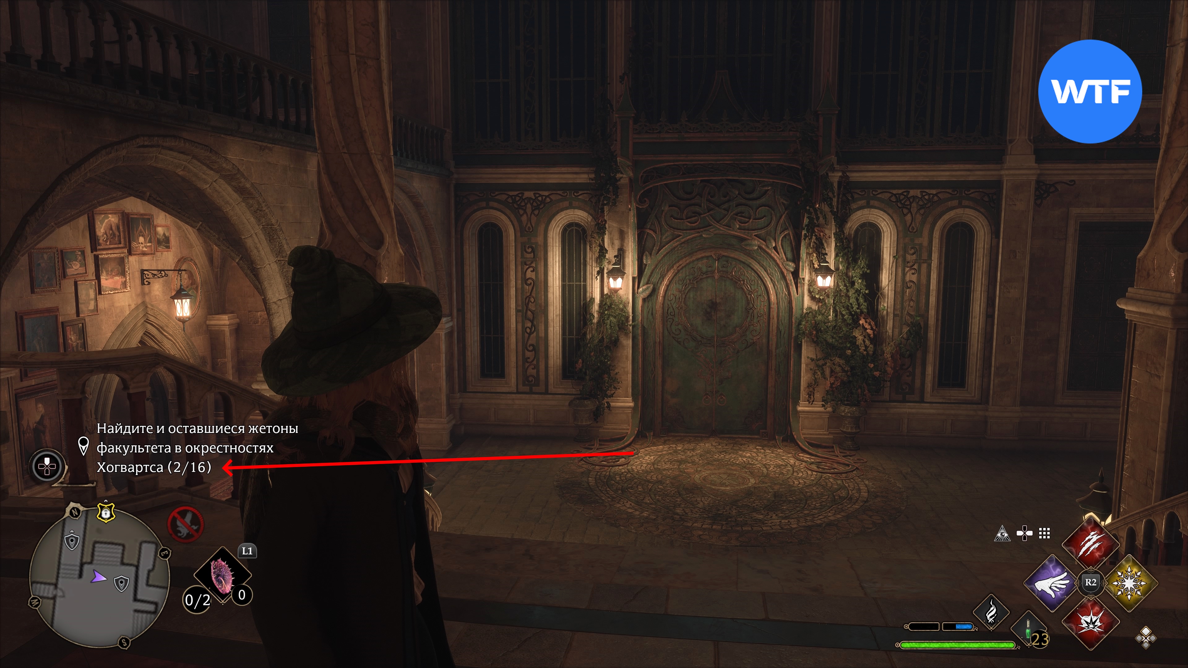 Первый летающий ключ вы найдете в рамках дополнительного задания «Хитроумные ключи». Взять его можно во Дворе трансфигурации Астрономического крыла. Следуйте за квестовыми метками в Астрономическую башню, они помогут найти и ключ, и шкаф с жетоном.