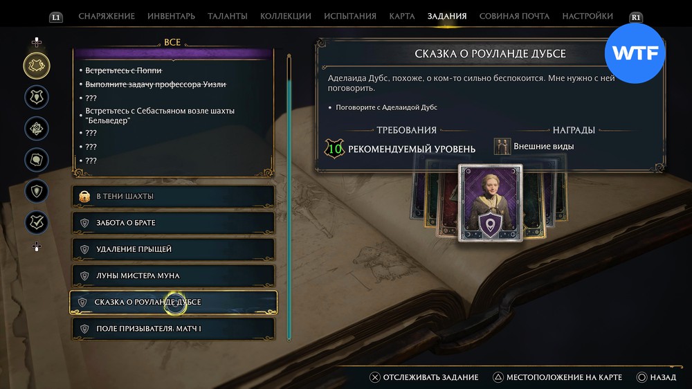 С этим гоблином вы встретитесь во время выполнения дополнительного задания «Сказка о Роуланде Дубсе». Получив письмо от Аделаиды Дубс, встретьтесь с ней во Дворе трансфигурации Астрономического крыла Хогвартса.