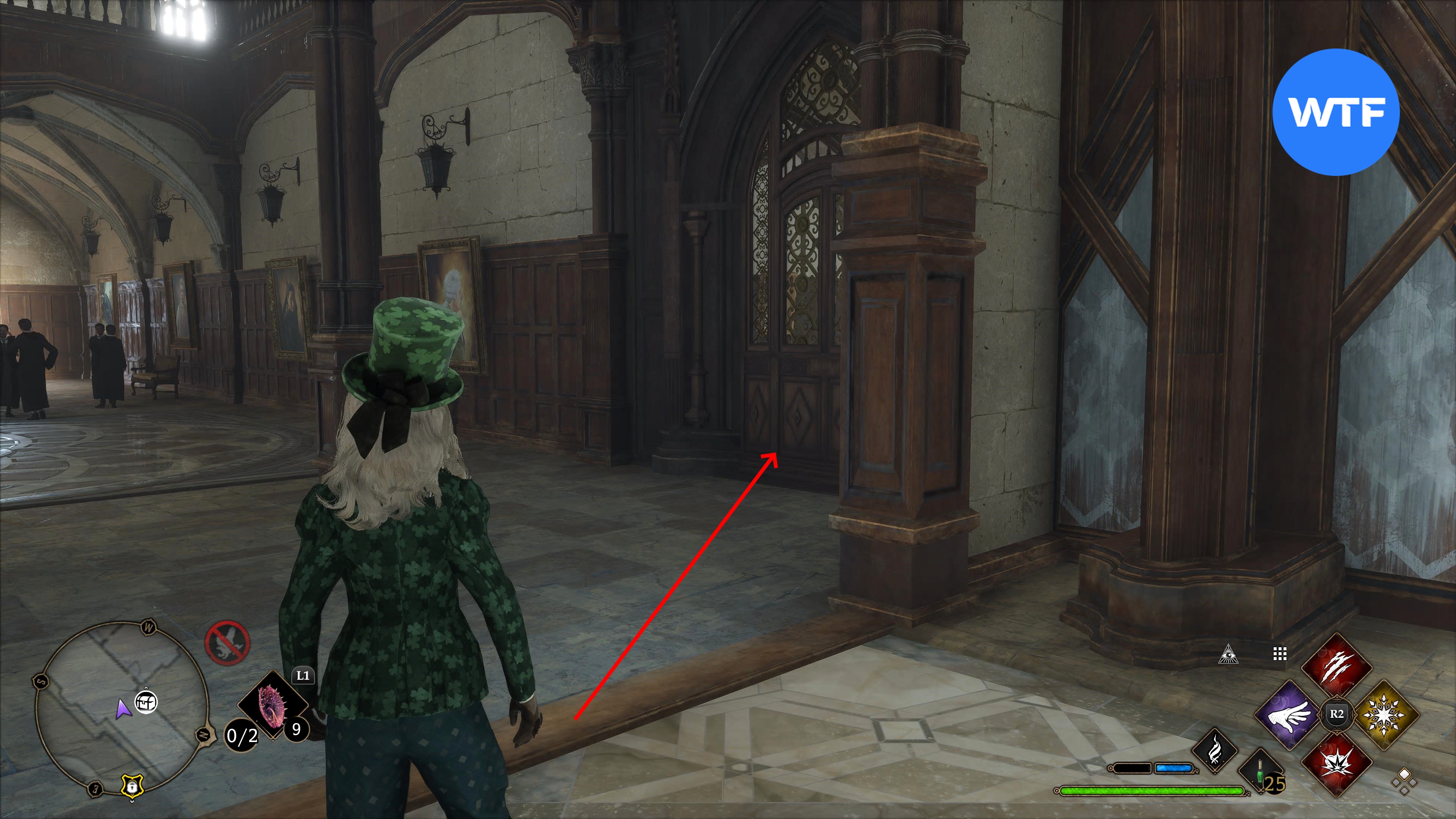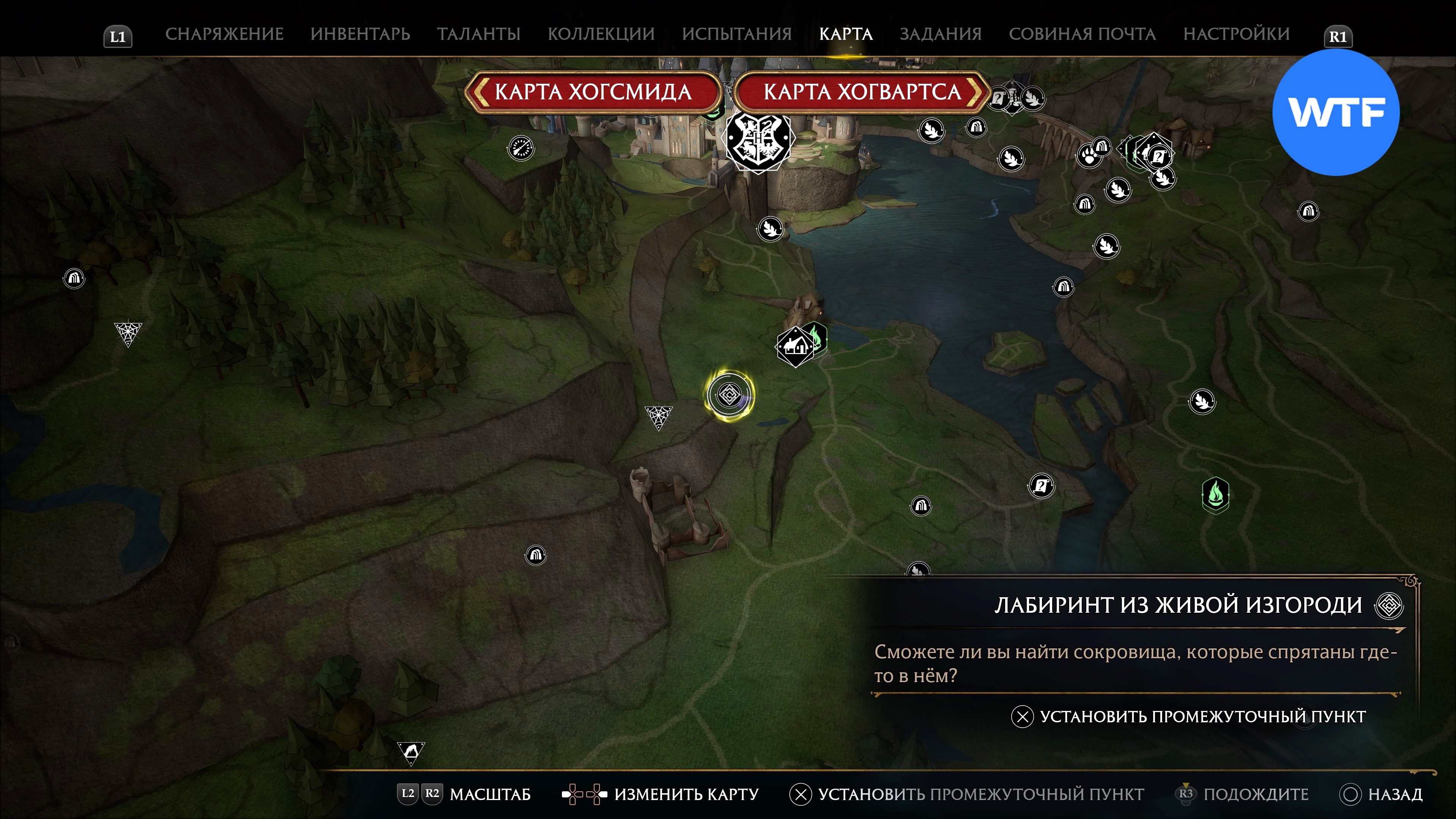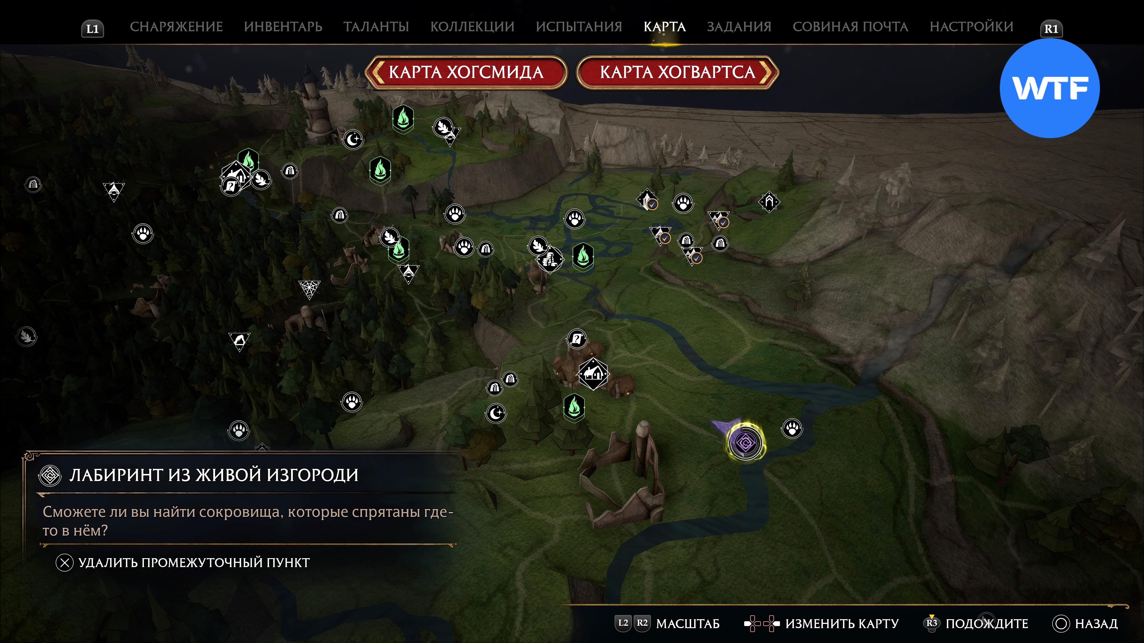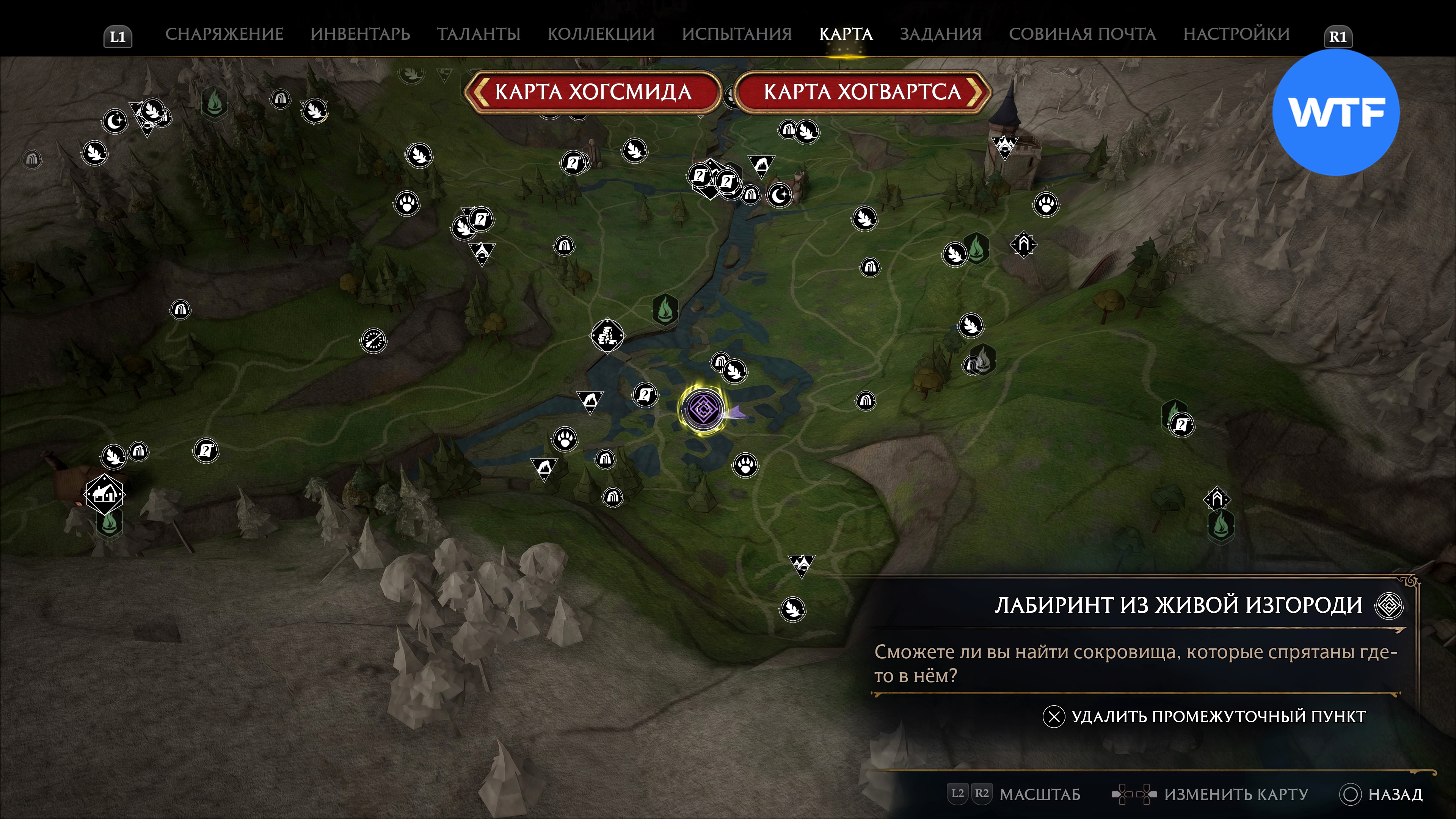 Вам нужно отыскать зеленую арку из листьев к юго-востоку от Верхнего Хогсфилда. Возьмите записку рядом, а затем пройдите через арку. Это запустит испытание Лабиринта из зеленой изгороди. Внутри используйте Ревелио, чтобы подсветить сундук и выбрать путь внутри лабиринта.