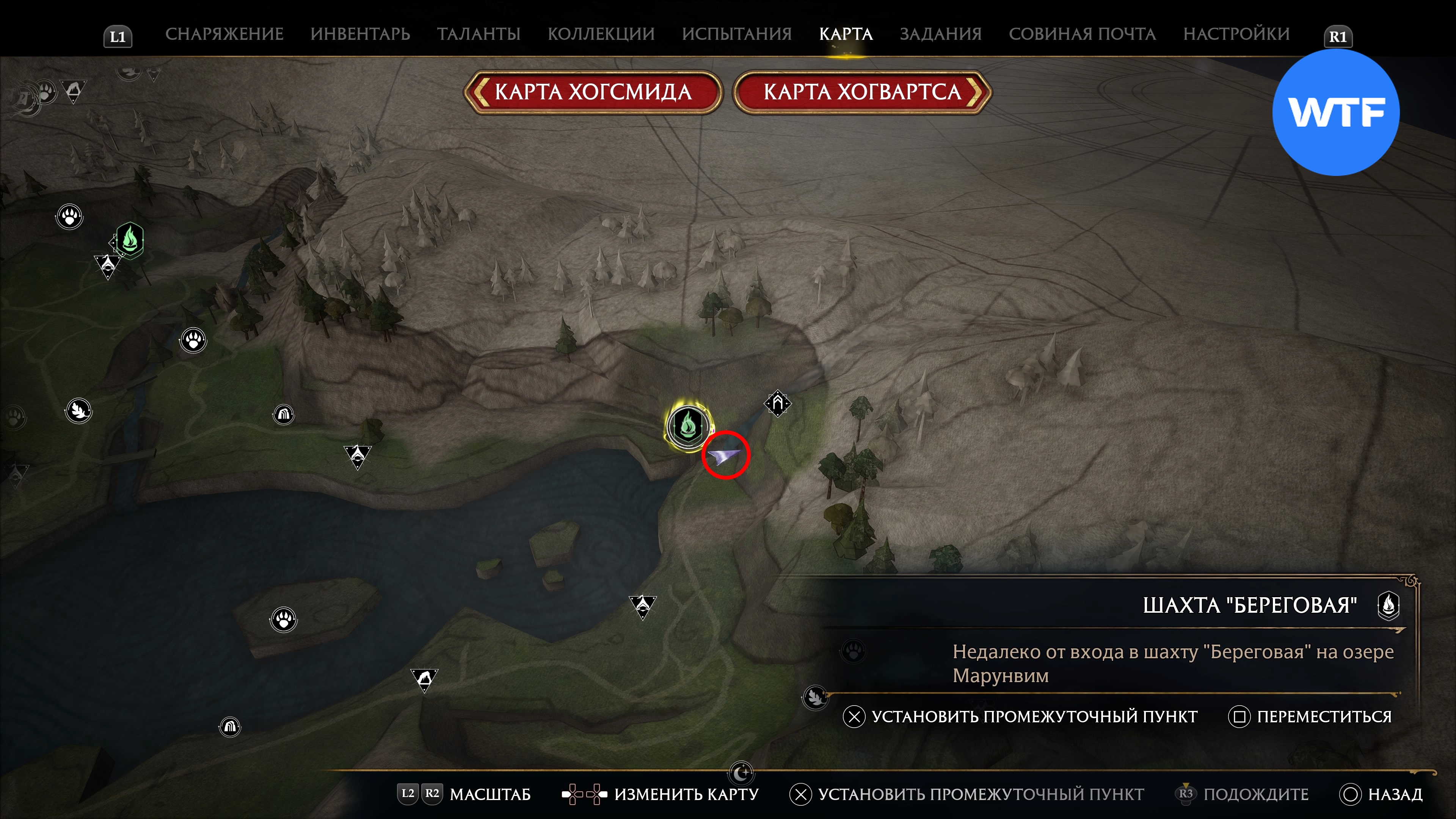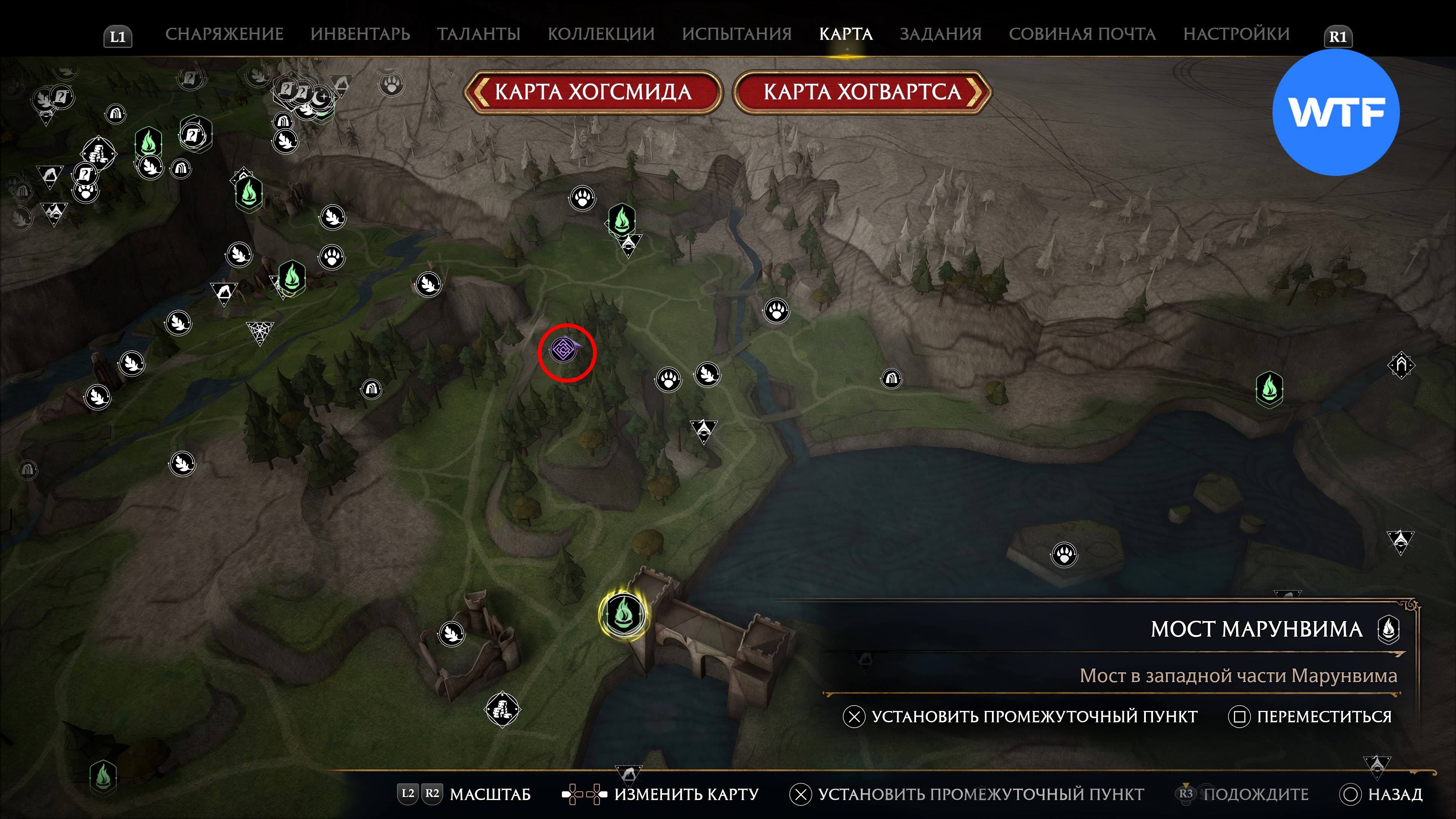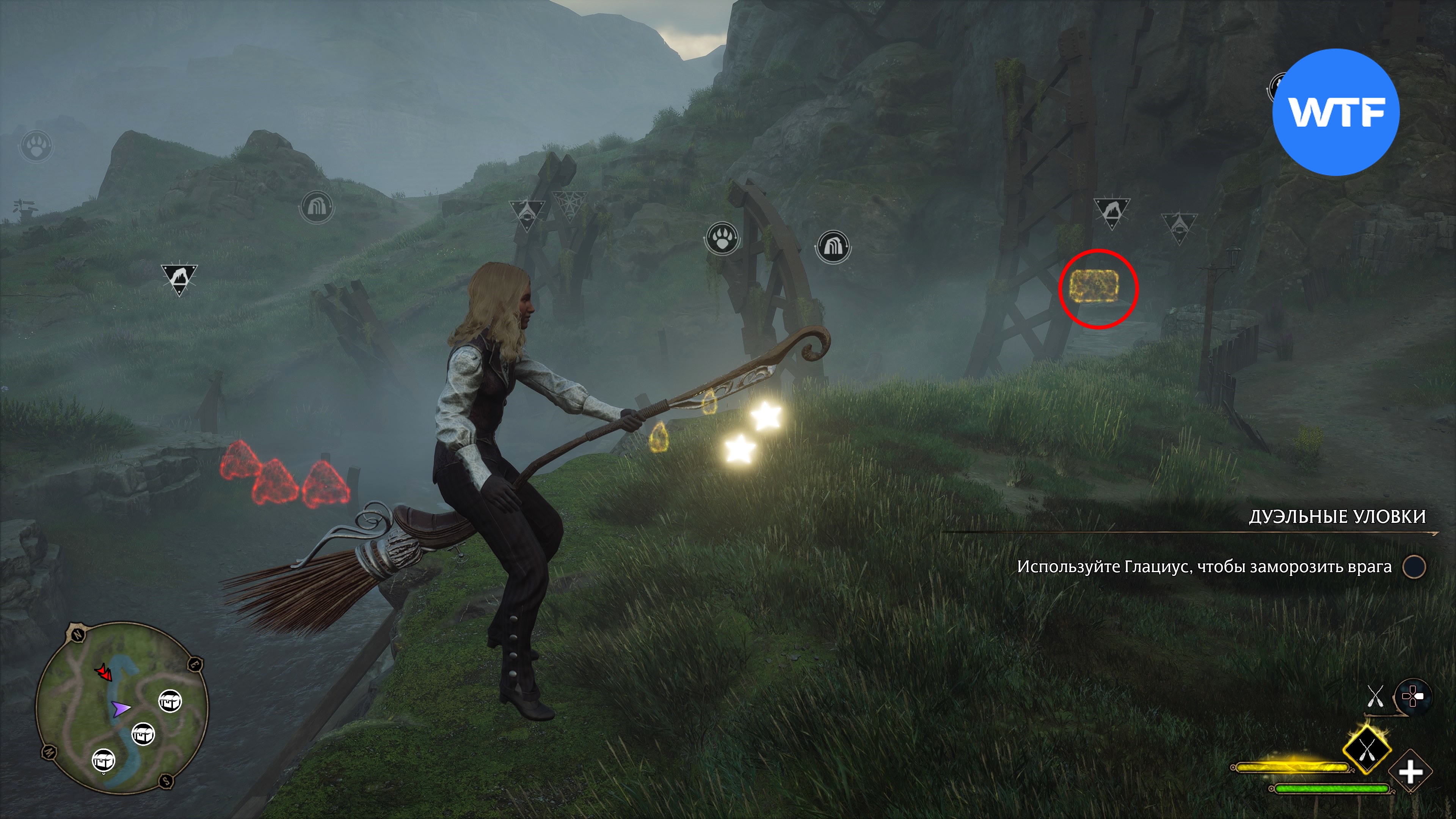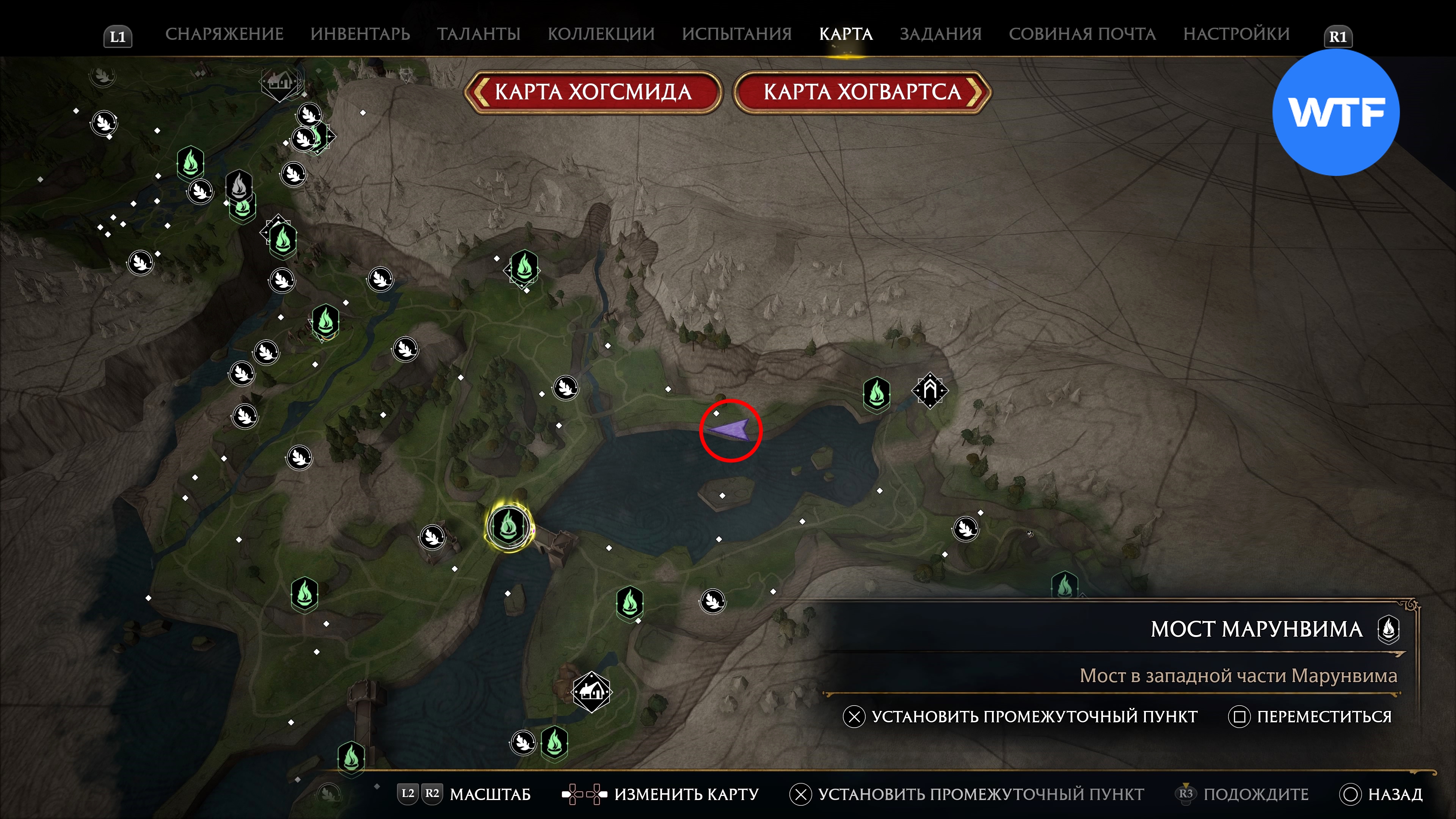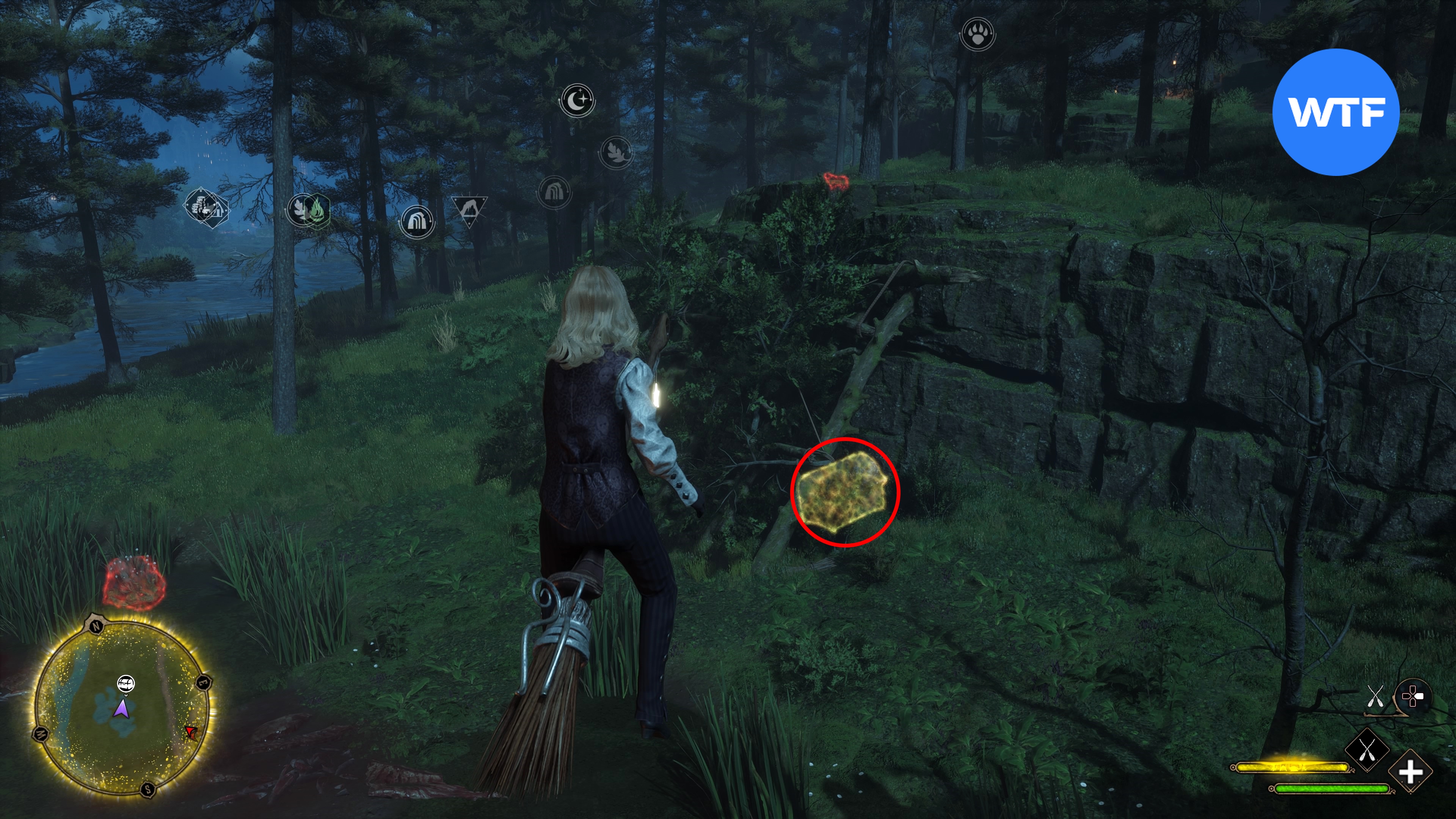 От точки быстрого перемещения Башня с туннелем в восточной части региона Озеро Марунвим идите по тропинке налево. Пройдя немного вперед, вы увидите слева от себя кучу камней, которые можно взорвать, чтобы расчистить проход. После этого используйте заклинание Люмос, чтобы пройти мимо дьявольских силков к сундуку.