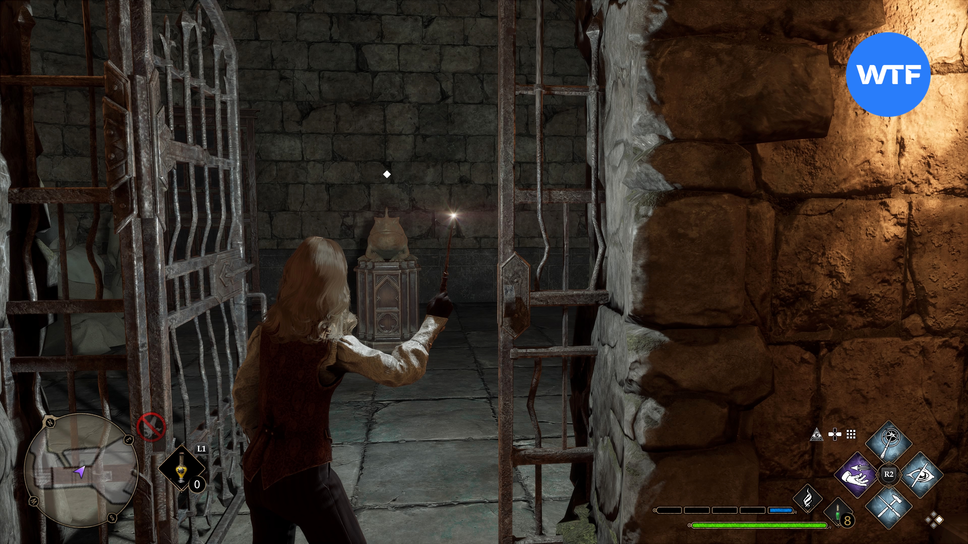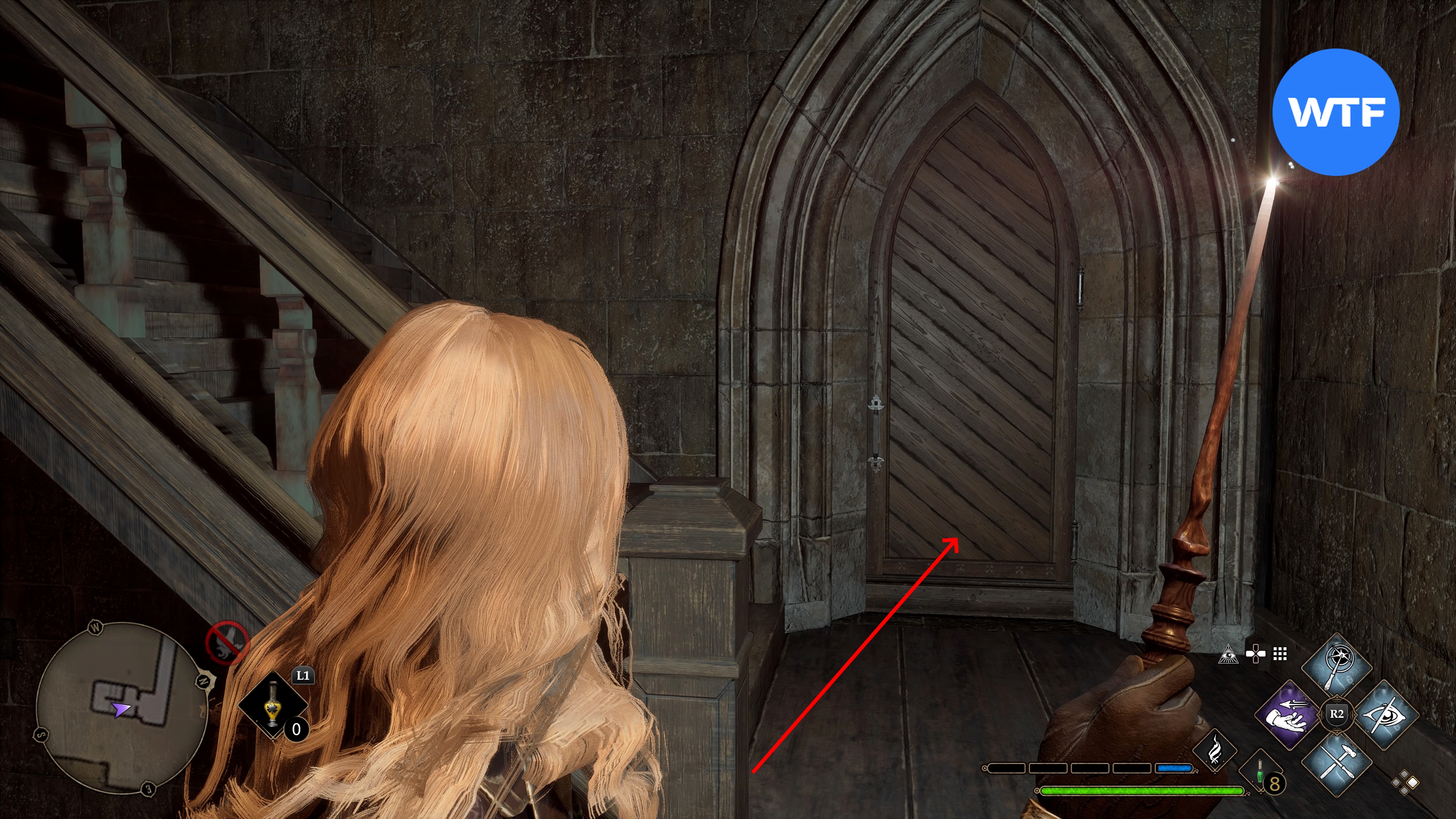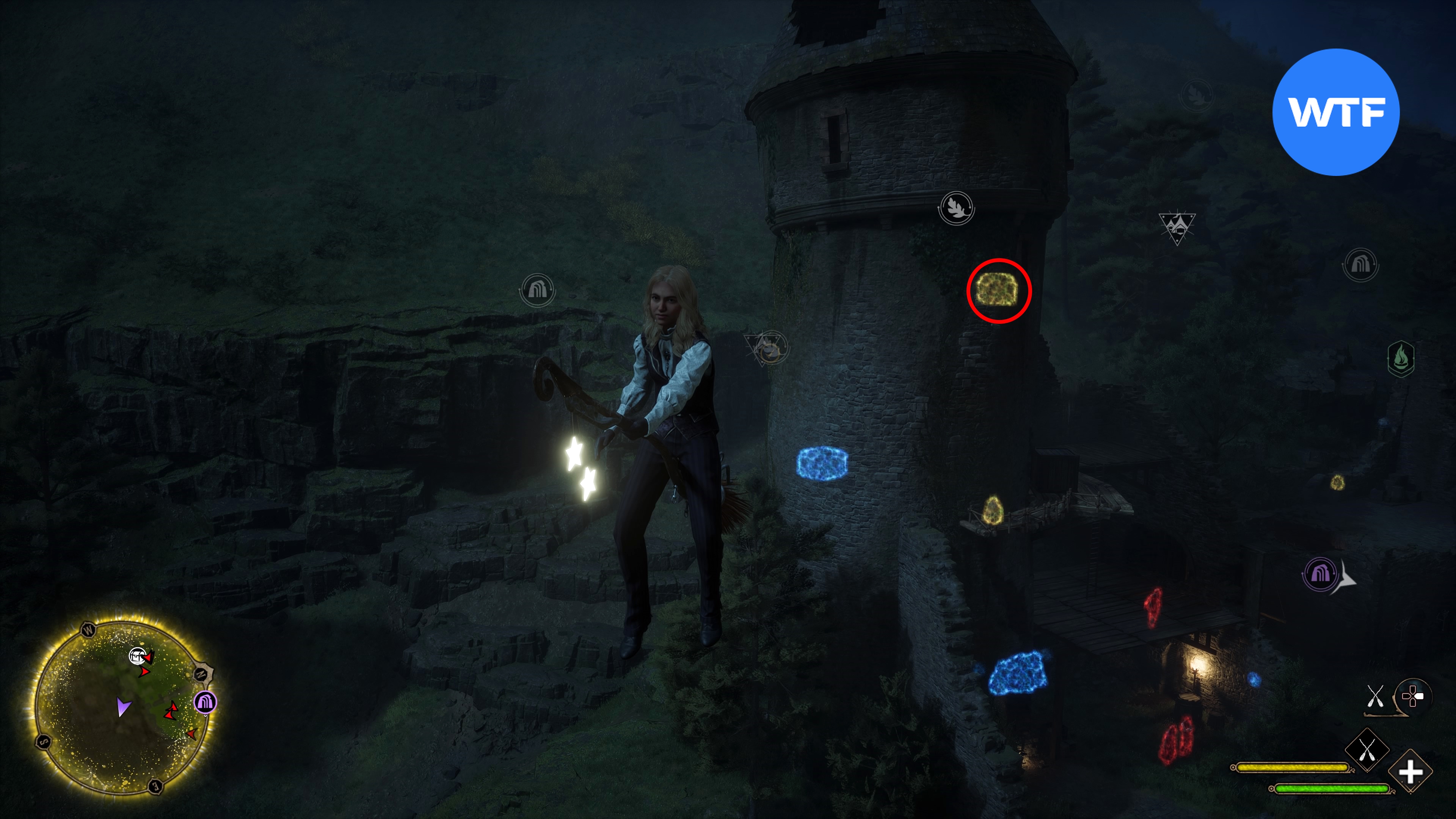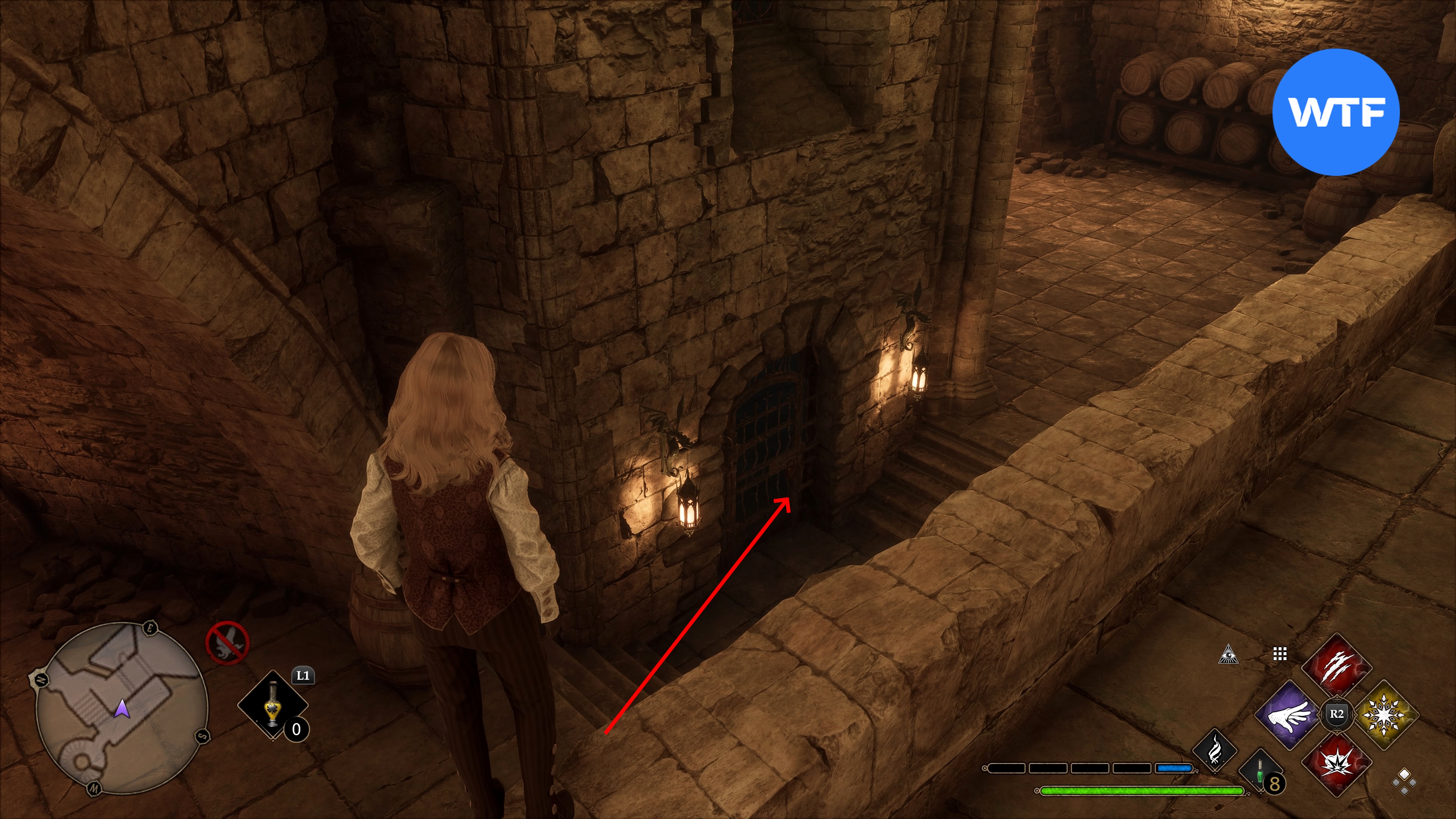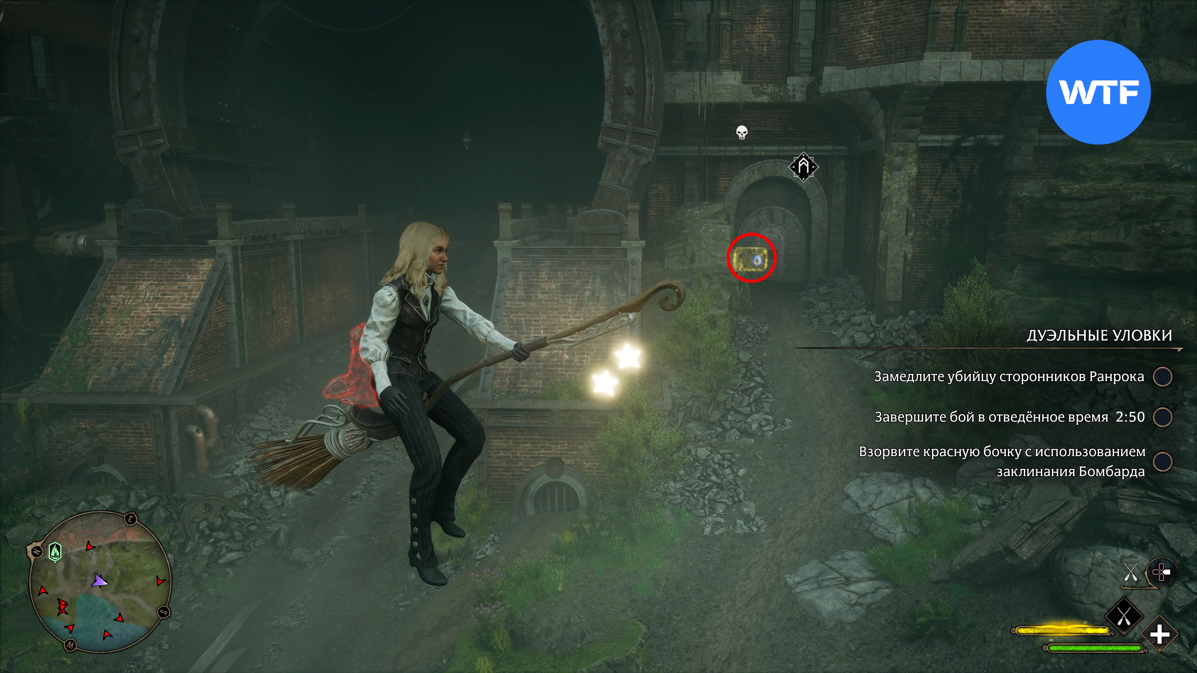 От точки быстрого перемещения Башня с туннелем в восточной части региона Озеро Марунвим идите по тропинке налево. Пройдя немного вперед, вы увидите слева от себя кучу камней, которые можно взорвать, чтобы расчистить проход. После этого используйте заклинание Люмос, чтобы пройти мимо дьявольских силков к сундуку.