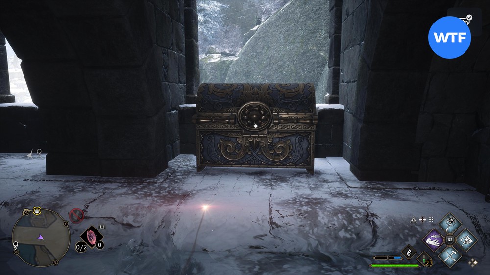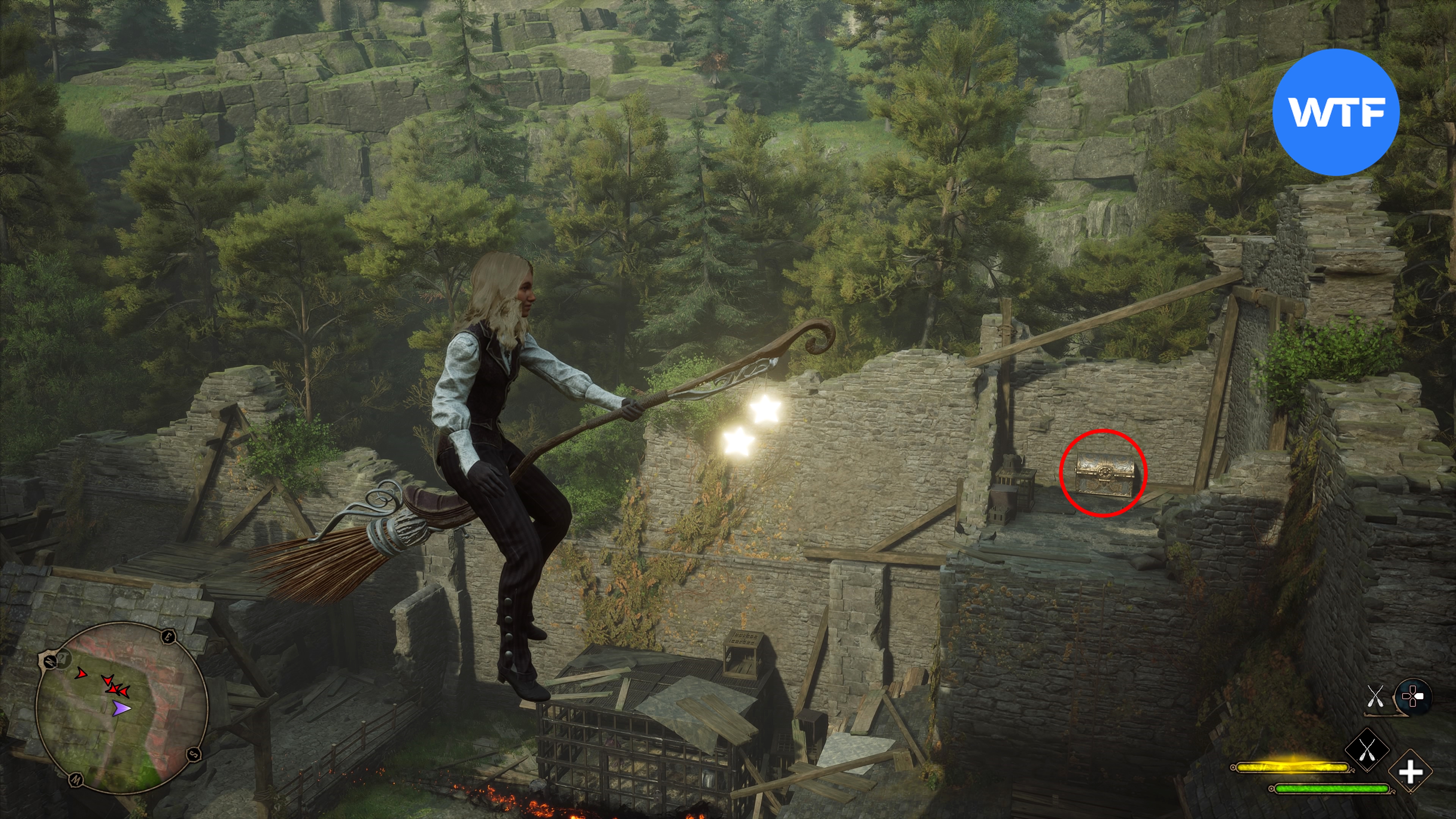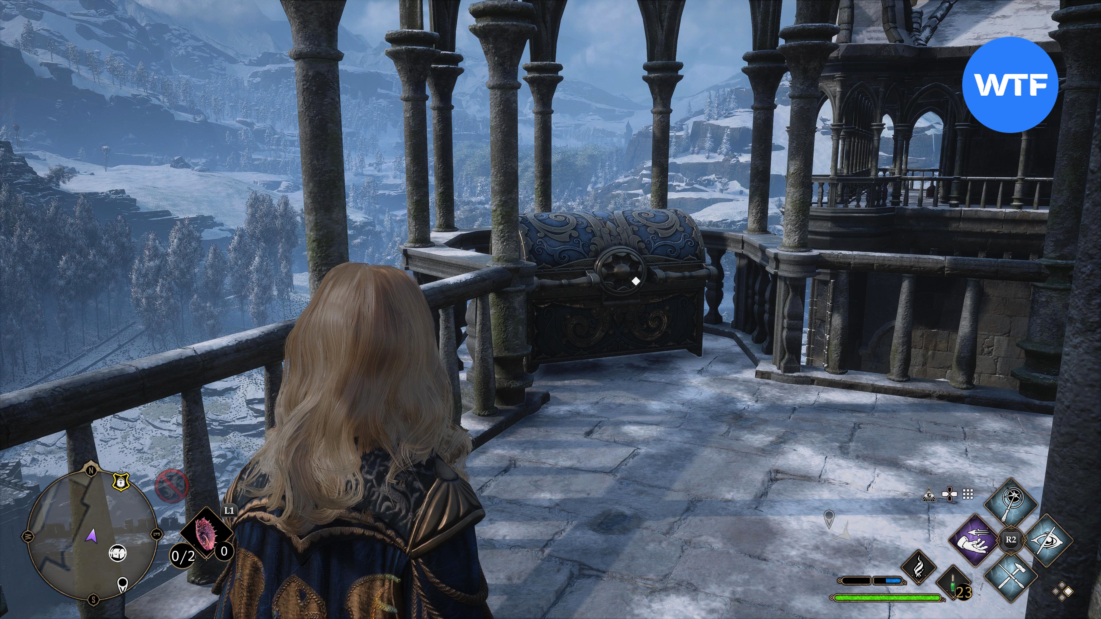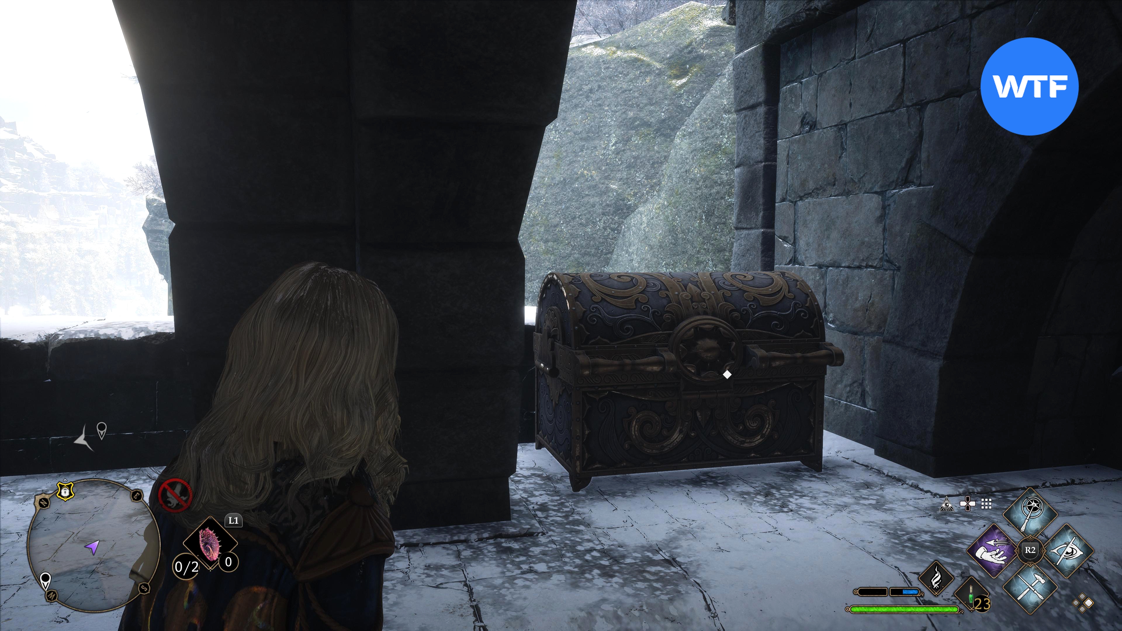 Вы найдете этот сундук в замке Фалбартон в самой восточной точке региона Долина Хогсмида. Подлетите туда на метле, чтобы увидеть этот сундук на одной из верхних площадок.