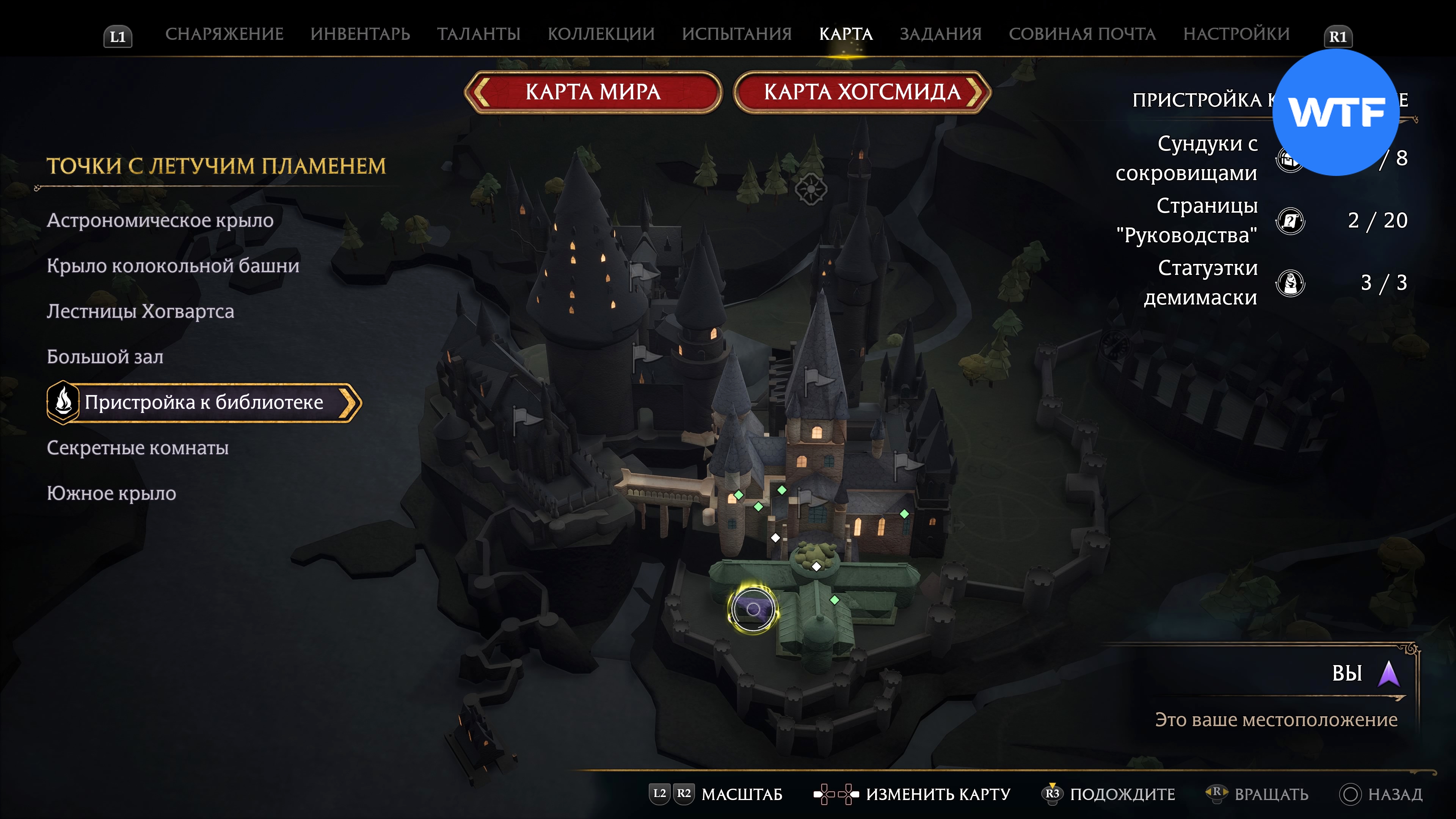 Вам нужно отыскать зеленую арку из листьев к юго-западу от Нижнего Хогсфилда. Возьмите записку рядом, а затем пройдите через арку. Это запустит испытание Лабиринта из зеленой изгороди. Внутри используйте Ревелио, чтобы подсветить сундук и выбрать путь внутри лабиринта.