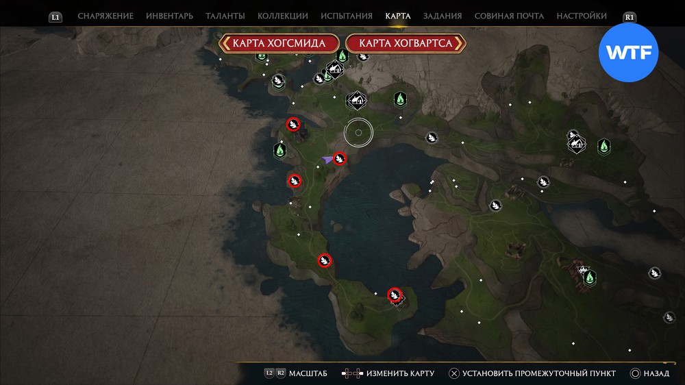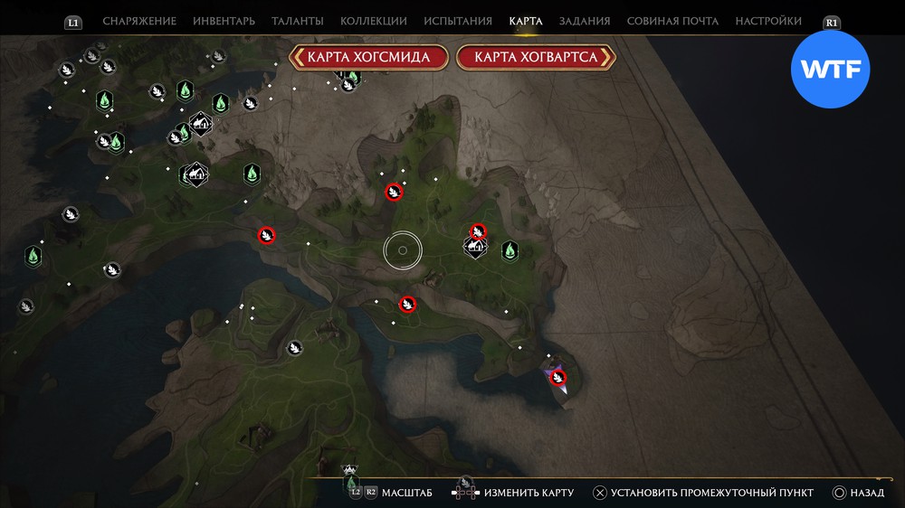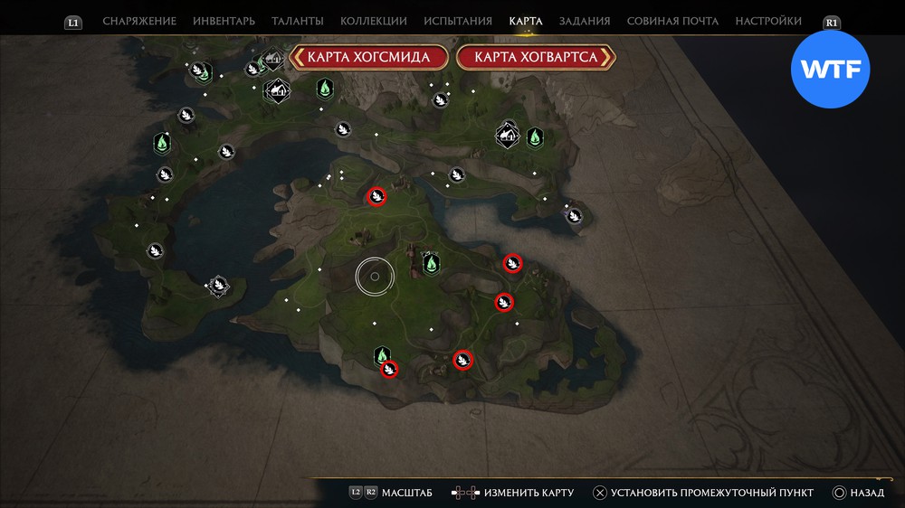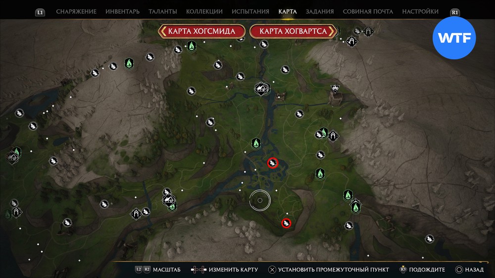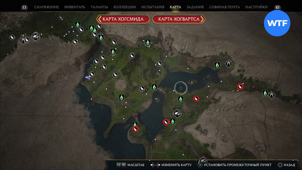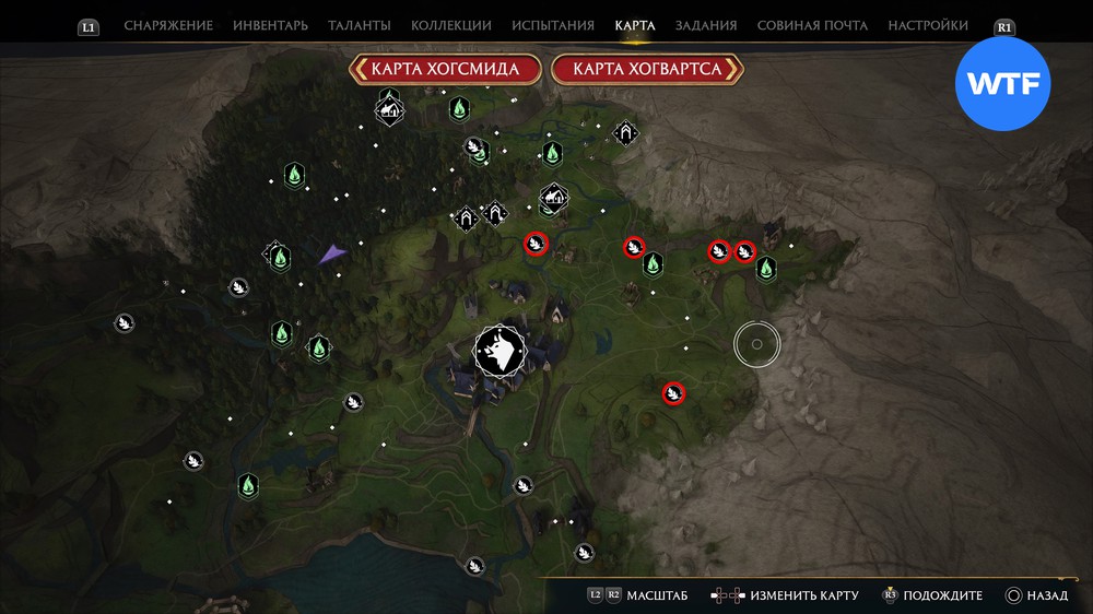 В Долине Хогсмида вас ждут 5 загадок Мерлина: два в центральной части региона, два на востоке и еще одно на юго-востоке.