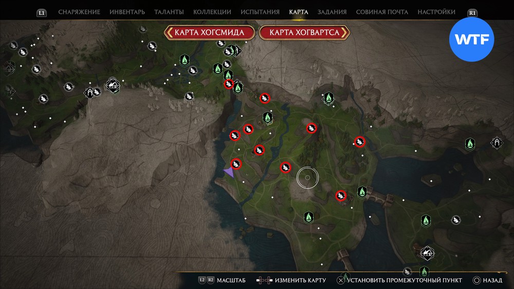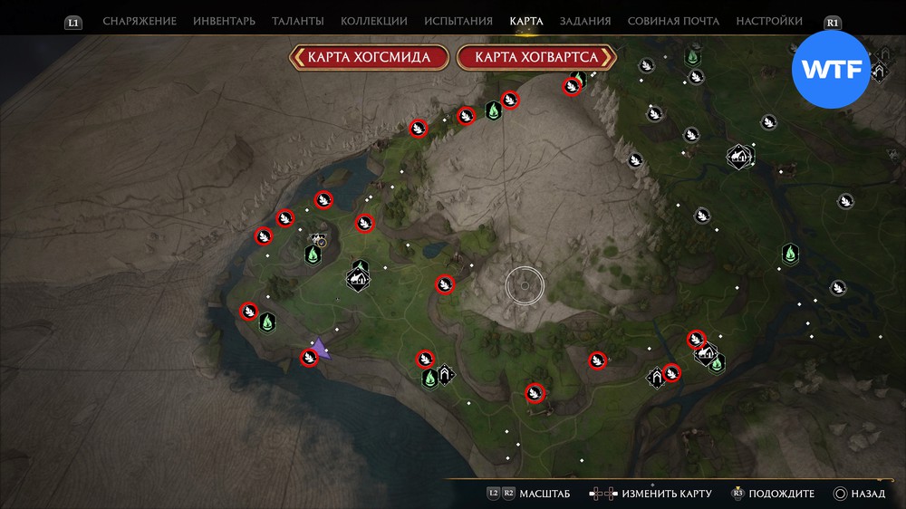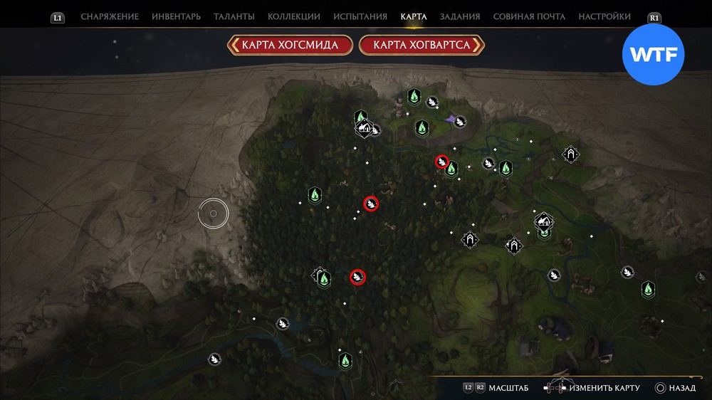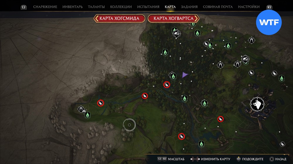 Все испытания Мерлина расположены в открытом мире за пределами Хогвартса и Хогсмида. Ниже мы разделили их по регионам и отметили на картах.