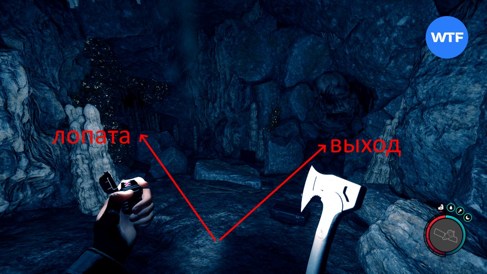 Раздобыв тросомет и акваланг, вы наконец-то сможете отправиться в поход за главной целью. Найти лопату можно внутри пещеры в центральной части карты. Прямо перед входом в эту пещеру торчат три трупа, так что мимо не пройдете.