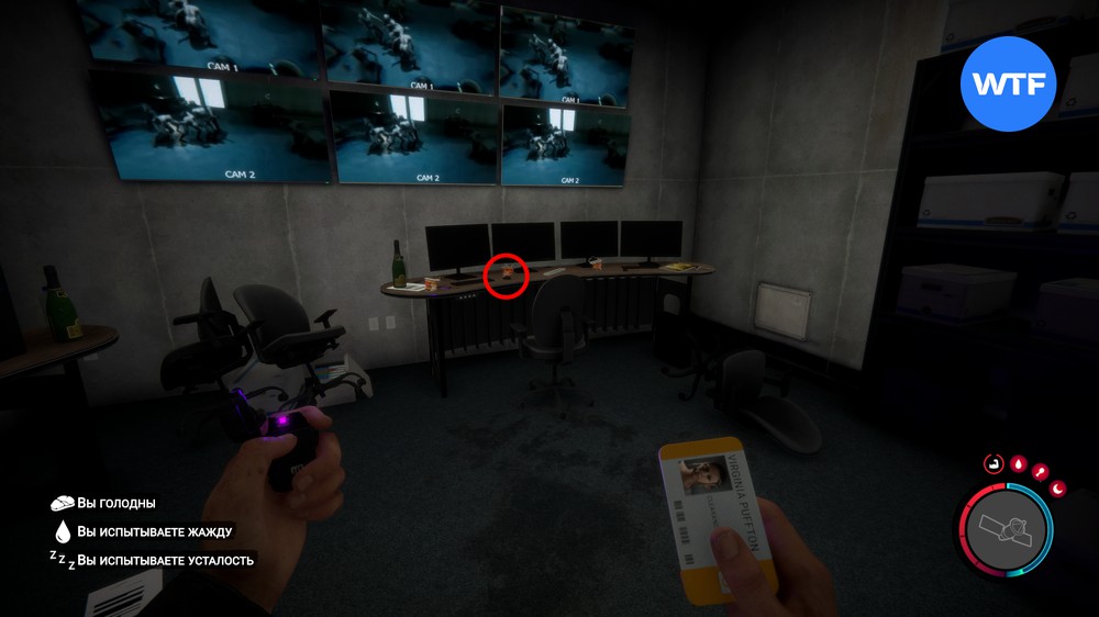 Этот путь приведет вас в комнату охраны, где на большие экраны выведены данные с камер видеонаблюдения. VIP ключ-карту, принадлежащую Вирджинии Пуффтон, вы найдете на столе прямо под ними.