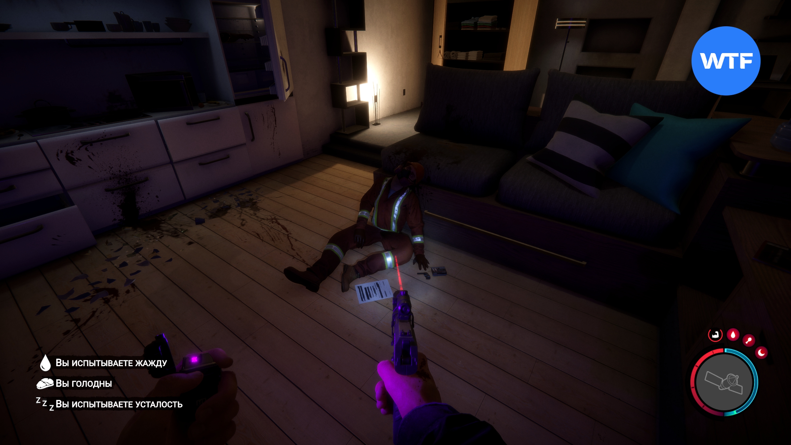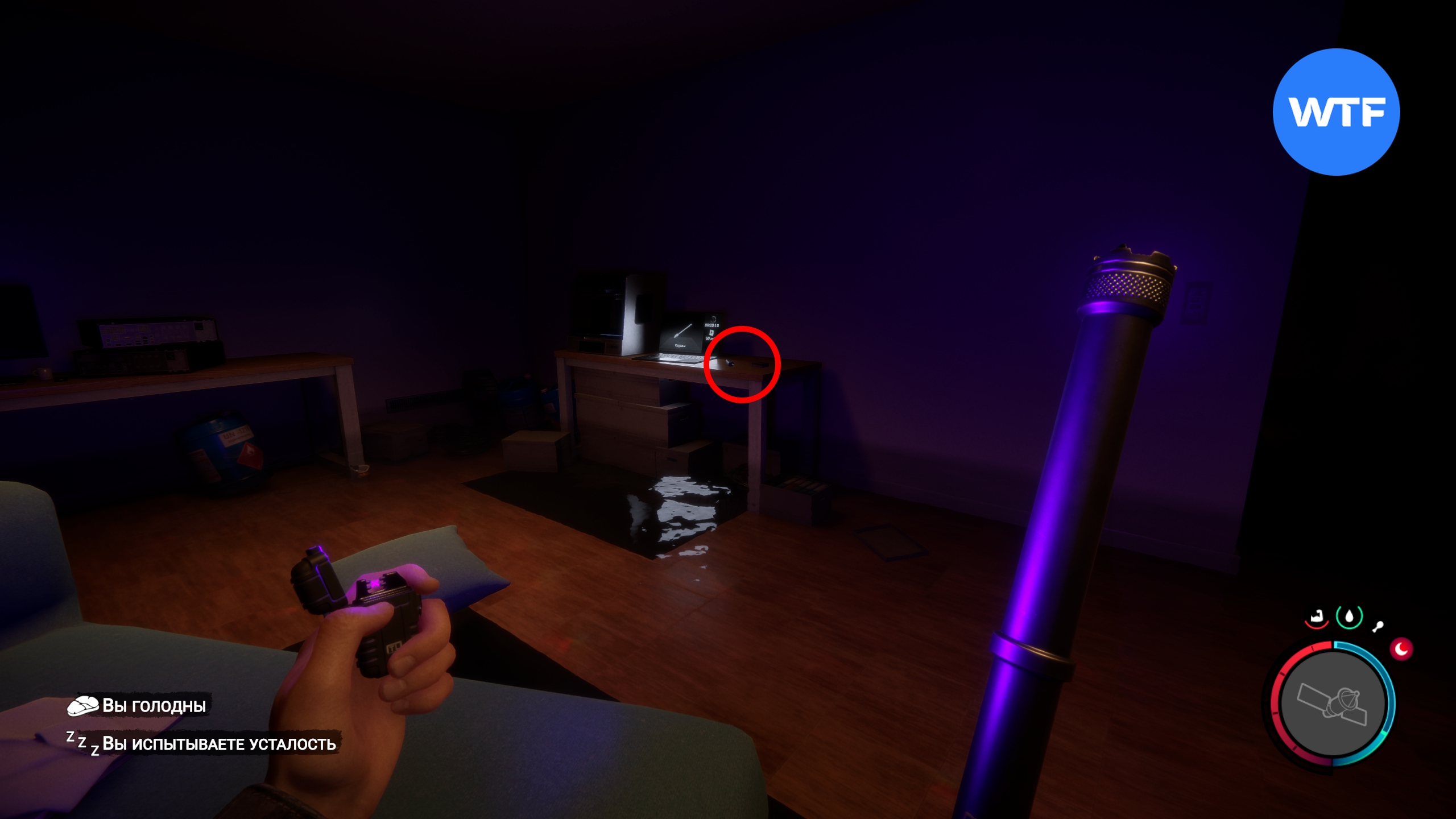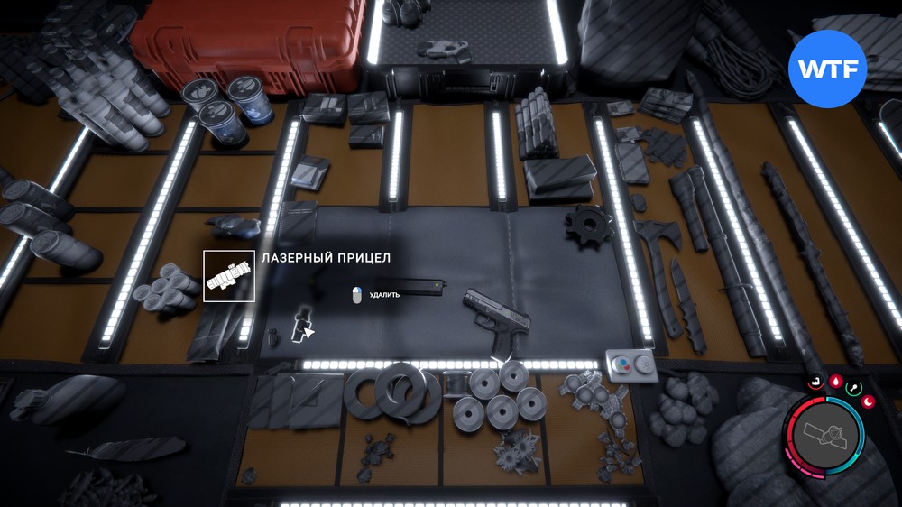 Важный момент: стоит внимательно обыскать все ящики рядом с телами, здесь много полезных ресурсов. С помощью крепления вы сможете присоединить к пистолету два аттачмента: лазерный прицел и фонарик.