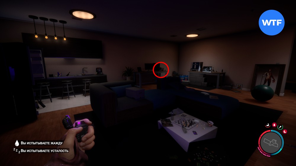 Как следует осмотритесь: в этой комнате вы найдете сразу несколько полезных предметов. Во-первых, возле трупа рабочего на полу лежит цель нашего путешествия, пистолет, а также крепление для него. Во-вторых, на шкафу рядом, возле шахматной доски, лежит аксессуар, который позволит прикрепить к пистолету фонарик.