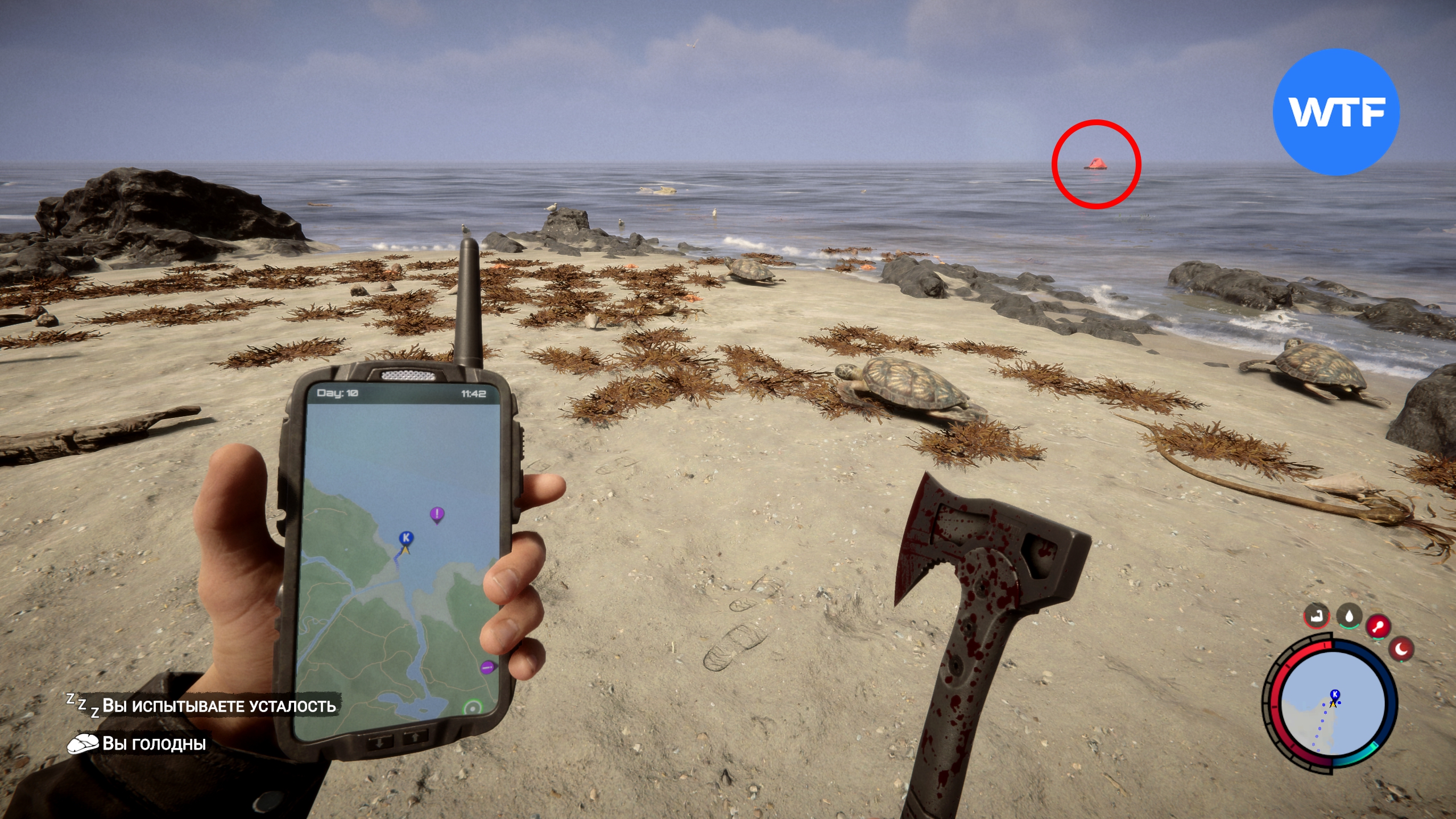 В Sons Of The Forest вы не сможете построить плот или что-то вроде того, поэтому придется самостоятельно плыть в сторону лодки. Постарайтесь сделать это как можно быстрее и не задерживайтесь в воде: в прибрежных водах водятся акулы, а драться в воде нельзя — при встрече акула просто сожрет вашего героя.