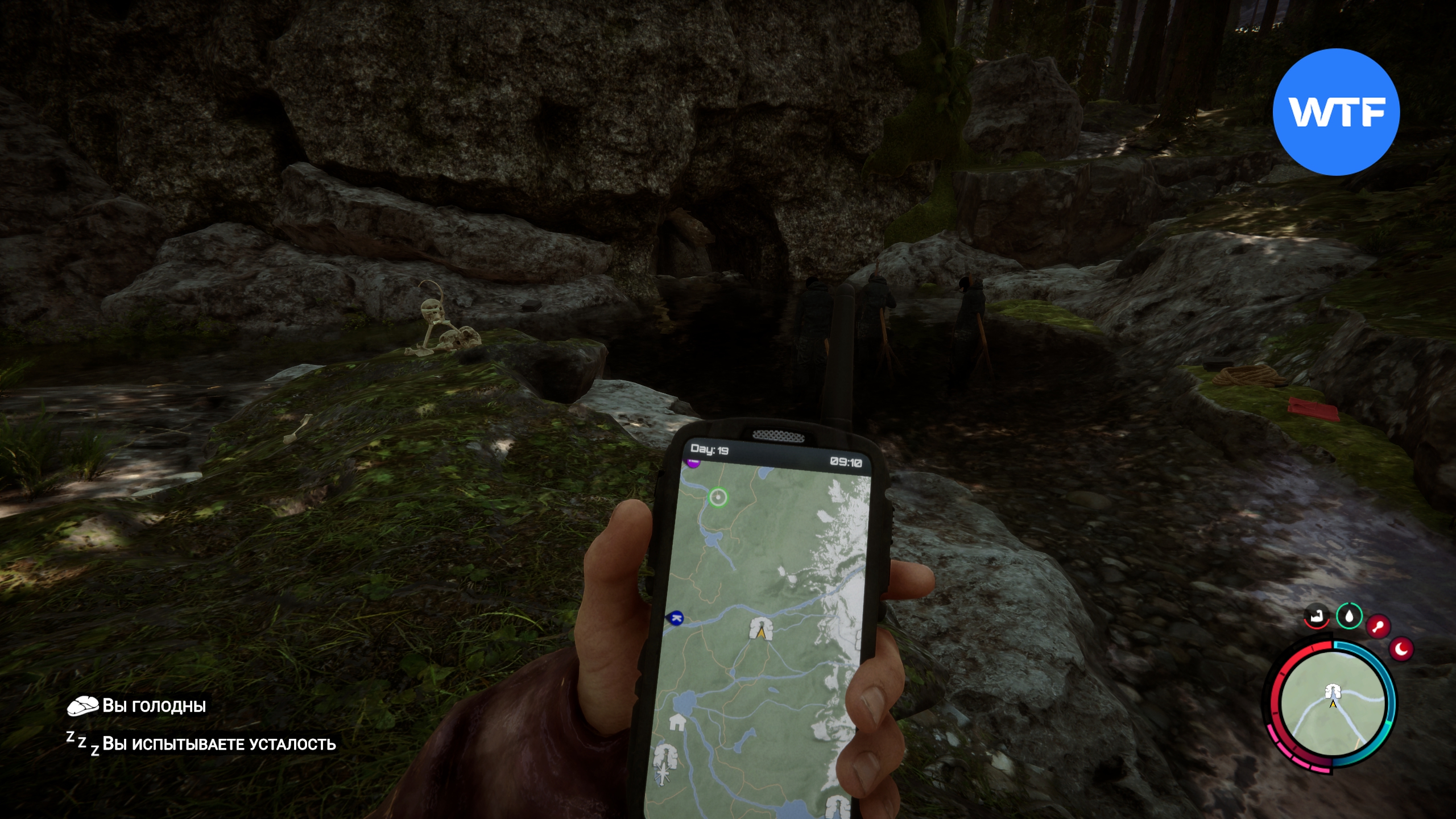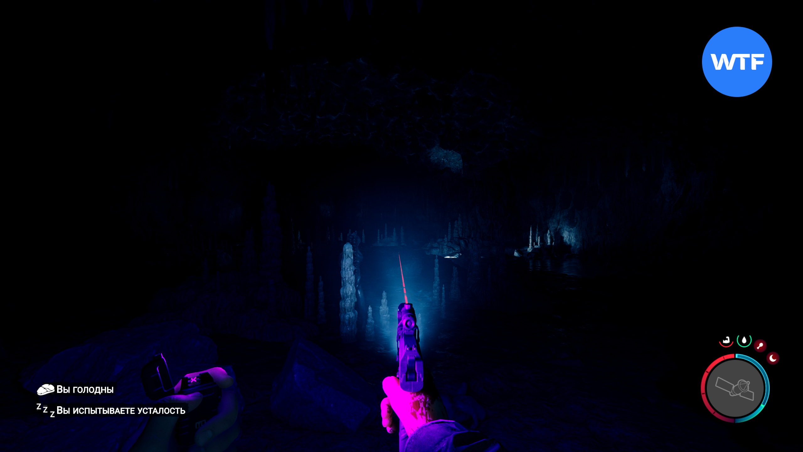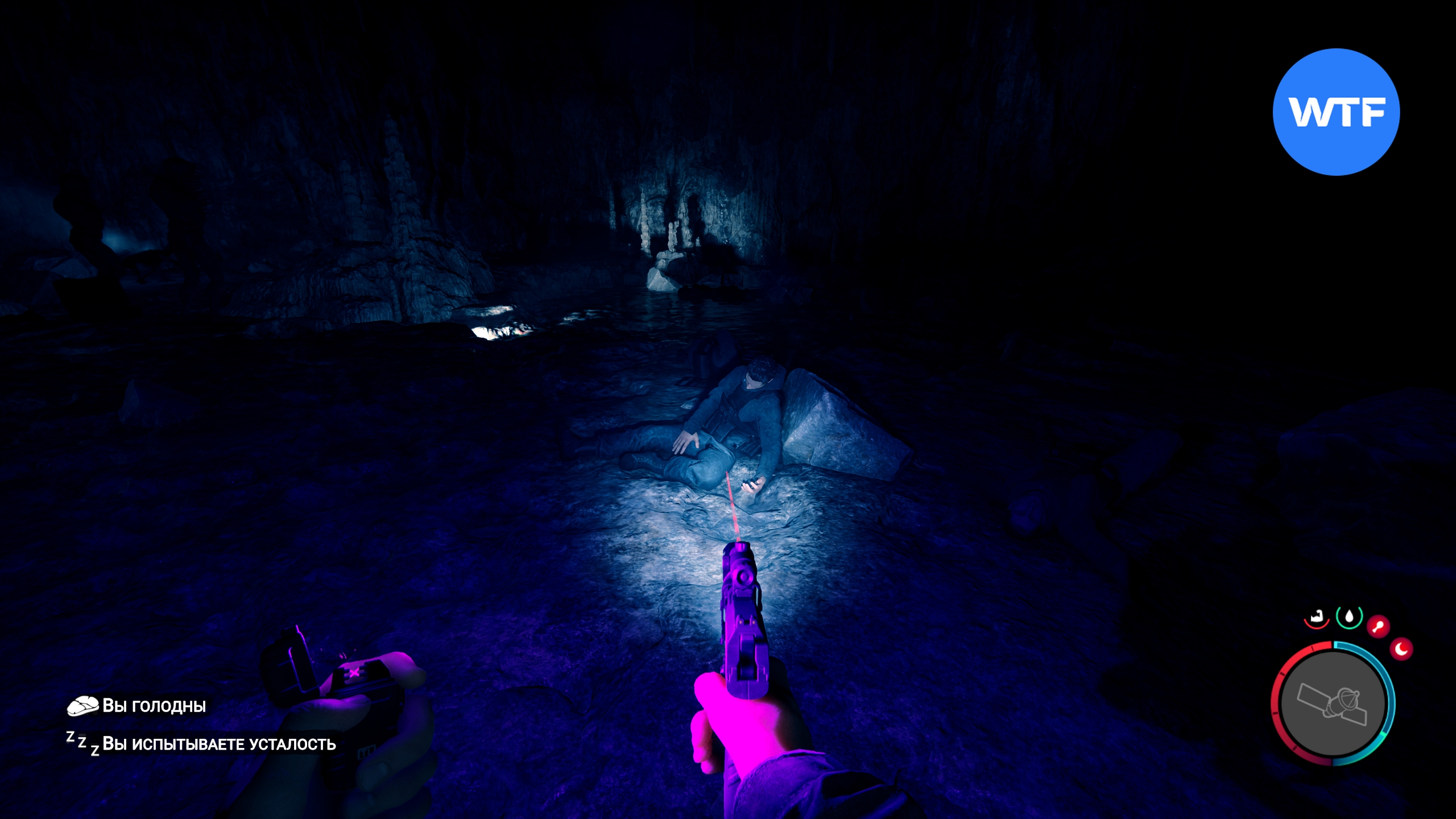 Чтобы прикрепить фонарик к пистолету, вам нужно найти аксессуар для фонарика. Для этого отправляйтесь в ту же самую пещеру, куда мы ходили на поиски лопаты. Точное место показано на GPS-навигаторе ниже.