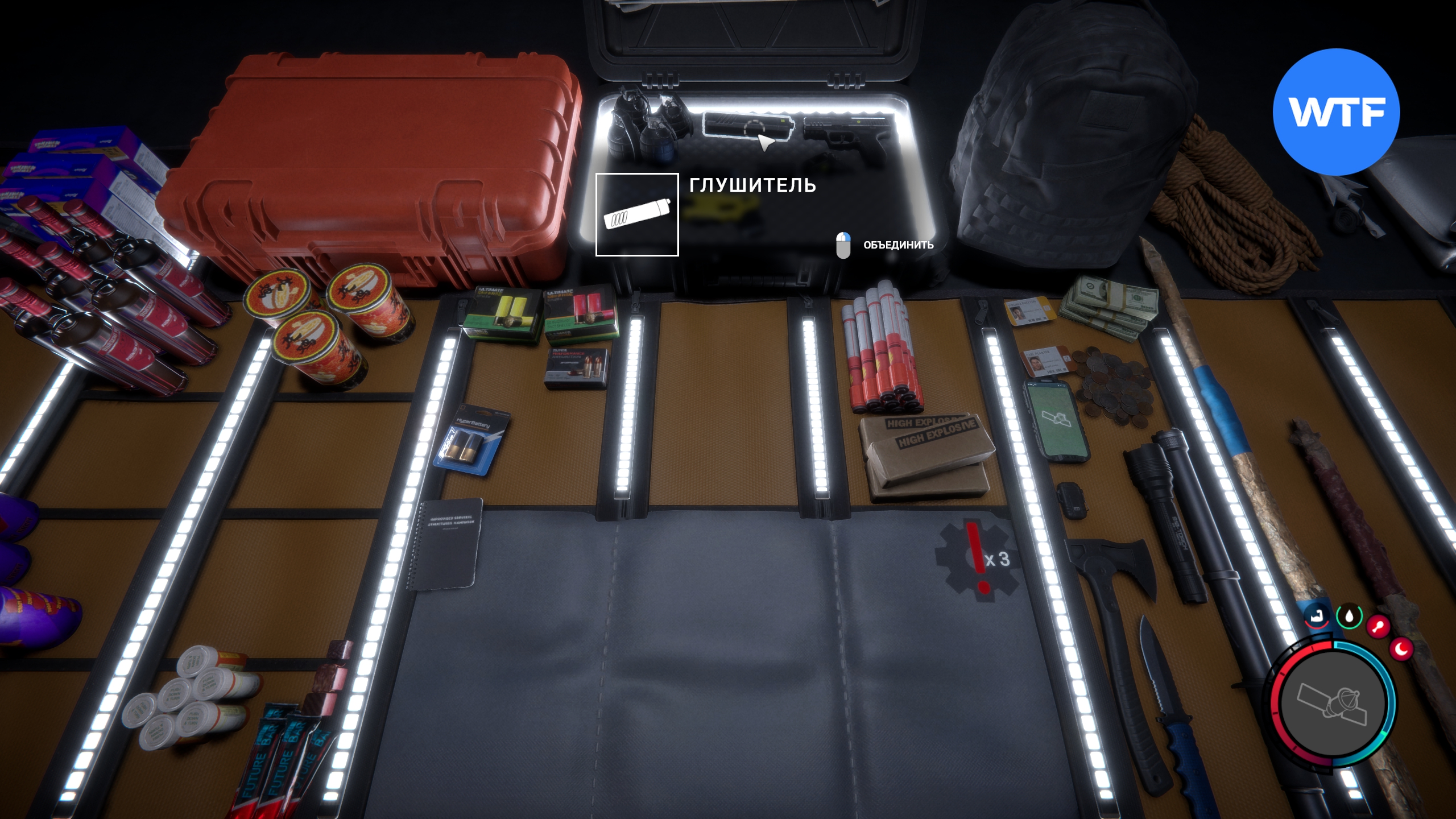 Внутри этого убежища вам надо найти комнату, где стоит 3D-принтер. Глушитель будет лежать прямо возле него. Приятный момент: чтобы поставить глушитель на пистолет, вам не потребуется крепление. Просто откройте инвентарь, с помощью правой кнопкой мыши переместите оба предмета в центр и объедините их.