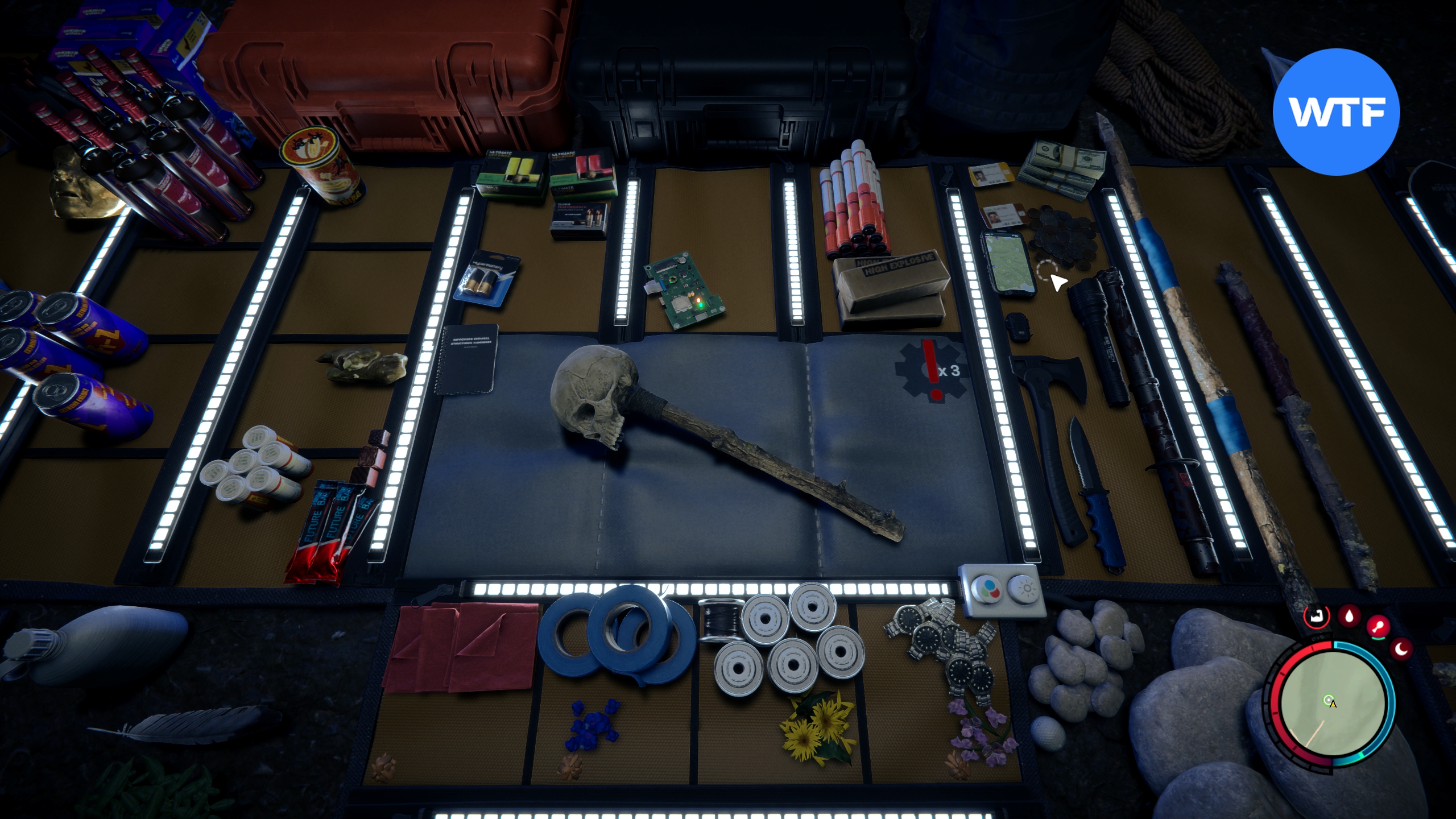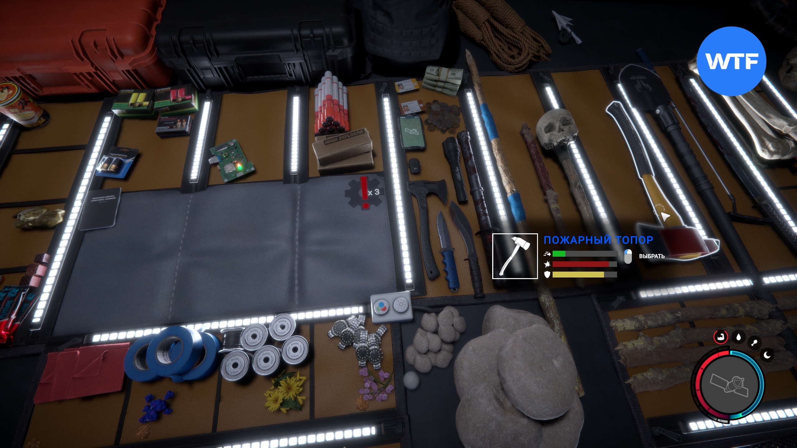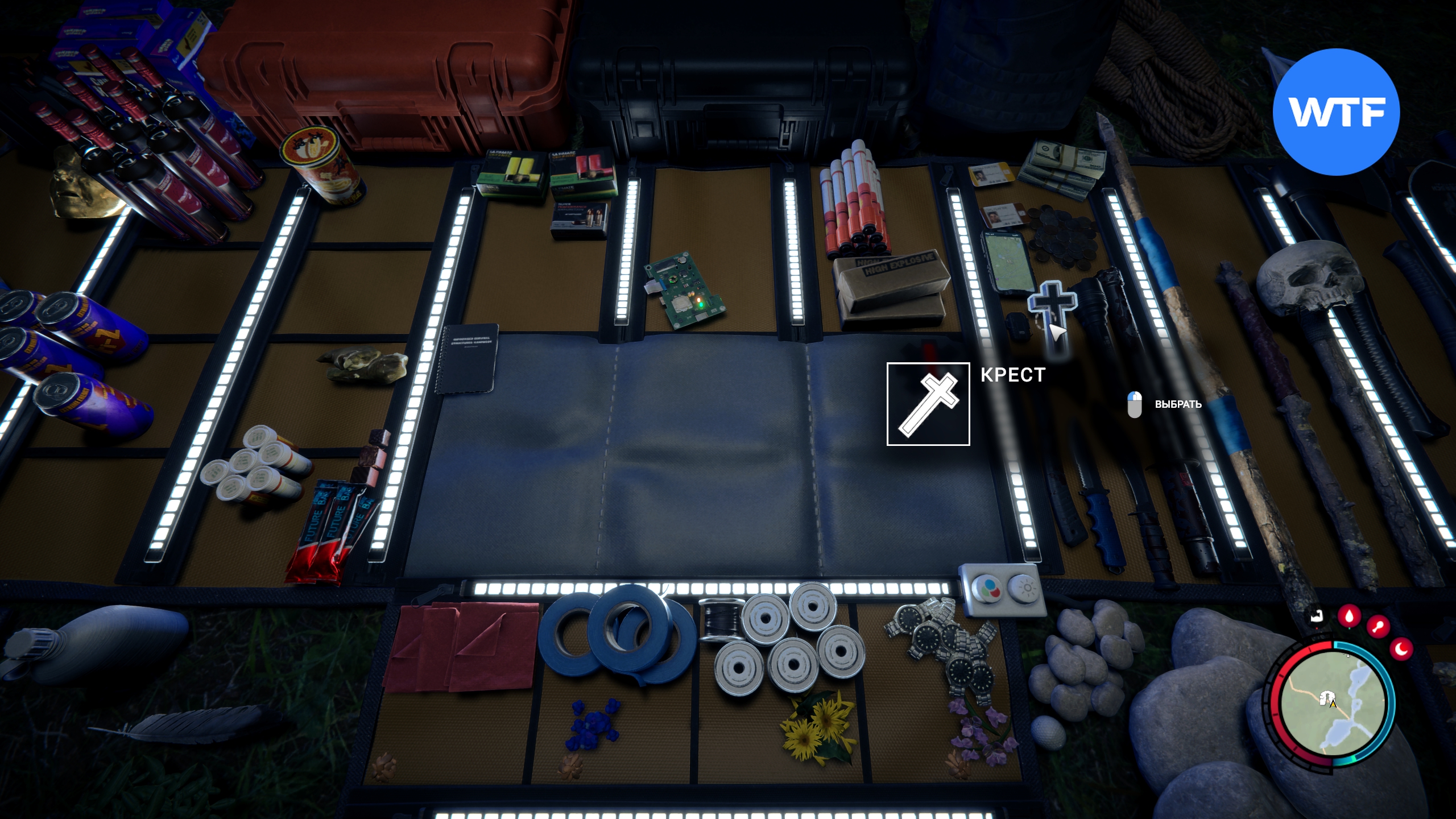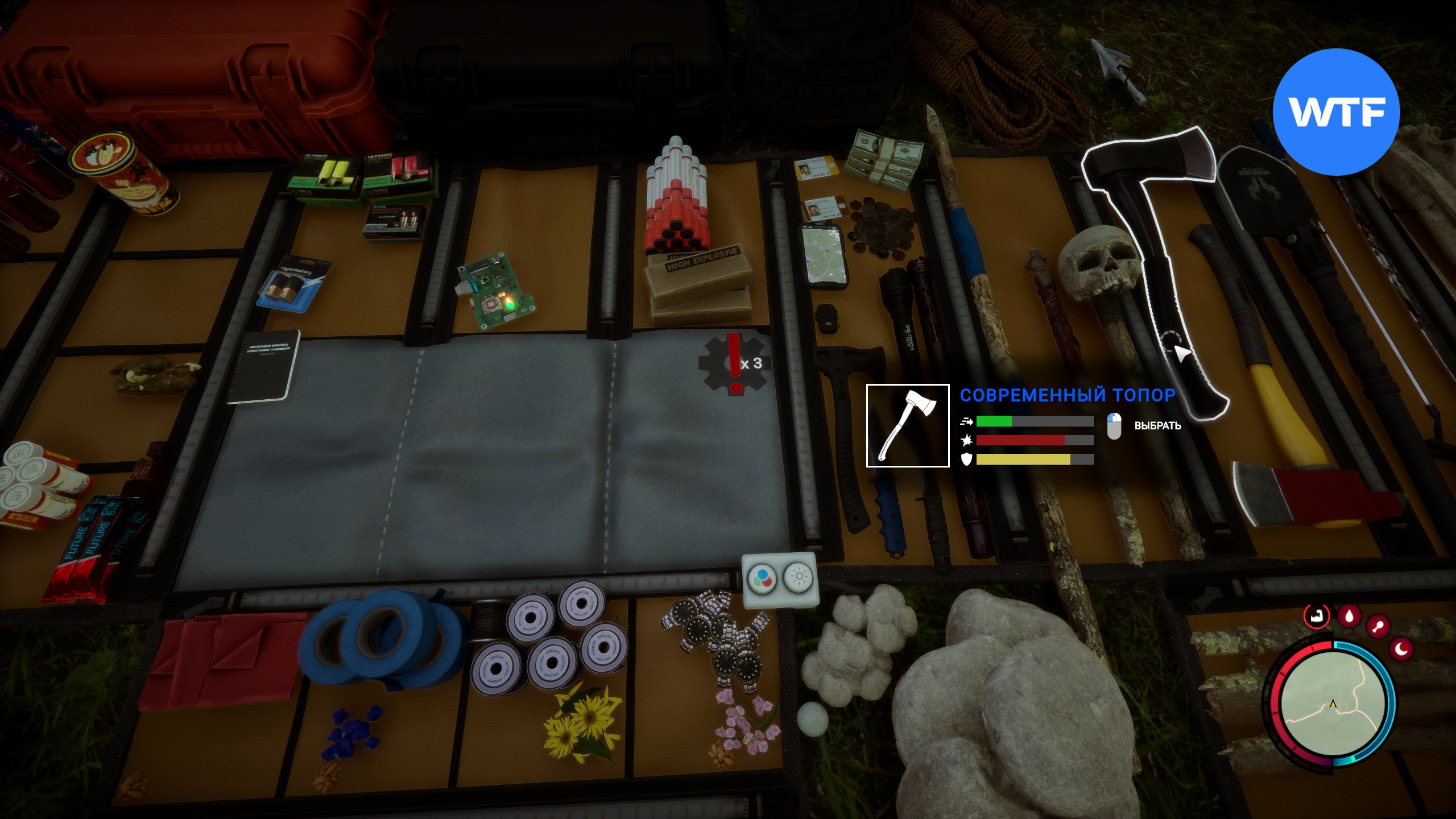 Отправляйтесь к месту, показанному на навигаторе ниже. Здесь вам нужно отыскать небольшой палаточный лагерь. Современный топор будет торчать в одном из тел, валяющихся в лагере. Чтобы быстрее найти это оружие, можно ориентироваться на музыку, играющую в лагере.