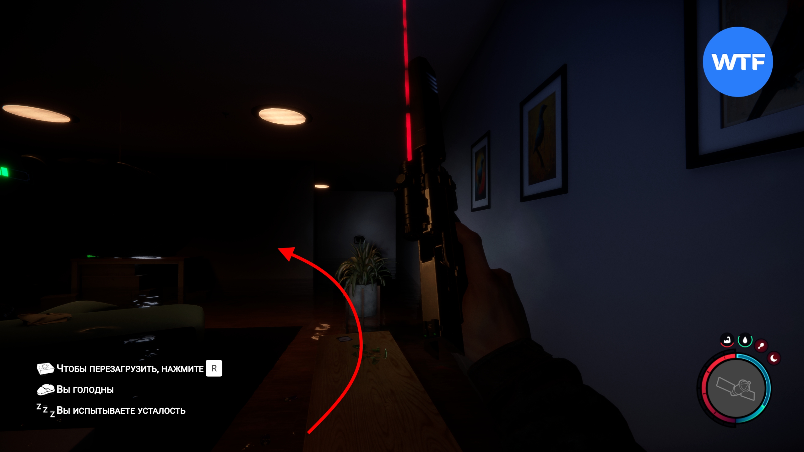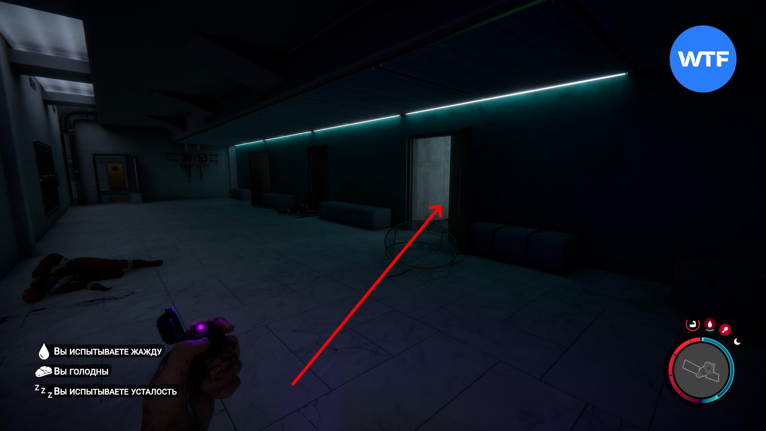Не торопитесь уходить и читайте следующий пункт: в этой локации можно взять еще одно оружие. Но перед этим заберите гостевую ключ-карту здесь же в баре, со столика справа от красной вывески Night Club в конце зала.