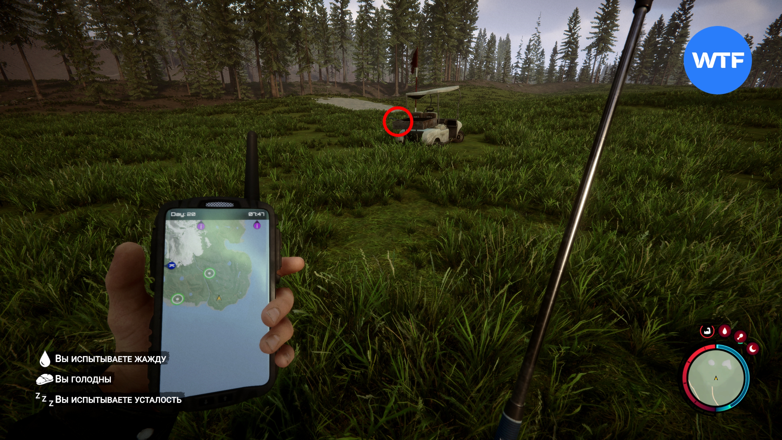 В Sons Of The Forest есть несколько мест, где можно найти клюшки для гольфа. Проще всего забрать это оружие с машинок на гольф-полях. Ниже на GPS-трекерах показаны два места (по два скриншота на каждое).