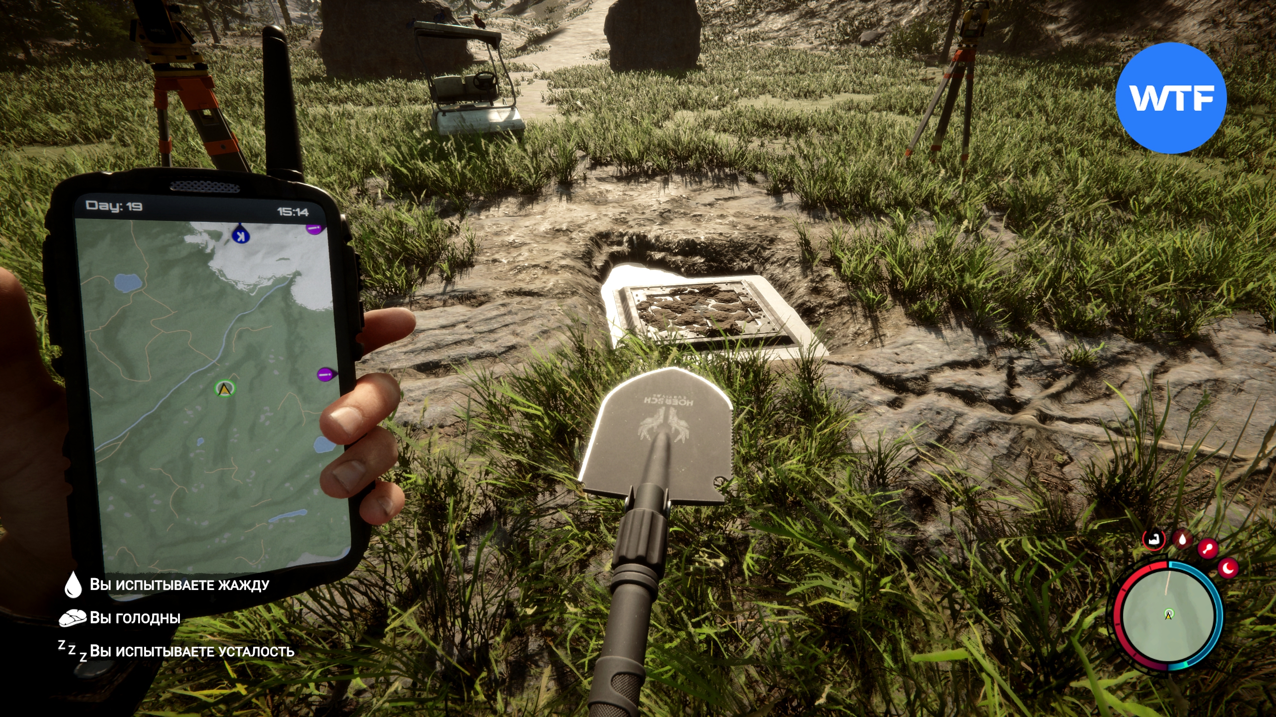 Чтобы получить револьвер, прихватите лопату и отправляйтесь раскапывать вход в недостроенное убежище С, показанное на GPS-трекере ниже. Внутри вы найдете единственную комнату с трупом рабочего посреди неё. Револьвер лежит возле тела.