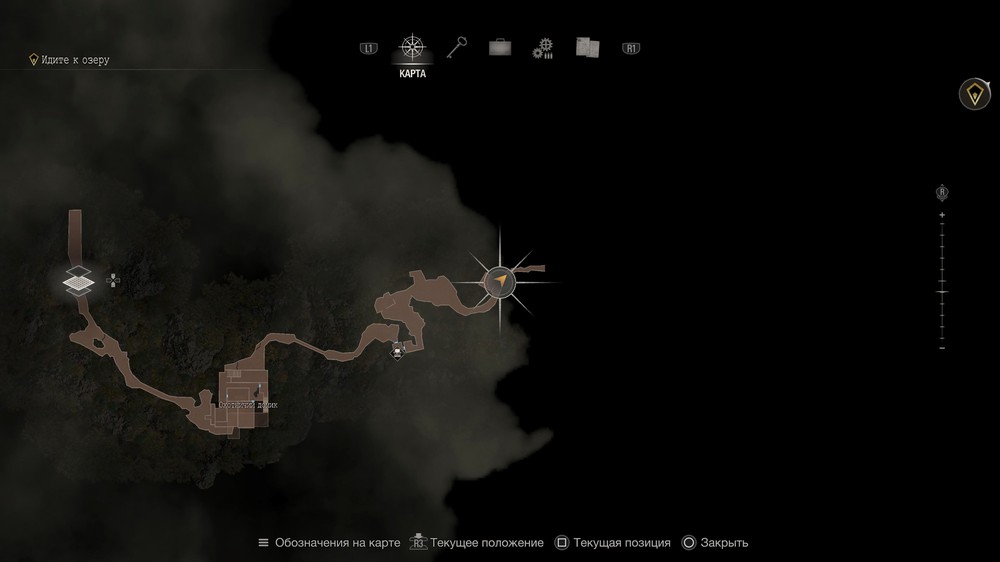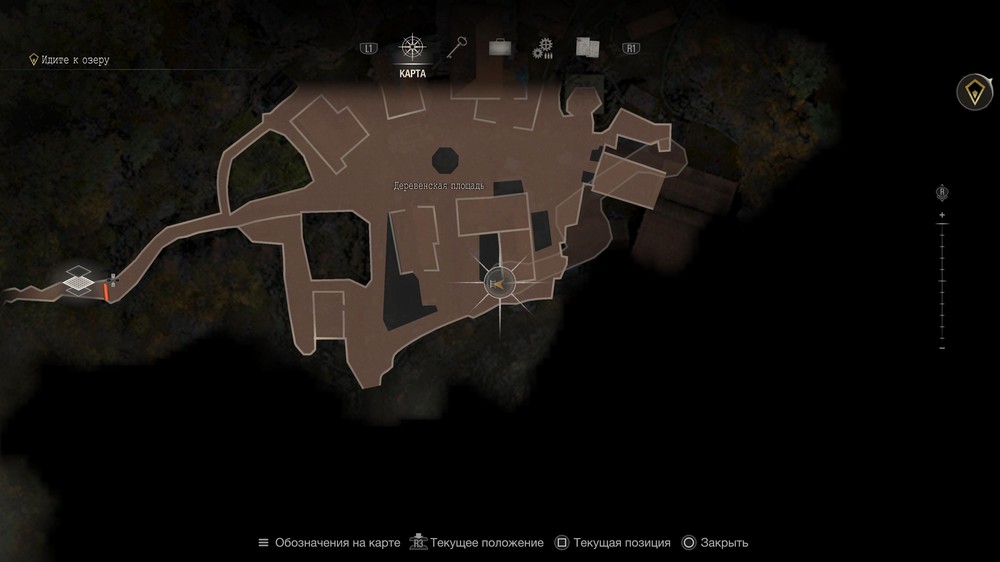 В деревне вам нужно добраться незамеченным до точки, отмеченной на карте ниже. Дождитесь, пока мимо вас пройдет бабка, а затем аккуратно прокрадитесь вперед. Ничего не подбирайте по пути, это важно.