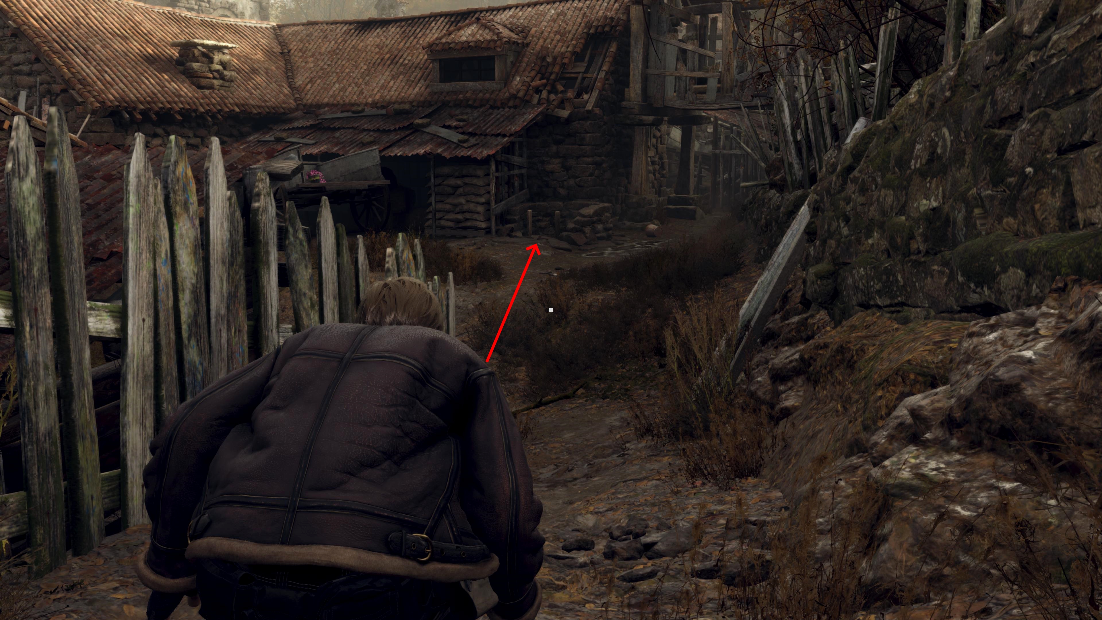 После побега из охотничьего домика доберитесь до точки сохранения с печатной машинкой. Продолжайте идти вперед и разберитесь с тремя мужчинами, которые набросятся на вас из домов рядом.
