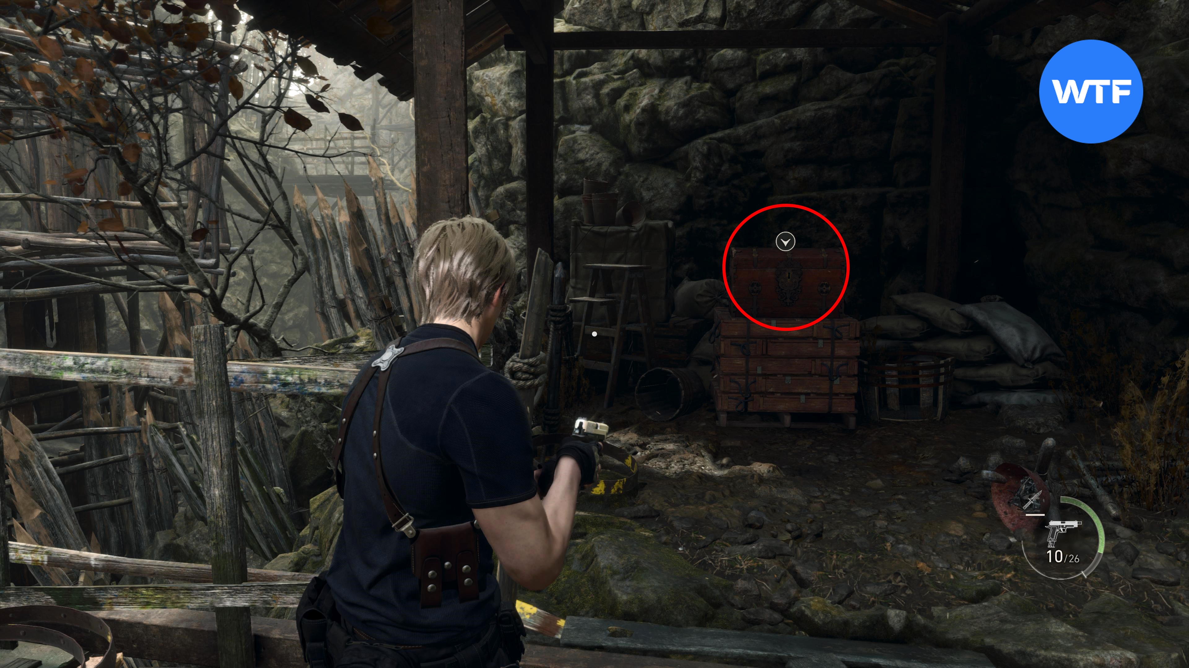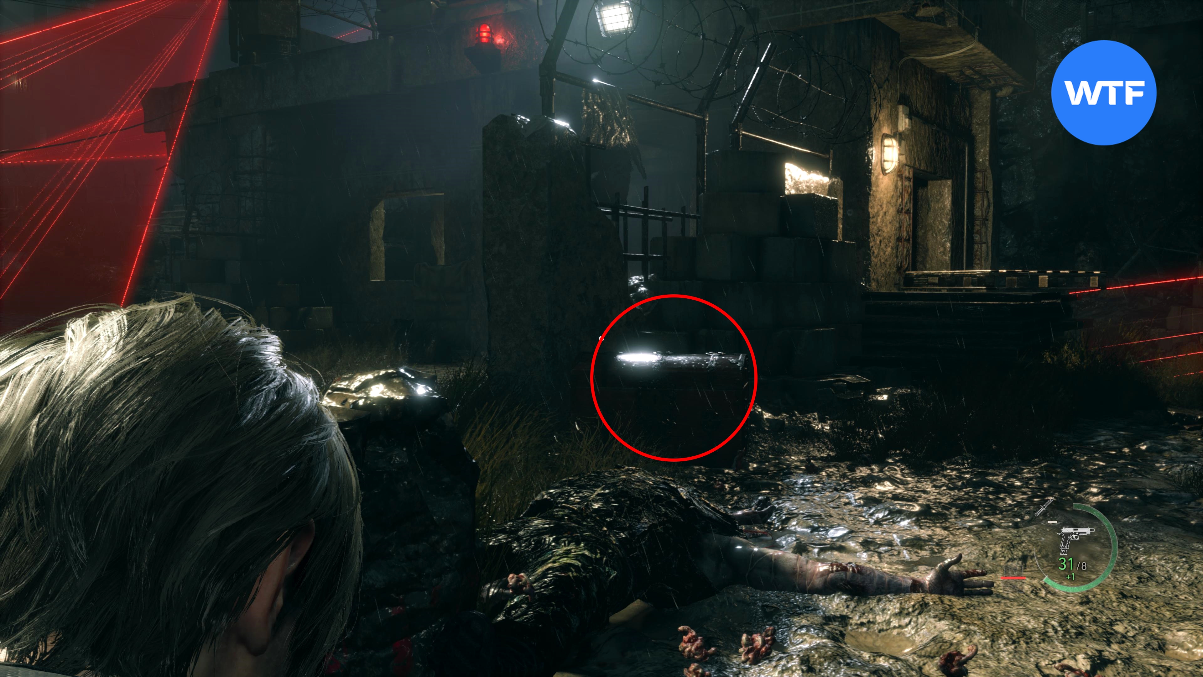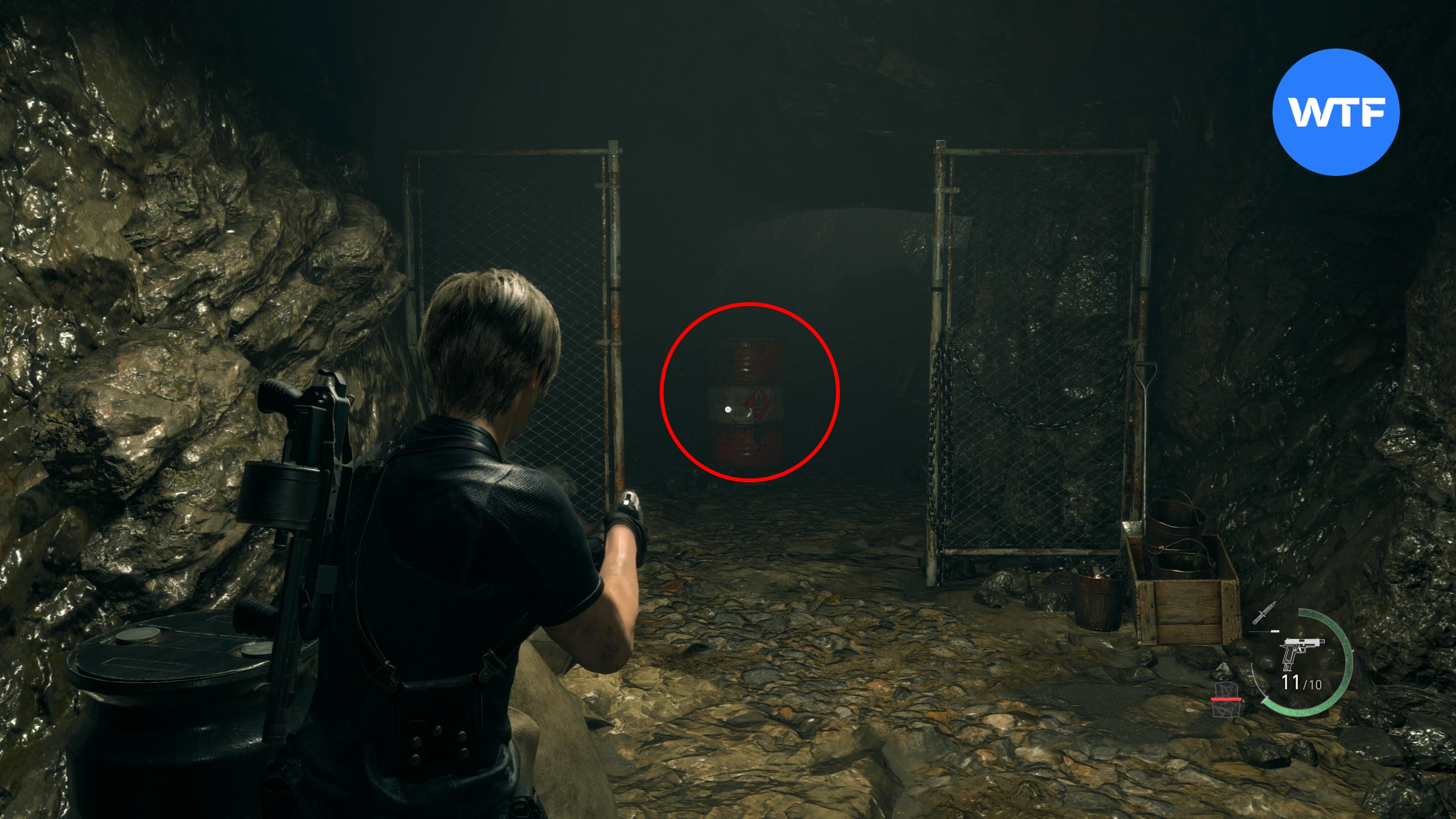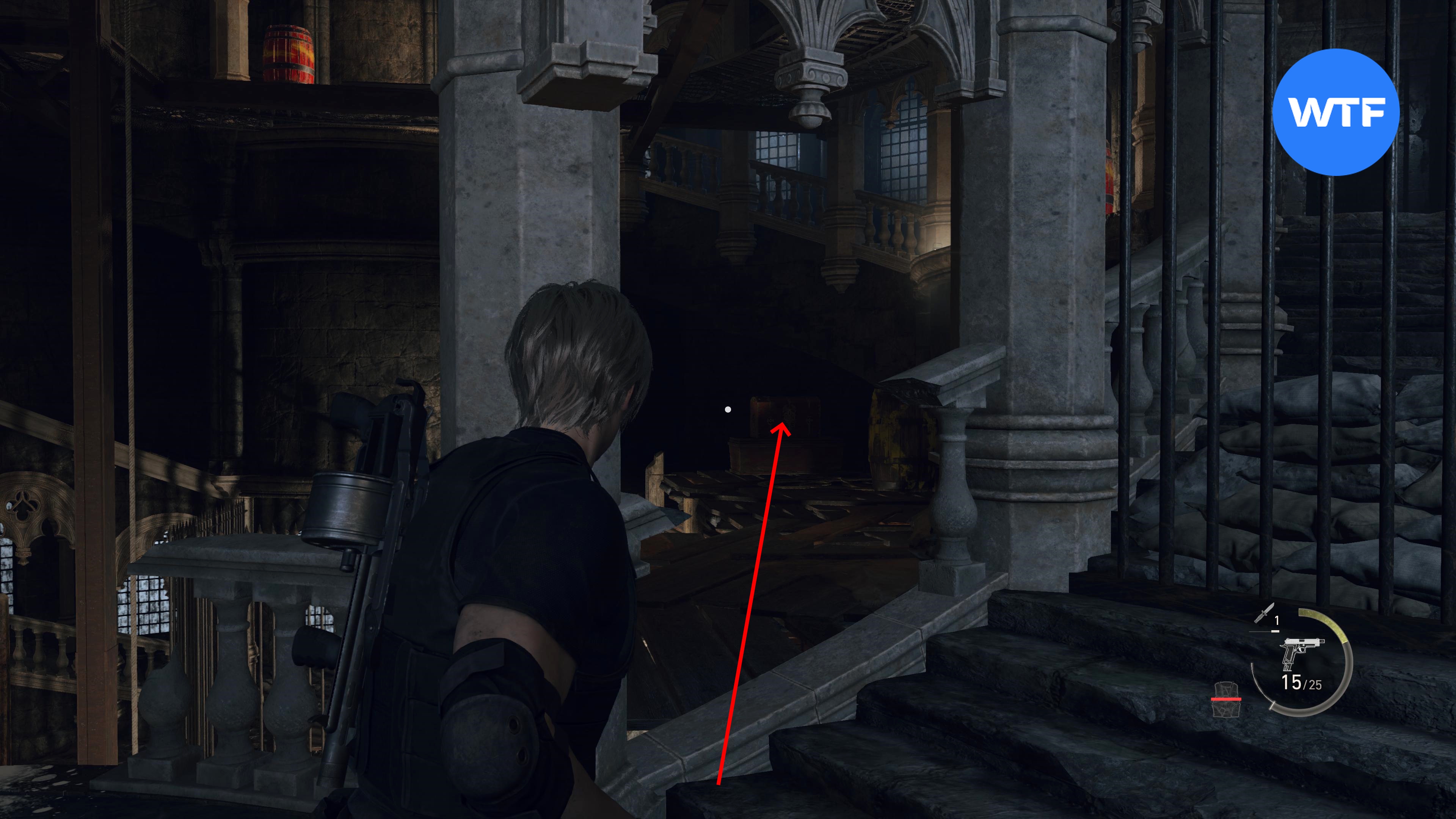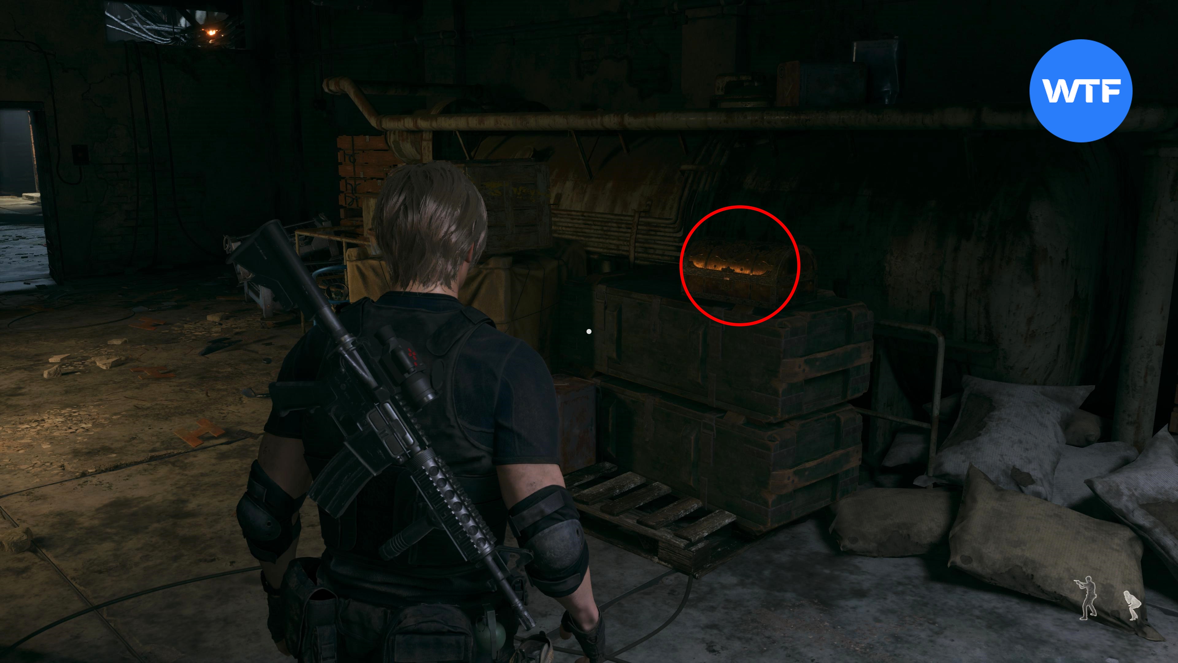 В следующей большой области с врагами, где вы впервые встречаете противника с ракетницей, залезьте в окно ближайшего к лестнице дома и идите обратно в туннели. Там вы увидите бочку, которую можно взорвать (см. скриншоты 2-3). Сделайте это и откроется проход к сундуку.