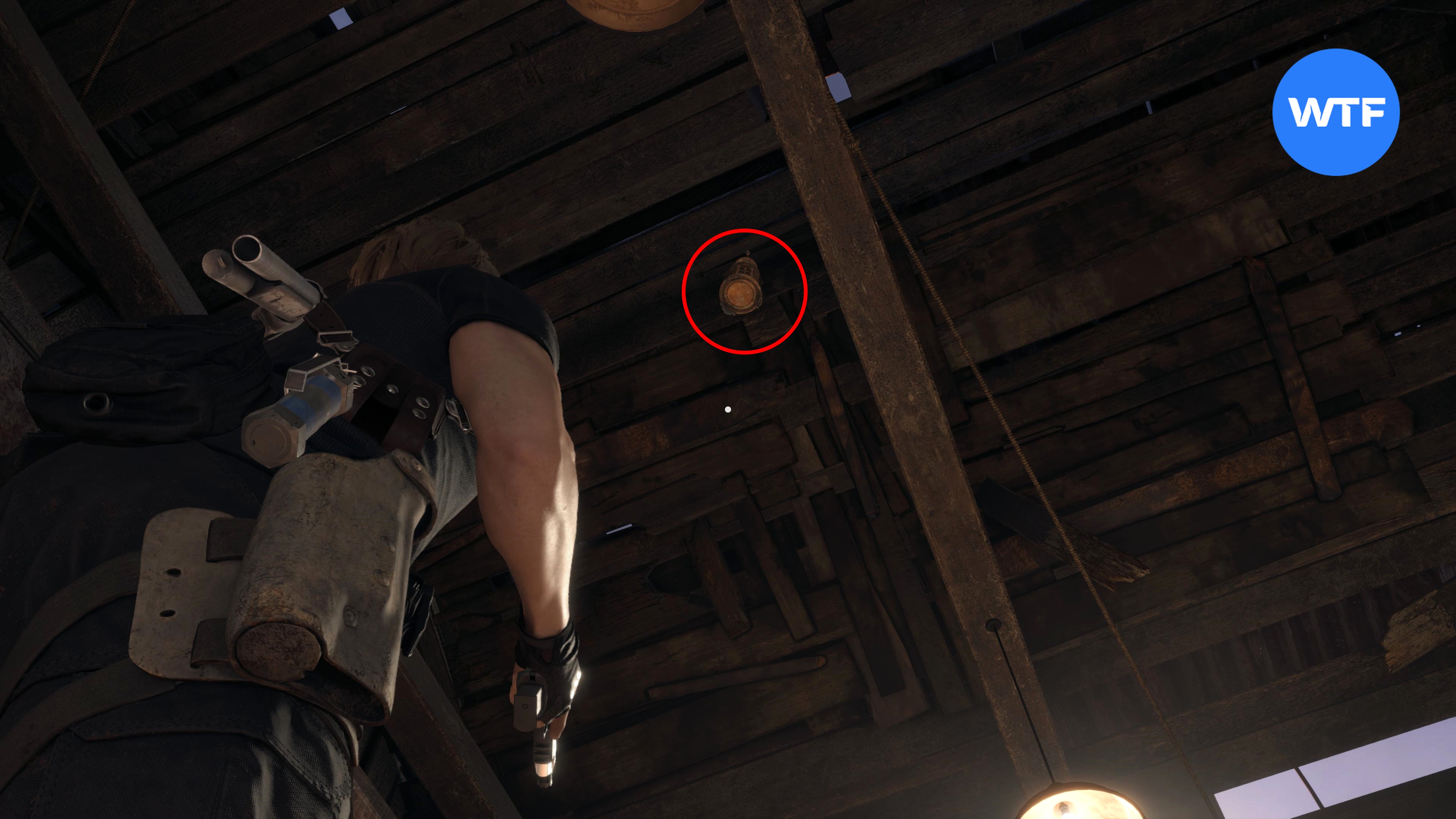 После выхода из комнаты с торговцем и печатной машинкой колокольчик с этим сокровищем будет висеть высоко над вами. Его может быть трудно заметить, поэтому ориентируйтесь на скриншот 2.