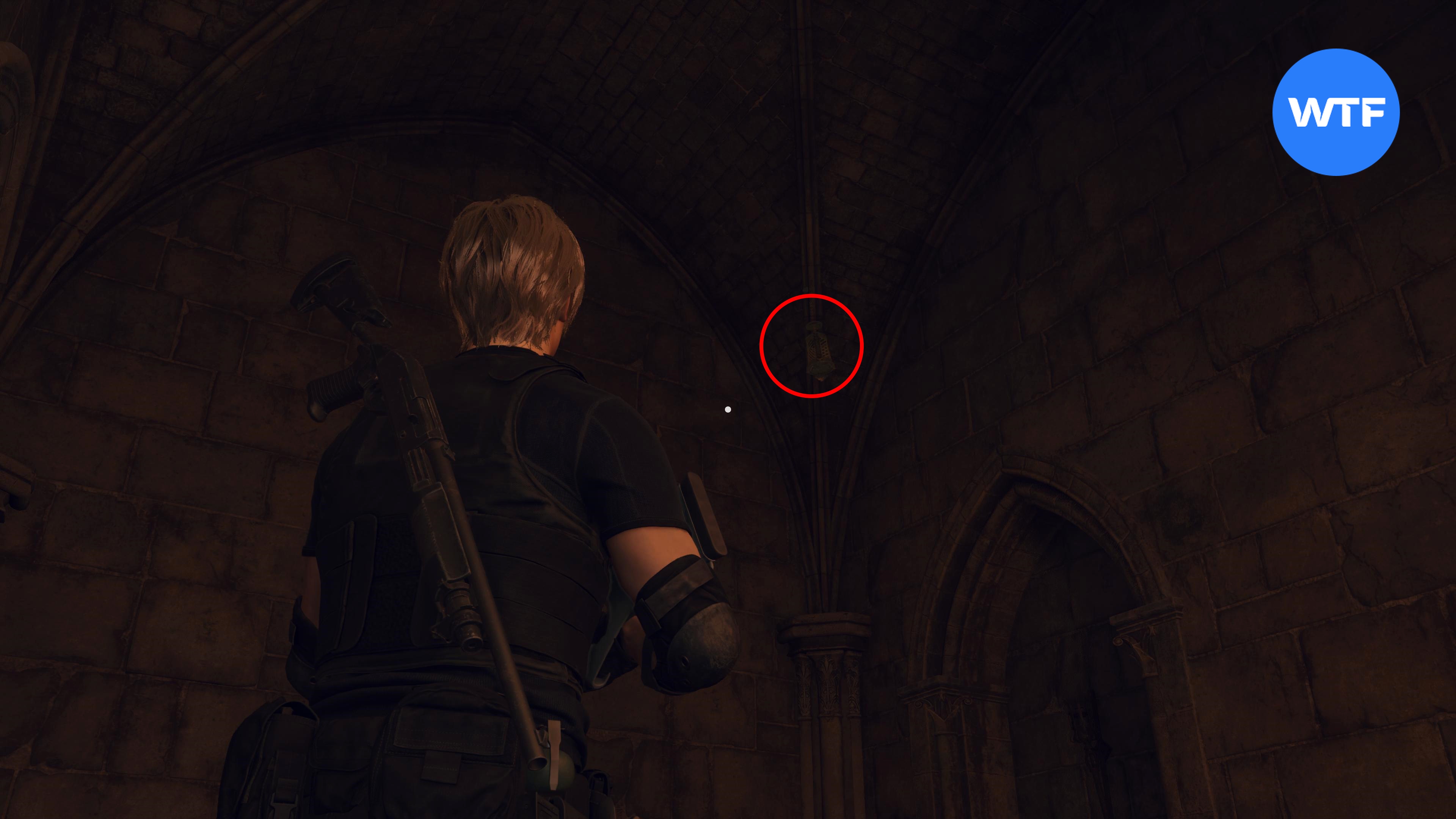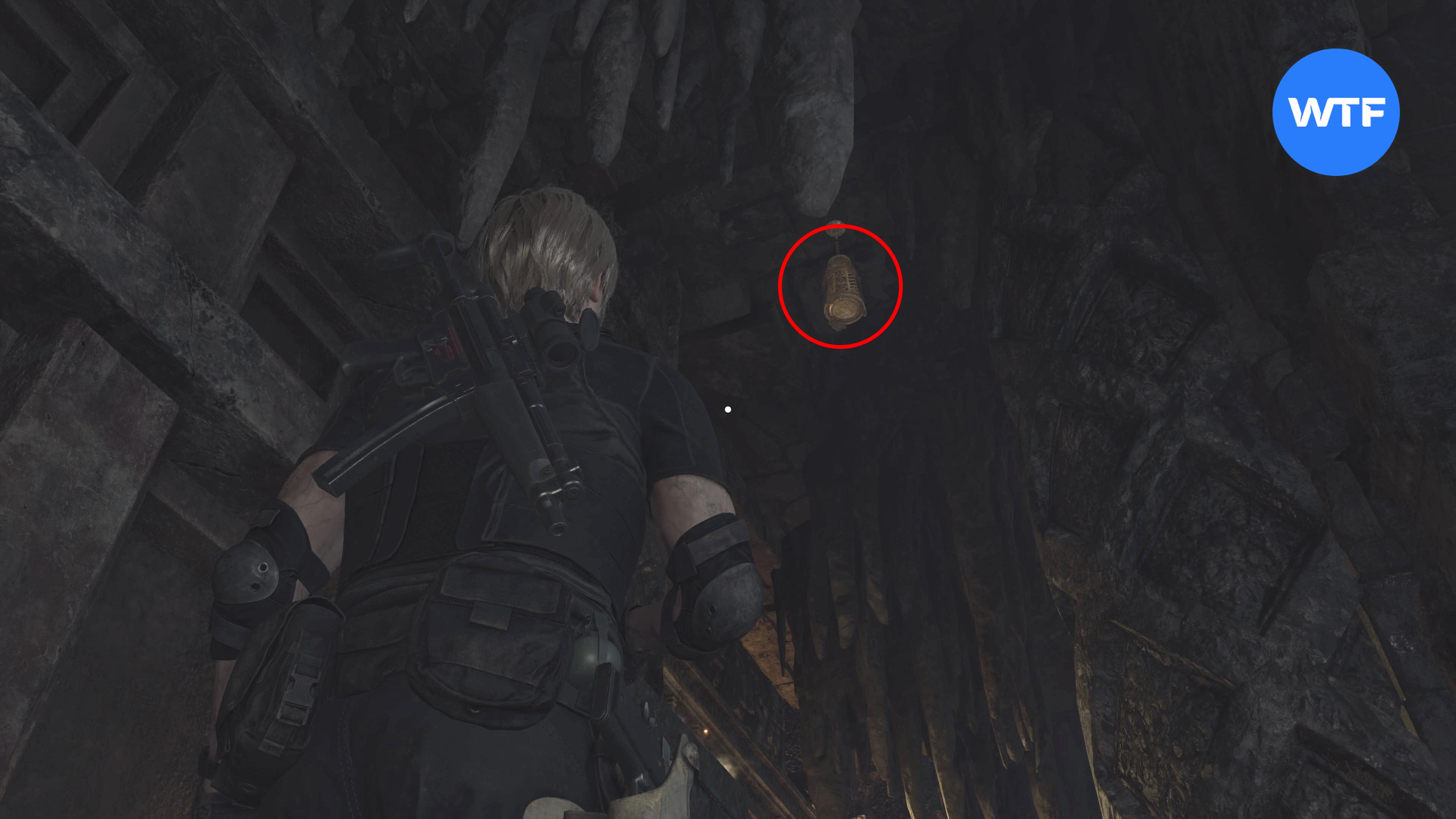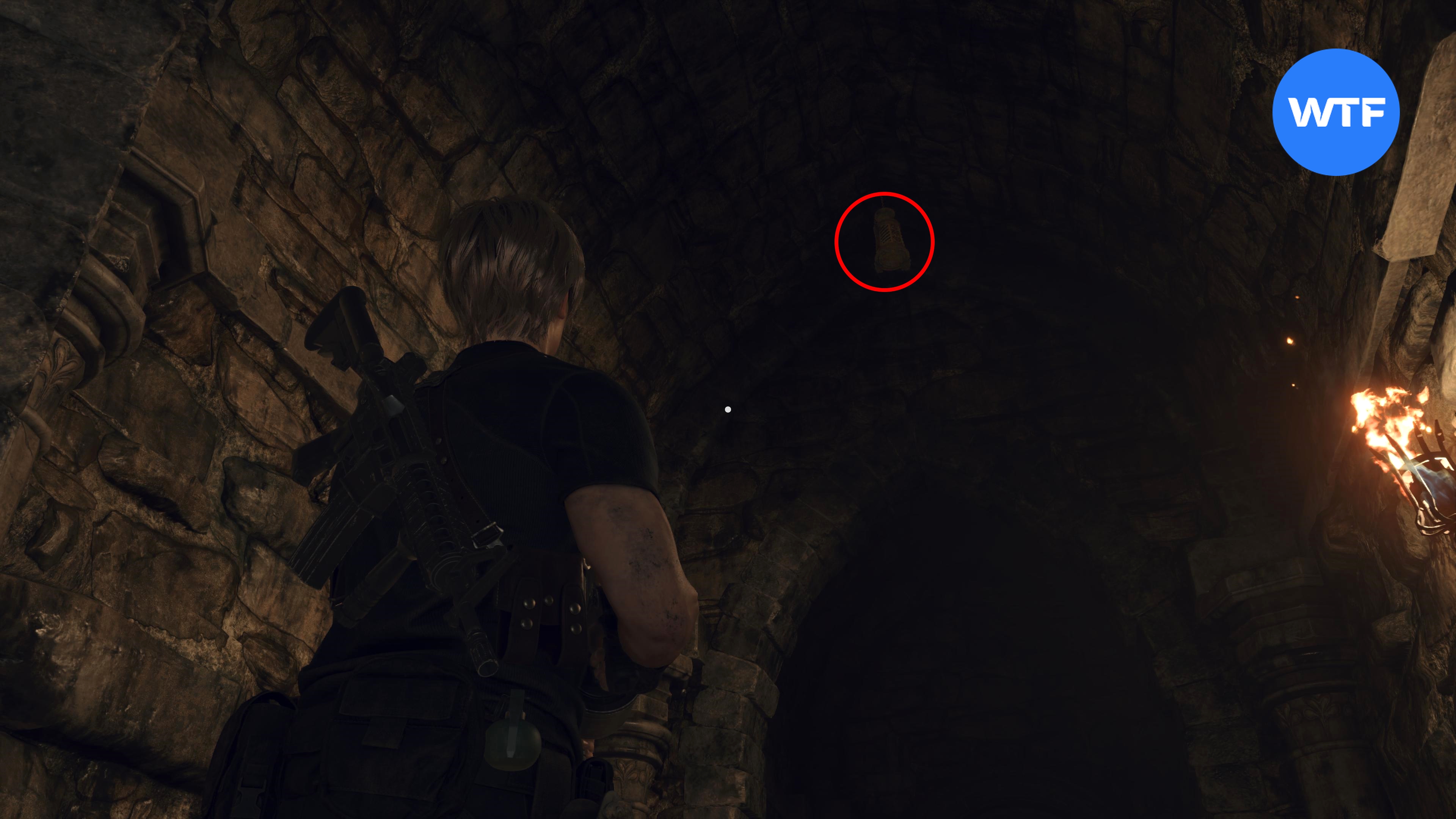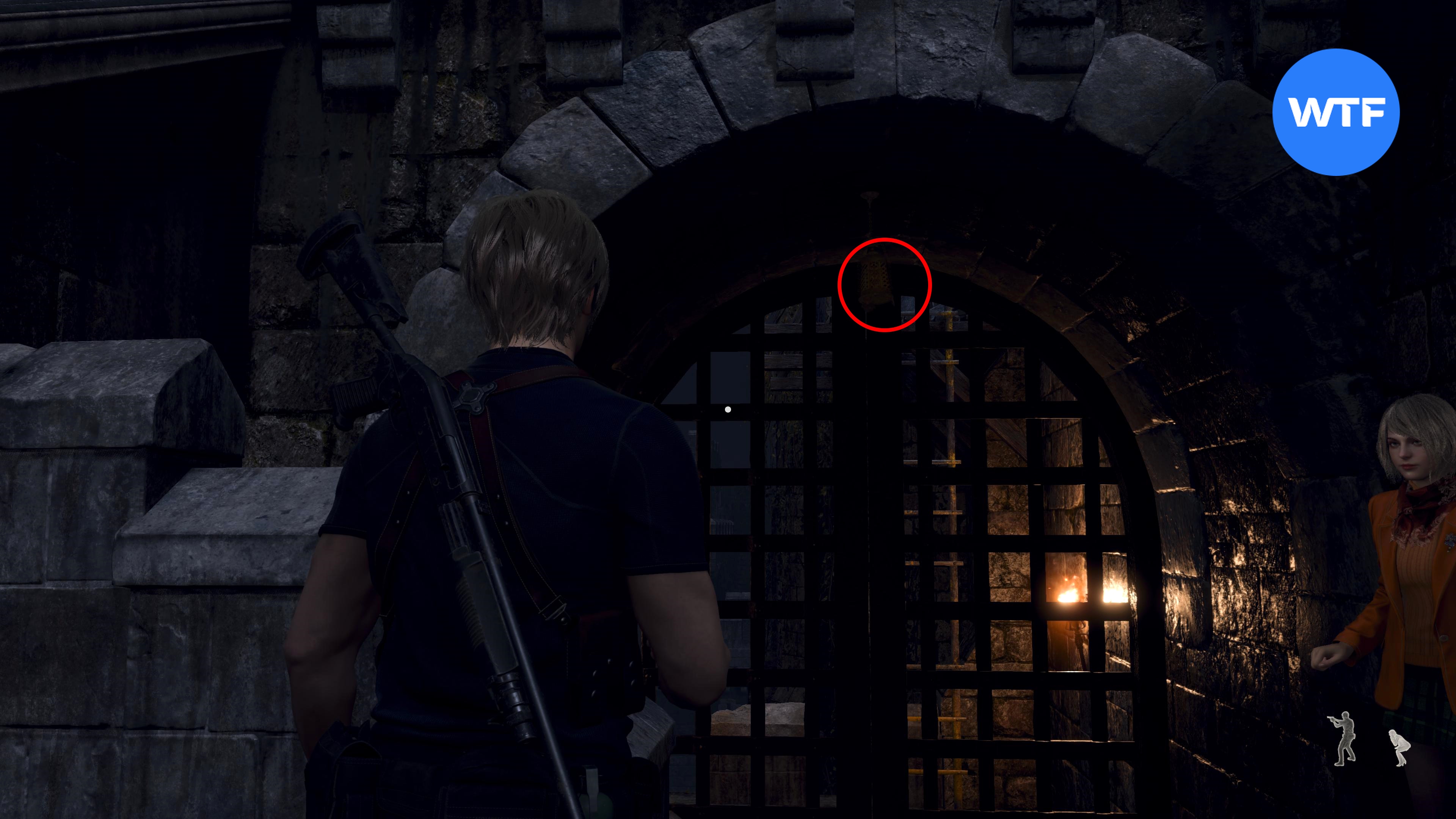 Пройдите через дверь в конце Грузового склада и идите по коридору во второй комплекс. Пройдите вперед и посмотрите наверх, чтобы заметить этот колокольчик. Это между рычагом и дверью, которую для вас открывает Эшли.