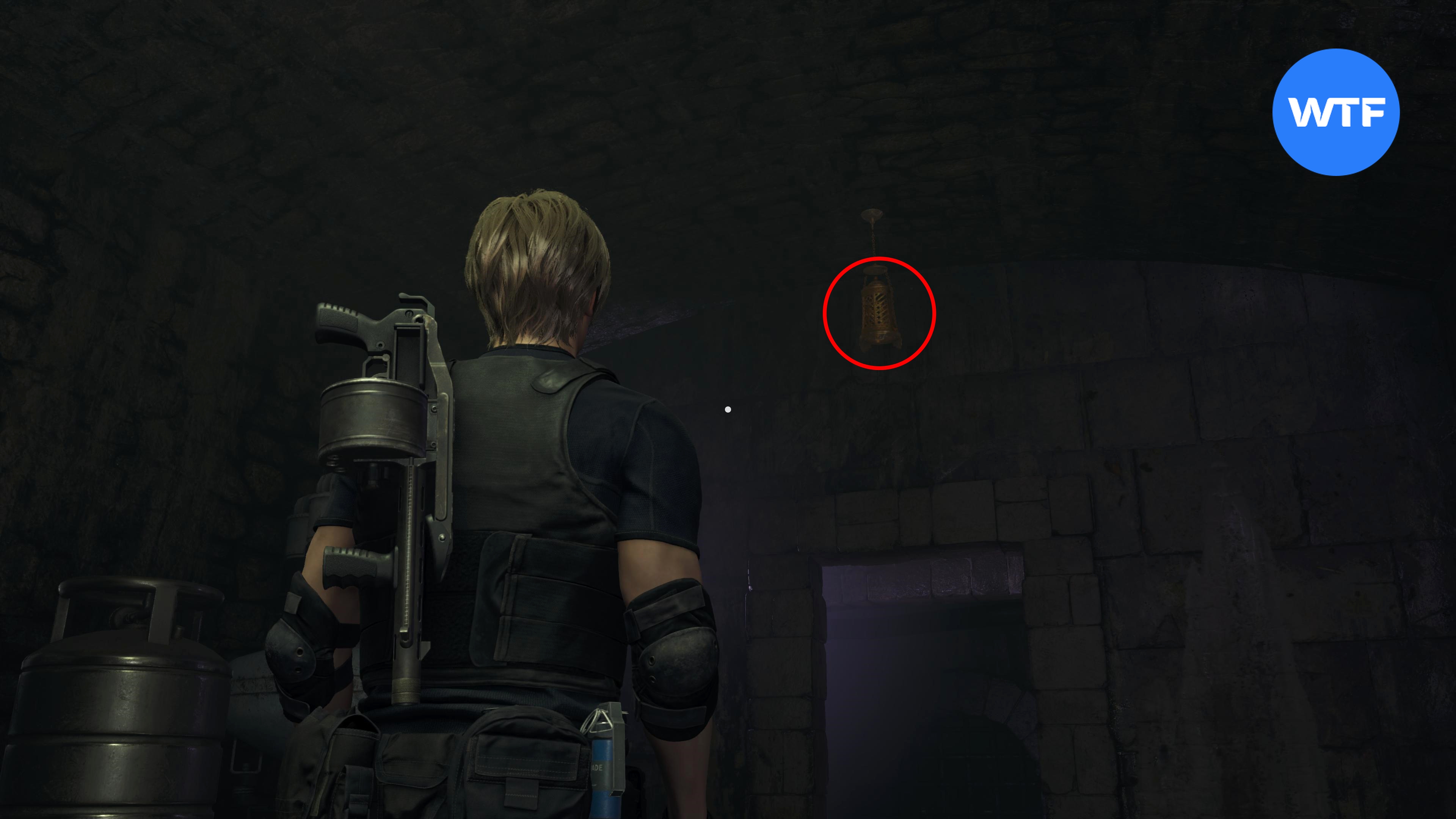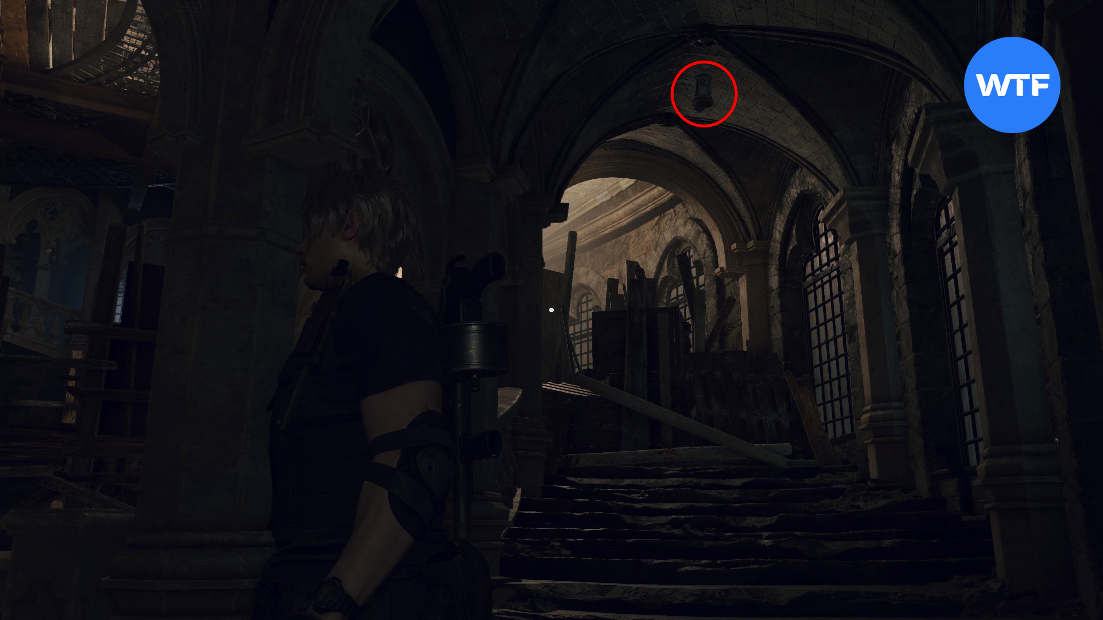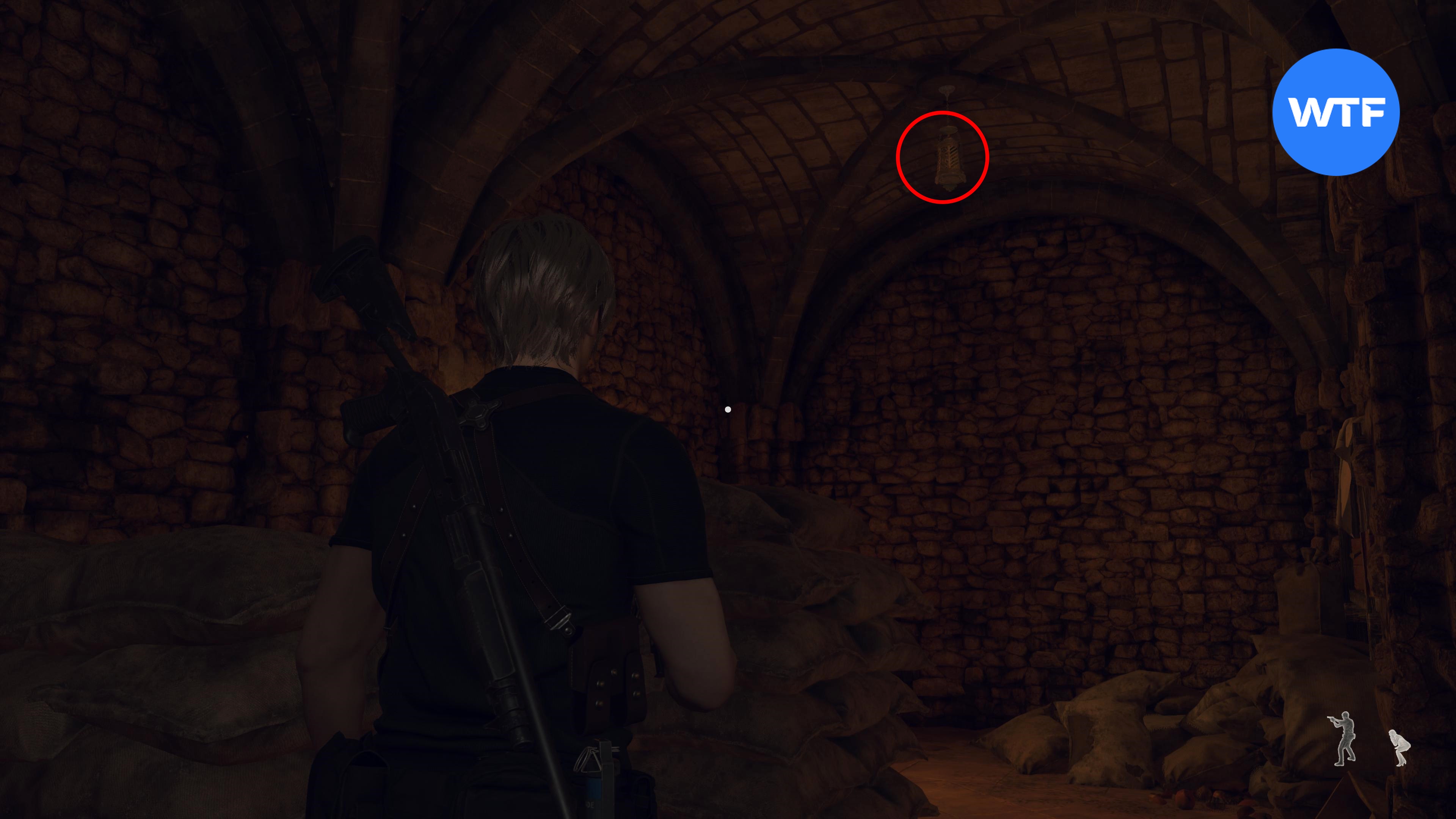 Пройдите через дверь в конце Грузового склада и идите по коридору во второй комплекс. Пройдите вперед и посмотрите наверх, чтобы заметить этот колокольчик. Это между рычагом и дверью, которую для вас открывает Эшли.