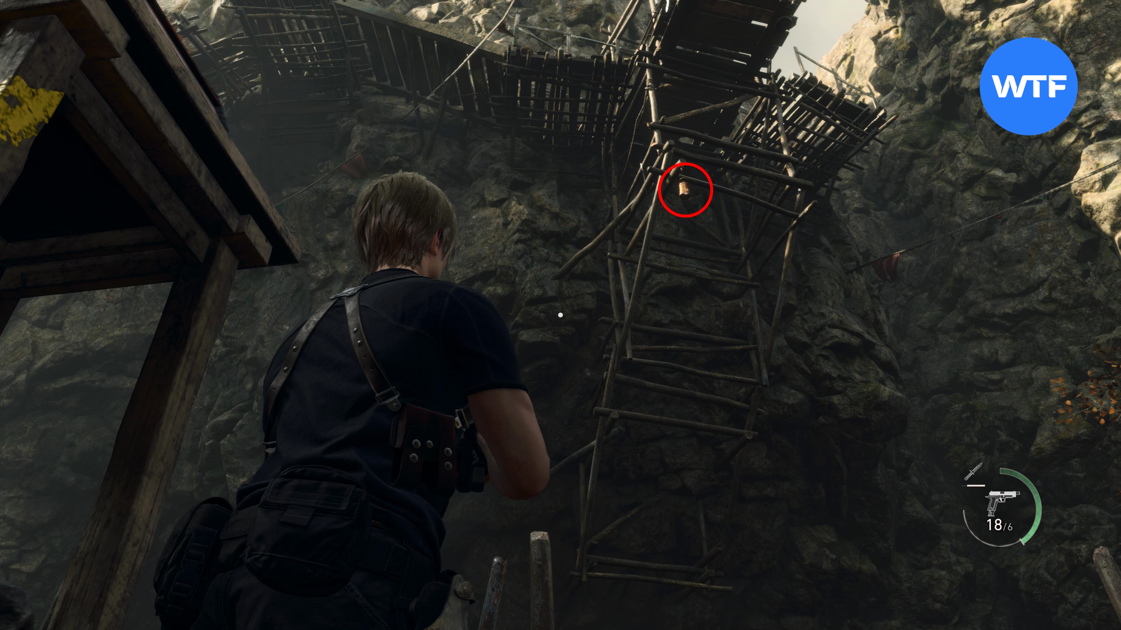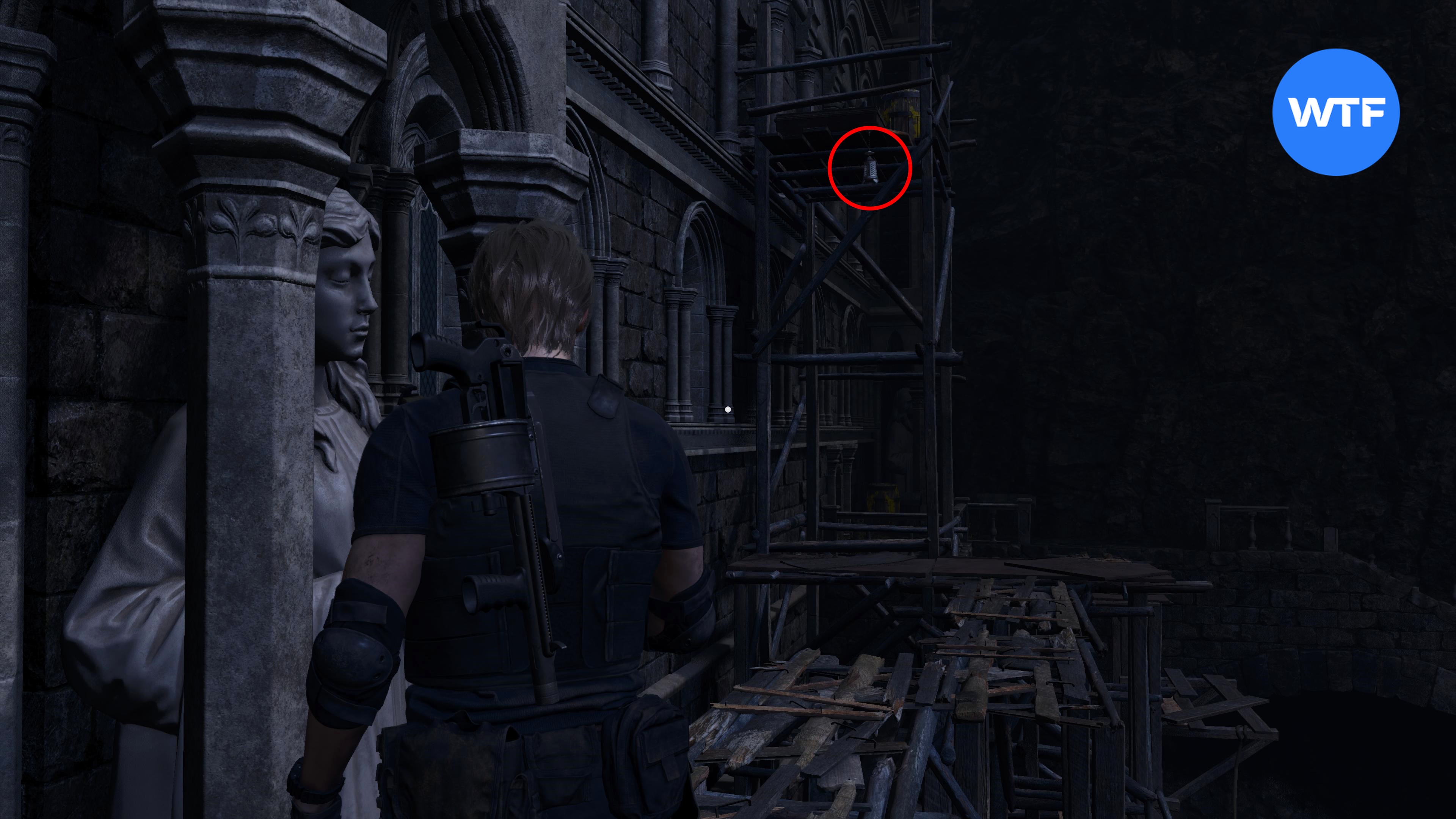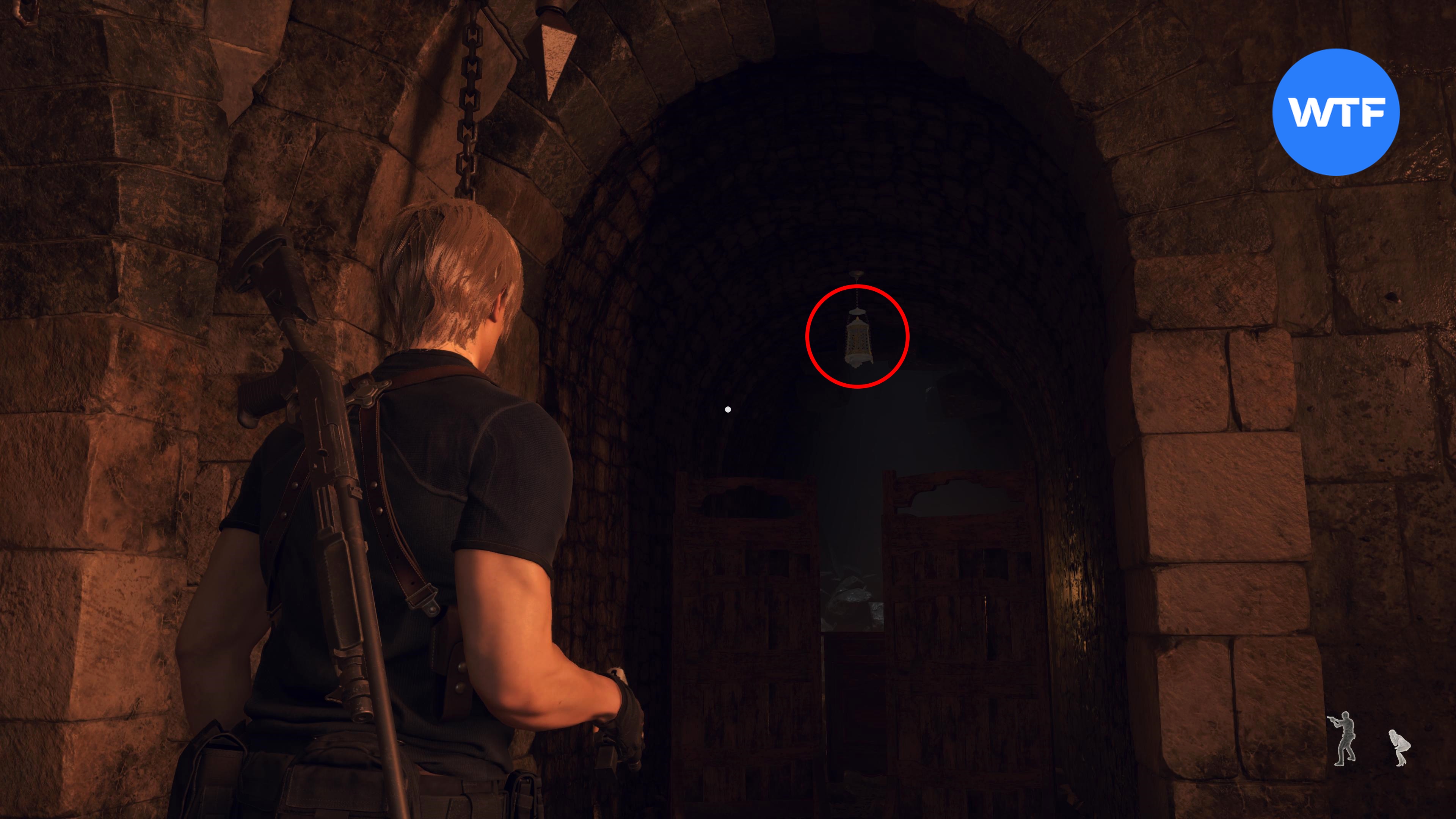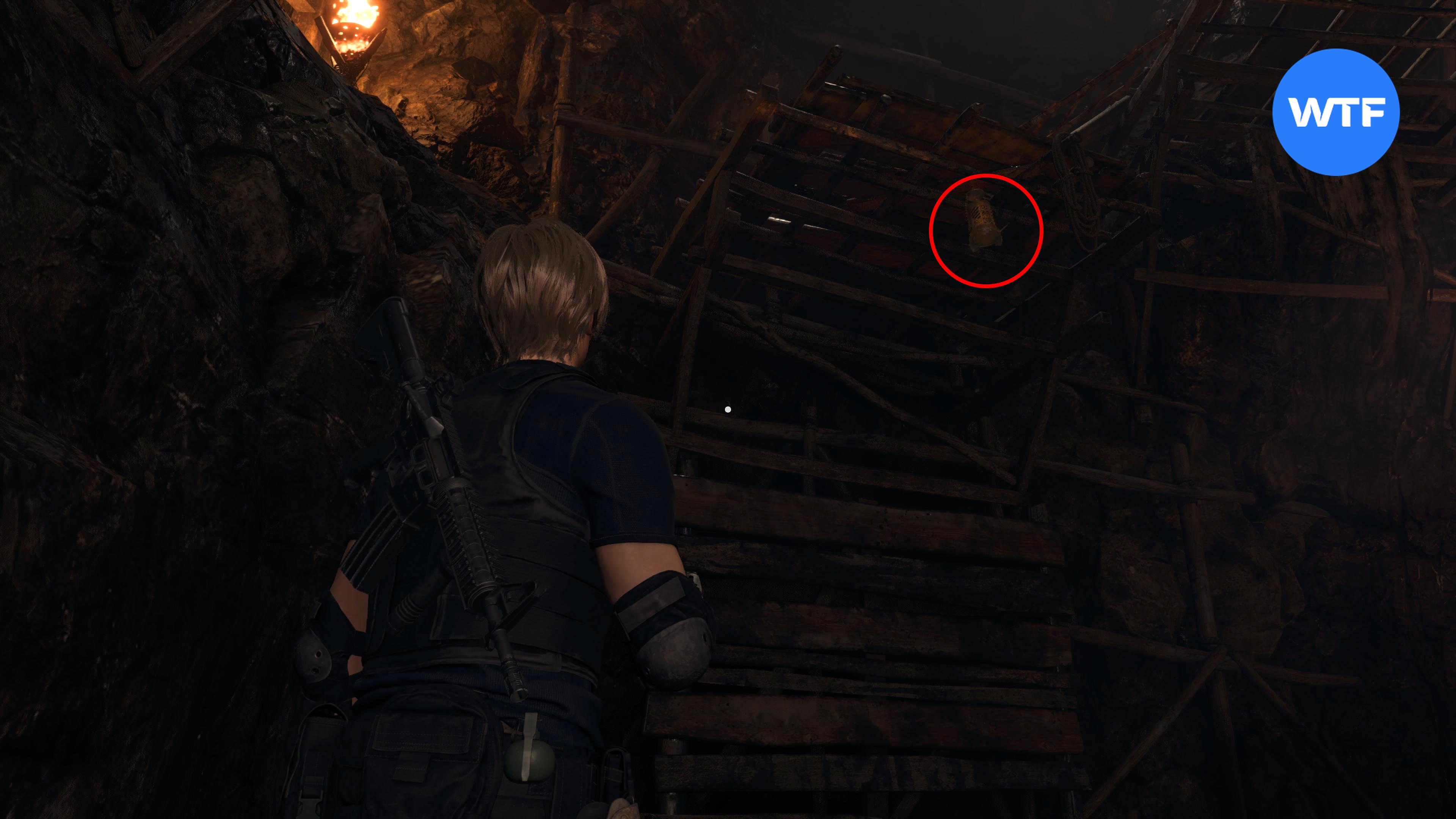 Пройдите через дверь в конце Грузового склада и идите по коридору во второй комплекс. Пройдите вперед и посмотрите наверх, чтобы заметить этот колокольчик. Это между рычагом и дверью, которую для вас открывает Эшли.