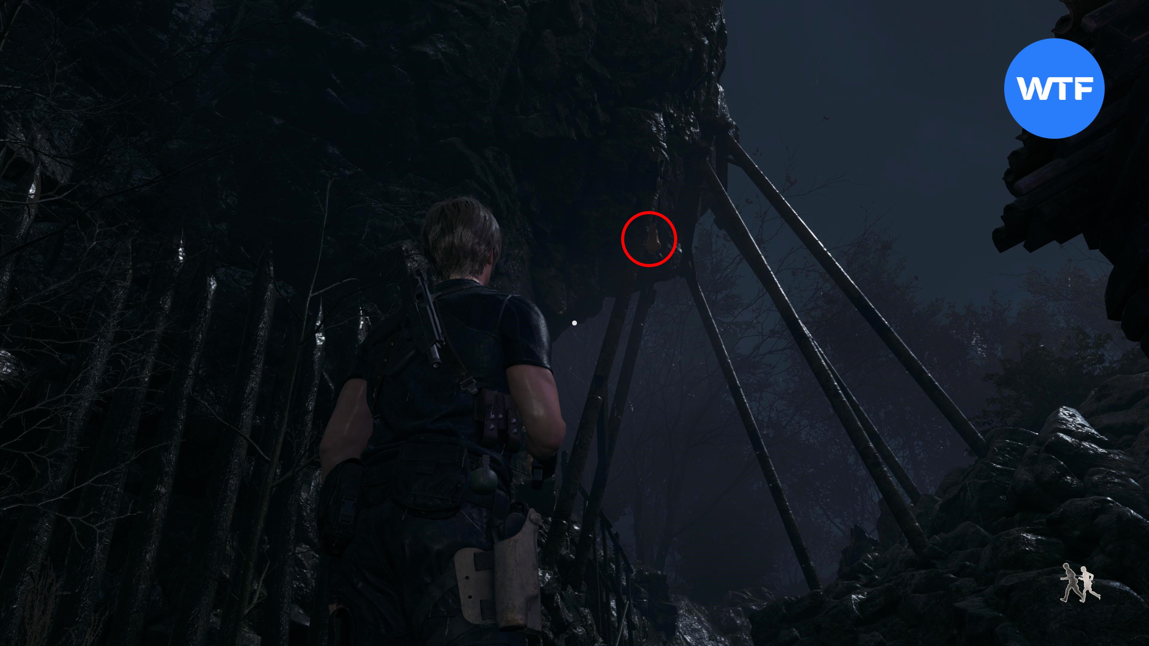 Продолжайте идти вперед, пока не доберетесь до места, показанного на карте ниже. Колокольчик с сокровищем будет висеть на строительных лесах. По доскам стоит идти аккуратно, иначе они могут провалиться.