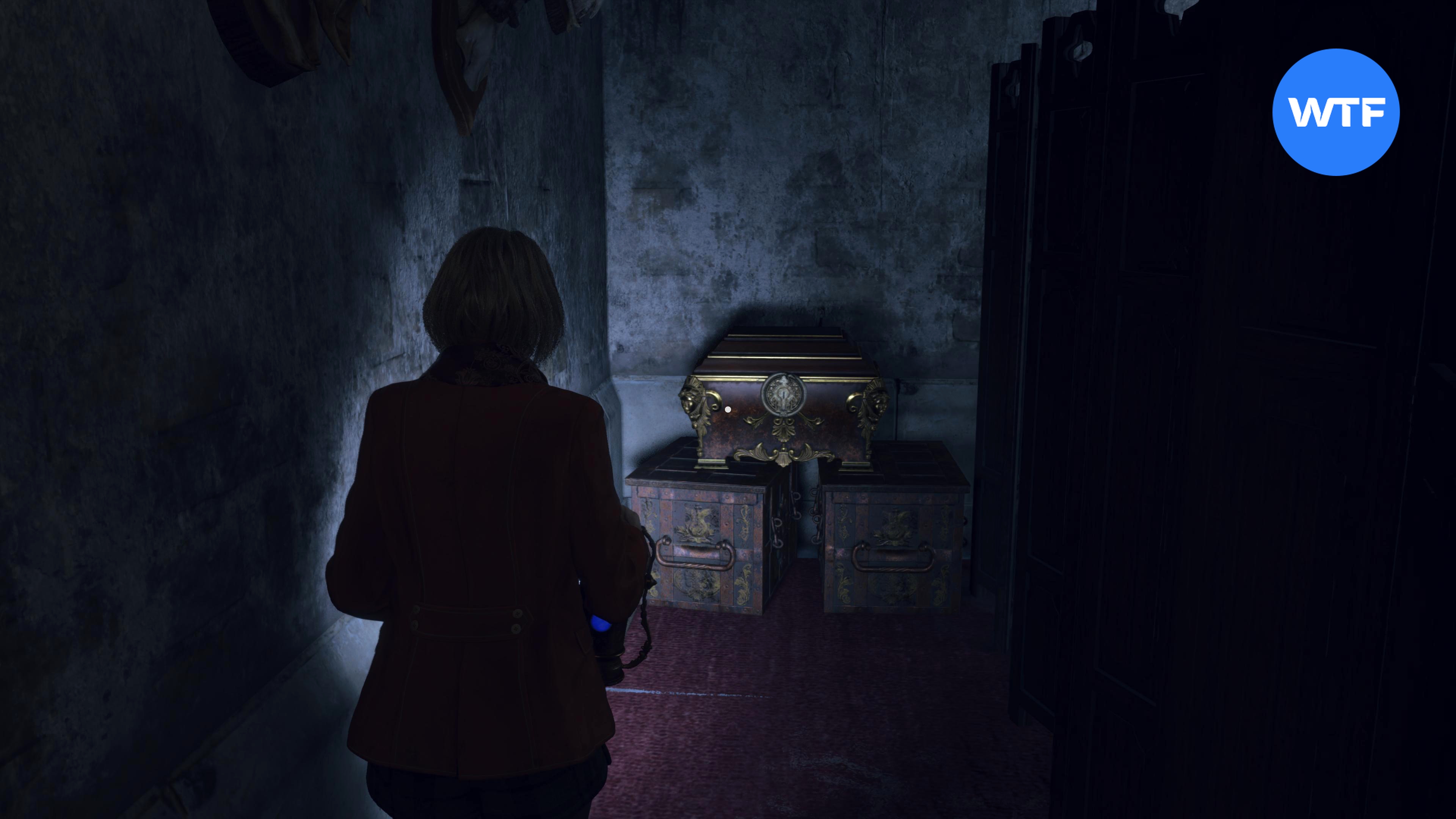 После того как вы подсадите Эшли к лазу в стене в Хранилище первого комплекса, сундук с этим дополнительным сокровищем будет стоять в следующей комнате. Внутри вы найдете золотой жетон и аксессуар Синий цвет для волос.