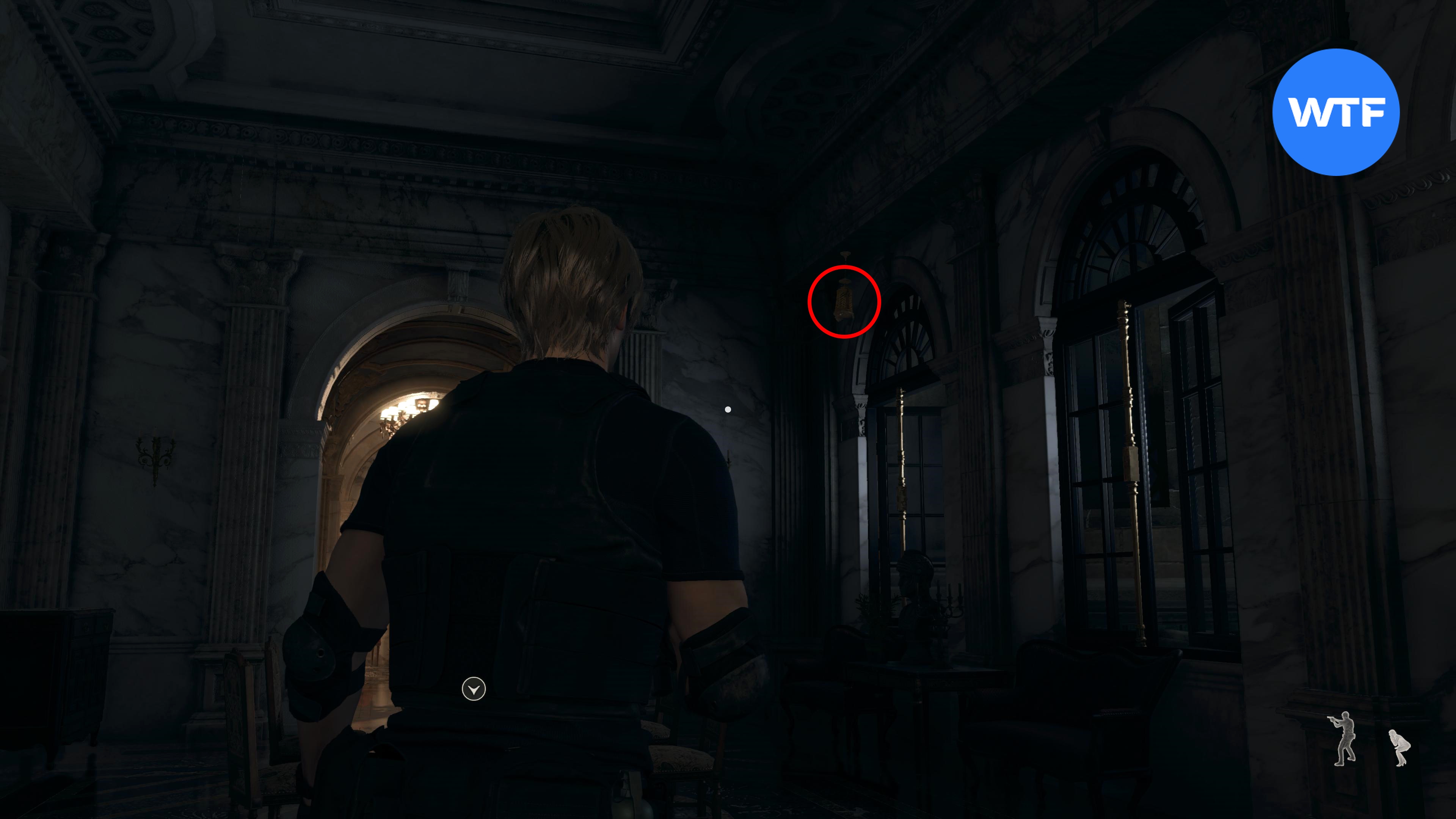 После боя с Рамоном Салазаром вы будете проходить мимо этого колокольчика с дополнительным сокровищем, висящего под потолком в коридоре на вашем пути к лодке.